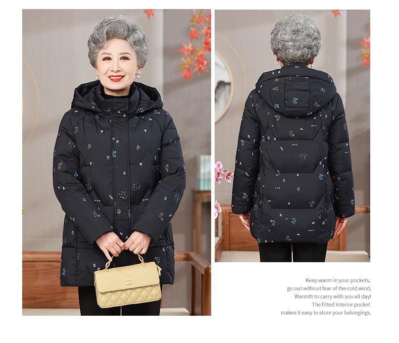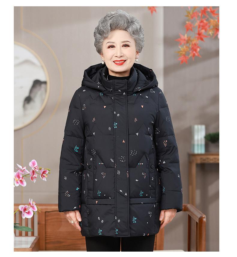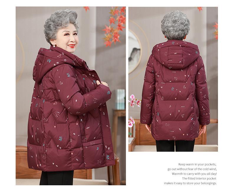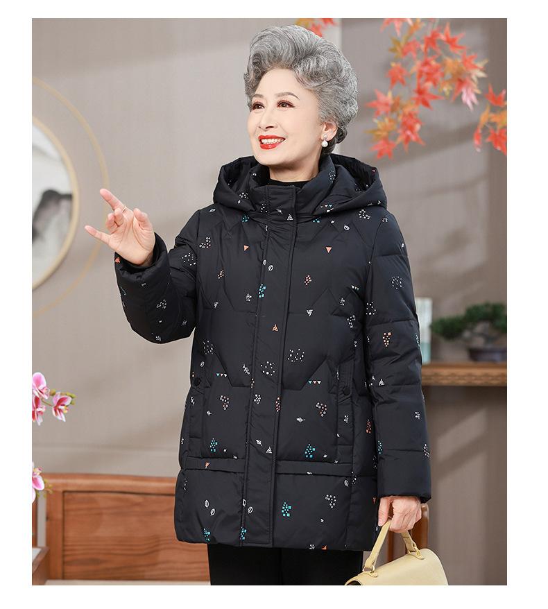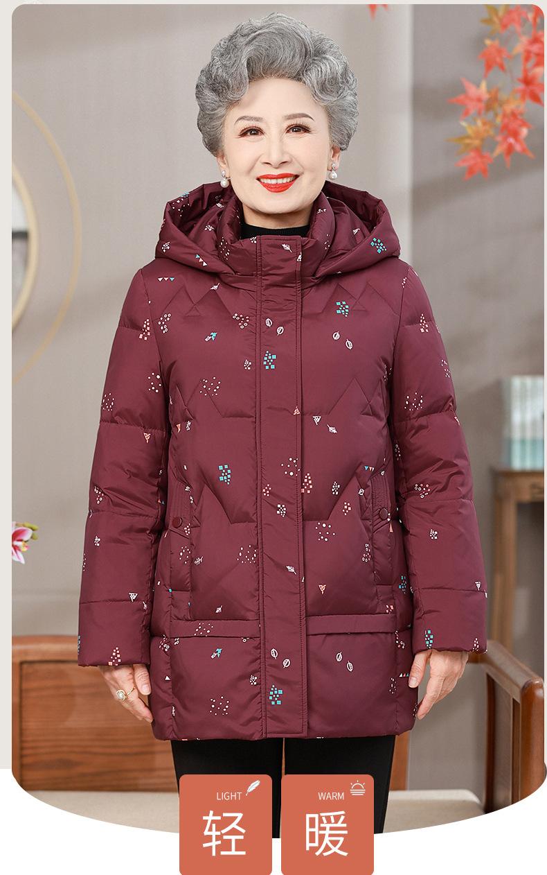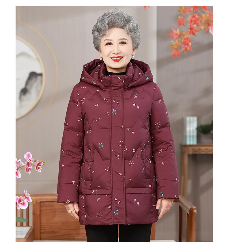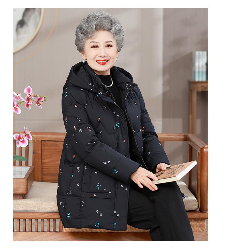 Chamarra de plumón floral de abuela estilo occidental para mujer 2023 Invierno nuevo plumón de pato blanco viejo señora mayor cálido palillos