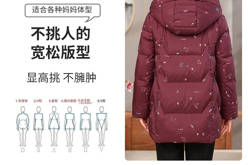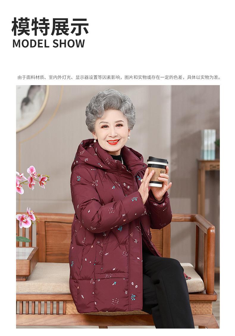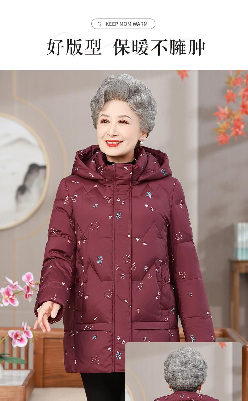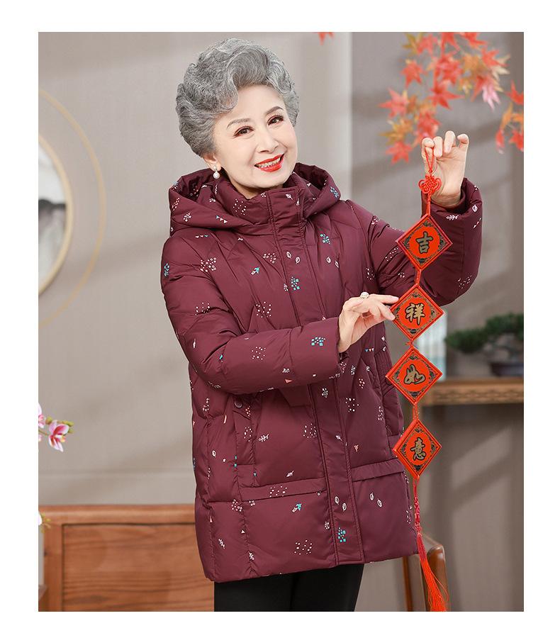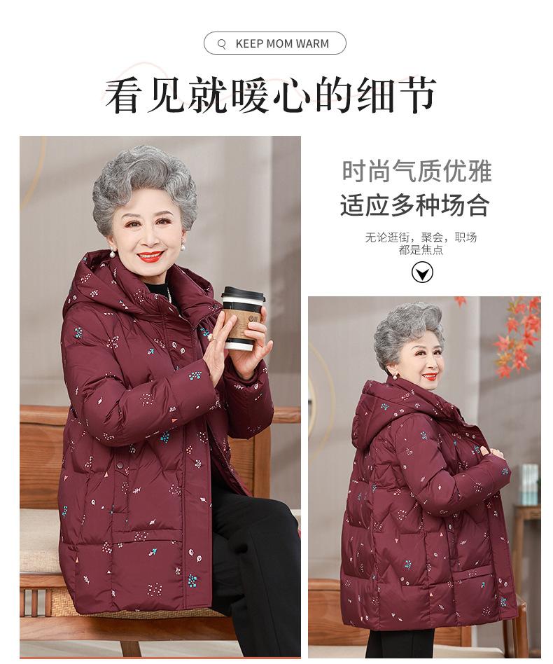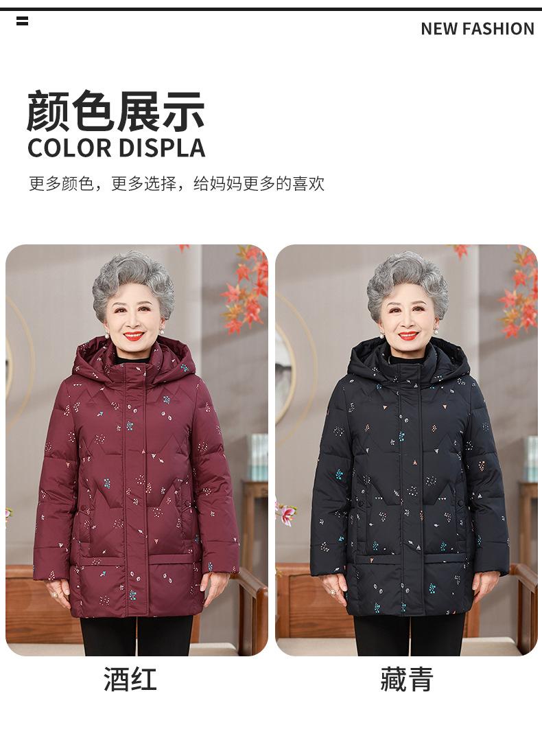 Chamarra de plumón floral de abuela estilo occidental para mujer 2023 Invierno nuevo plumón de pato blanco viejo señora mayor cálido palillos