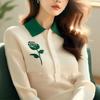 Top de Punto de Flores en Color Contraste para Mujer 2025 Otoño e Invierno Nuevo Estilo Suéter Único Lazy de Alta Gama Cuello Polo Camisa Básica