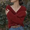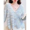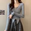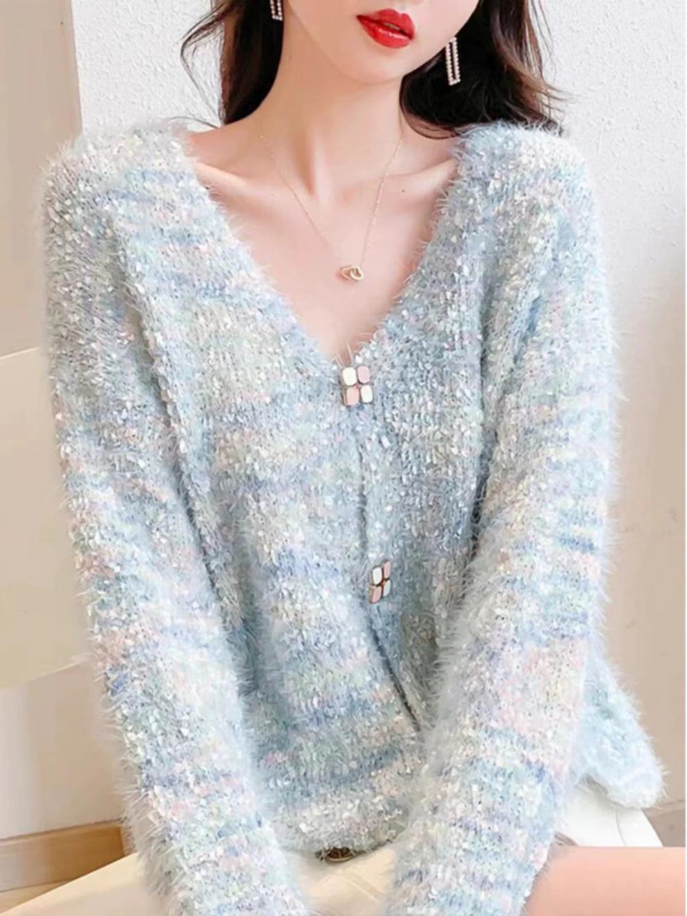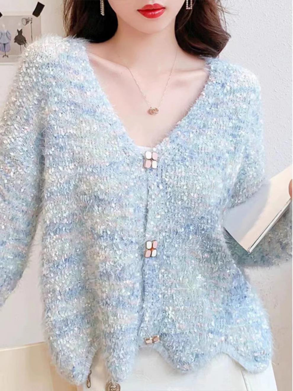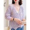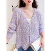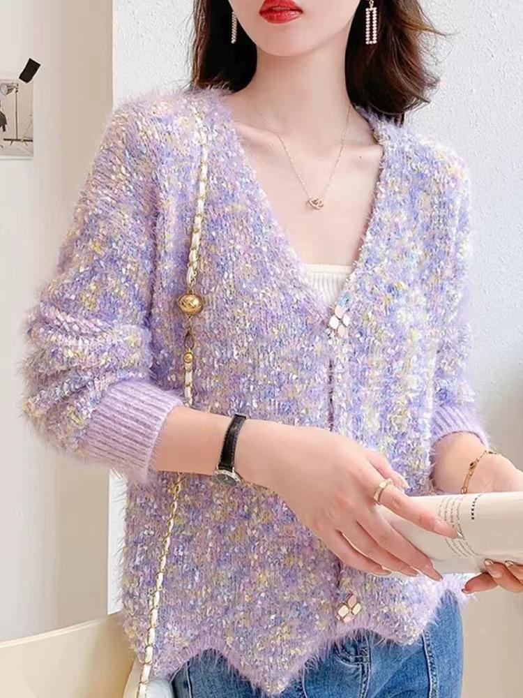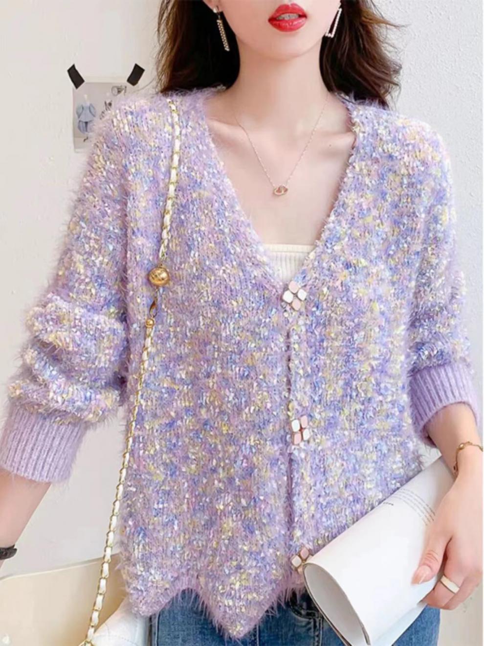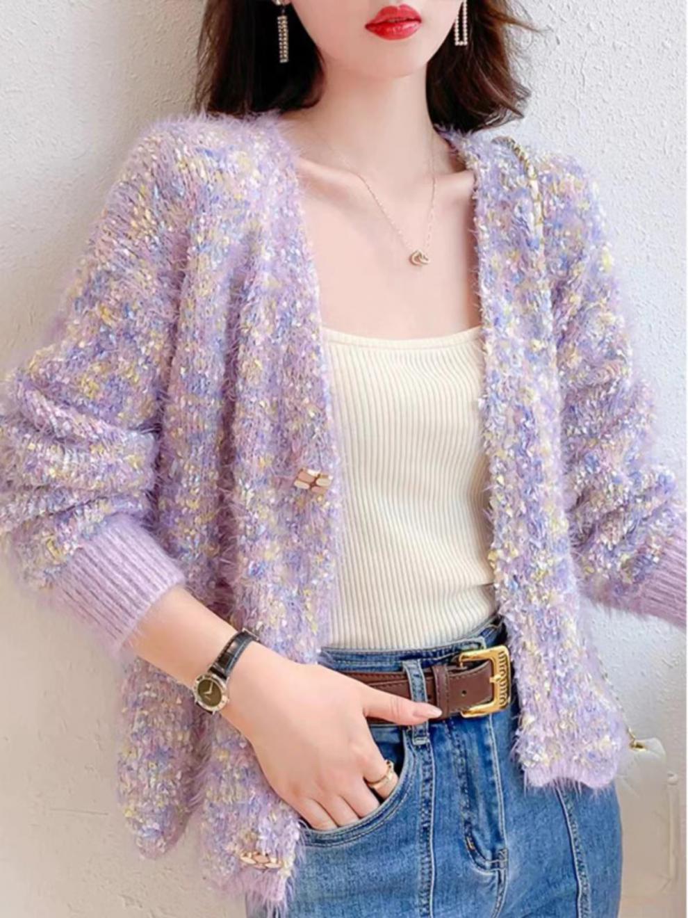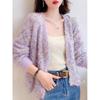 Cárdigan Suéter Morado Estilo Holgazán Suave Ceroso para Mujer 25 Otoño e Invierno Corto Cuello V Reductor de Edad Color Caramelo Chaqueta Tejida Top