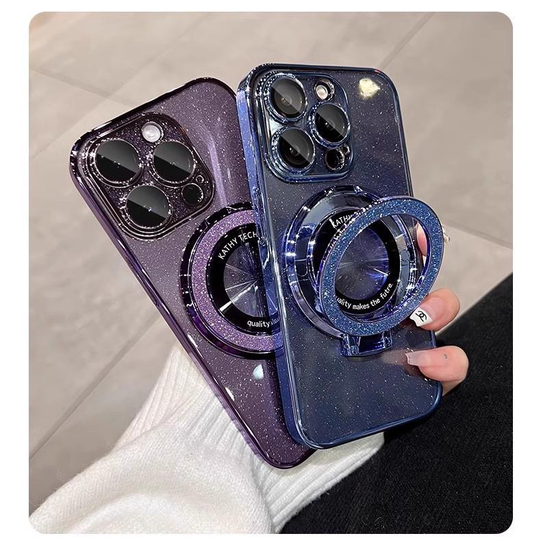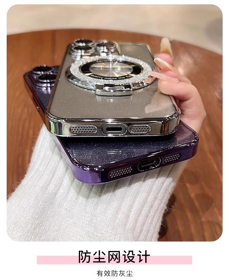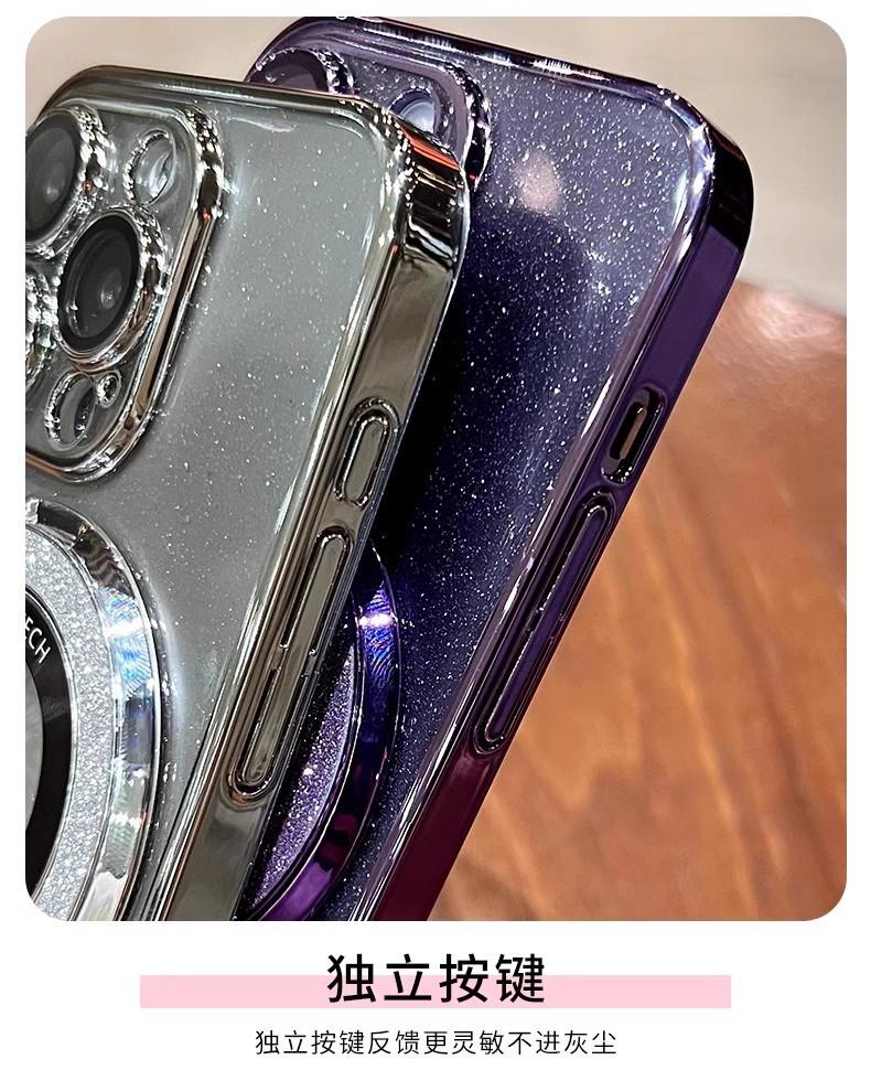 Adecuado para iPhone 15 Promax Transparente Electrochapado Estrella Brillantina Soporte Magnético Apple 14 Carcasa Rígida Funda Protectora 13