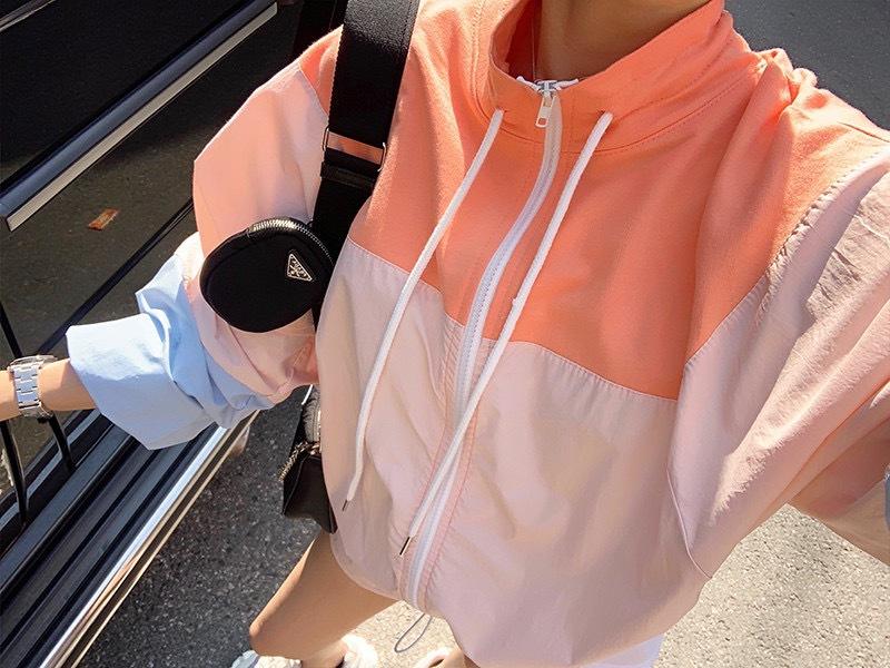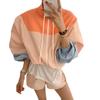 Chaqueta de béisbol de manga larga holgada y fina de estilo coreano para mujer, ropa de protección solar con cuello alto y combinación de colores para verano