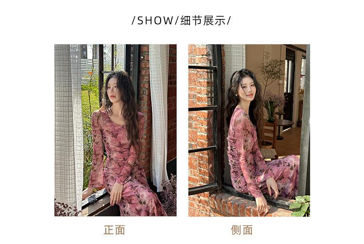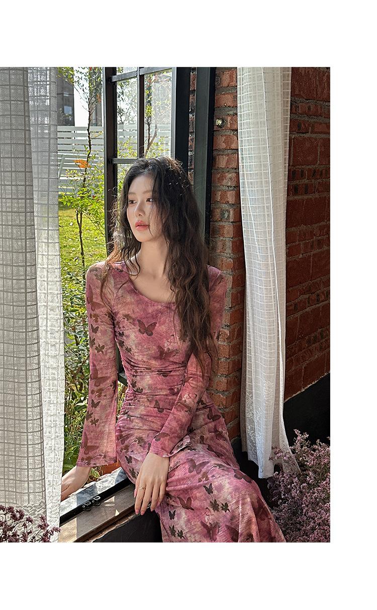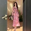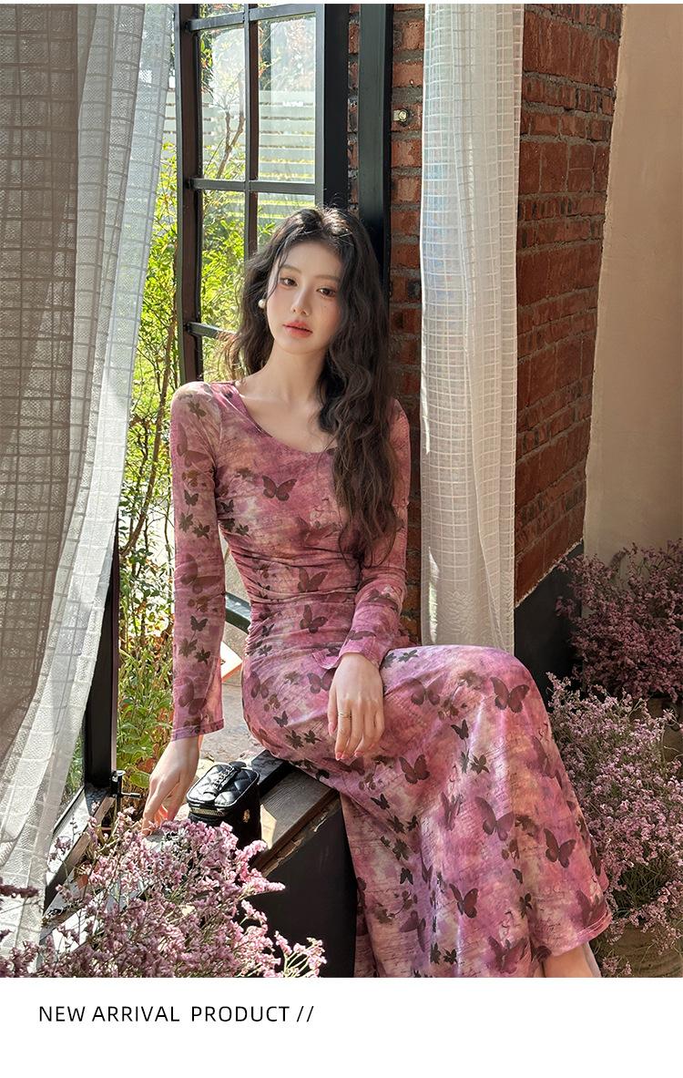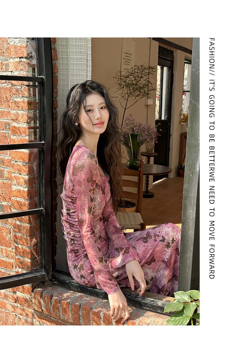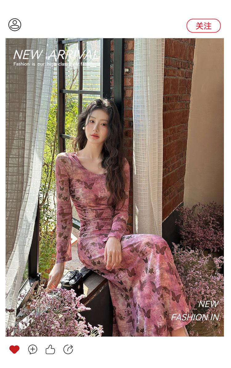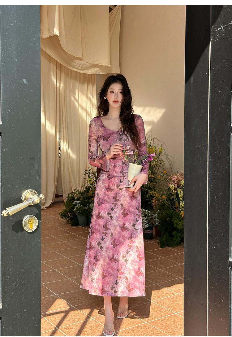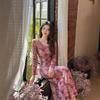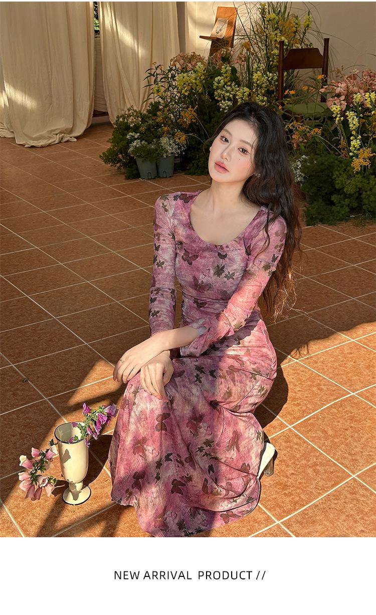 Vestido estilo francés retro elegante que reduce la edad y es elegante para niña, de malla y gasa con estampado de mariposas, vestido de cola de pez, vestido para vacaciones en la playa