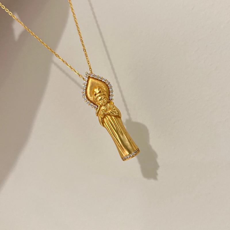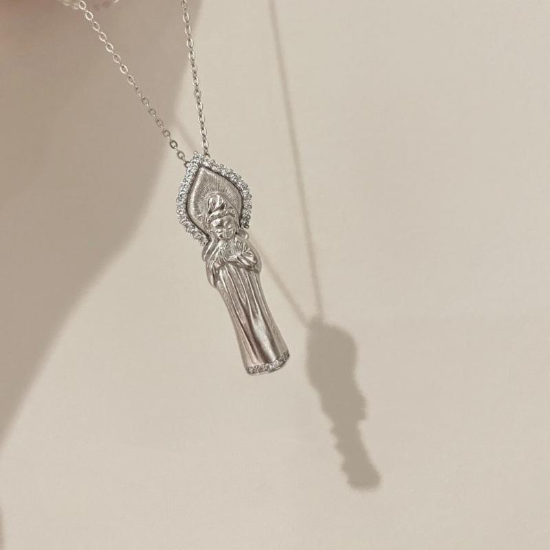 Nuevo collar étnico chino Guanyin retro con fideos de arena para mujer, diseño de nicho moderno, cadena de clavícula blanca simple de lujo ligero