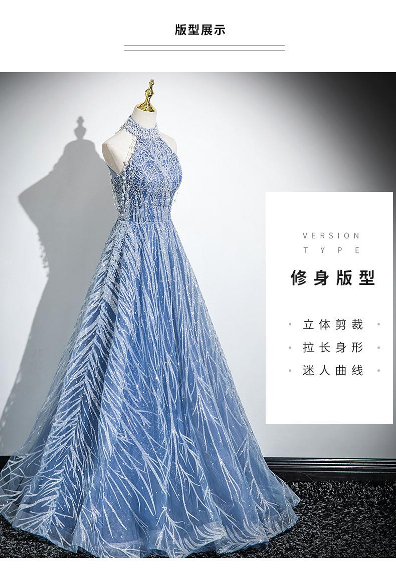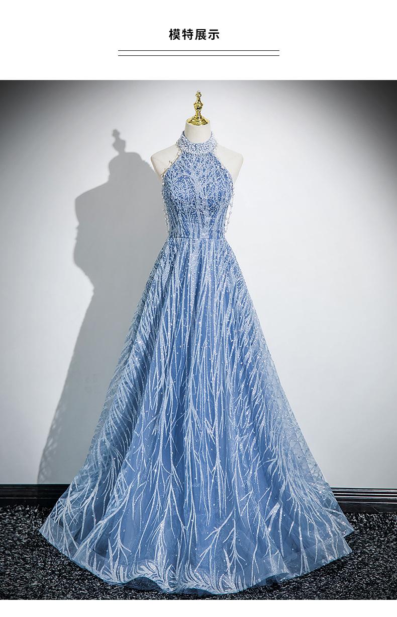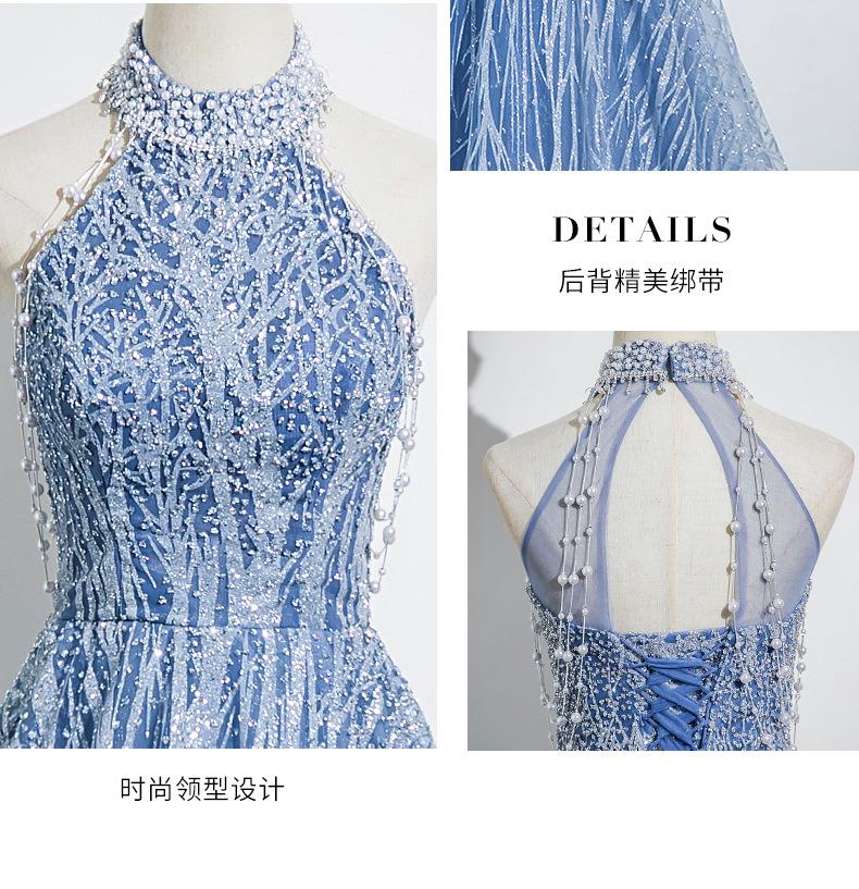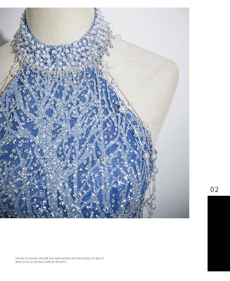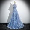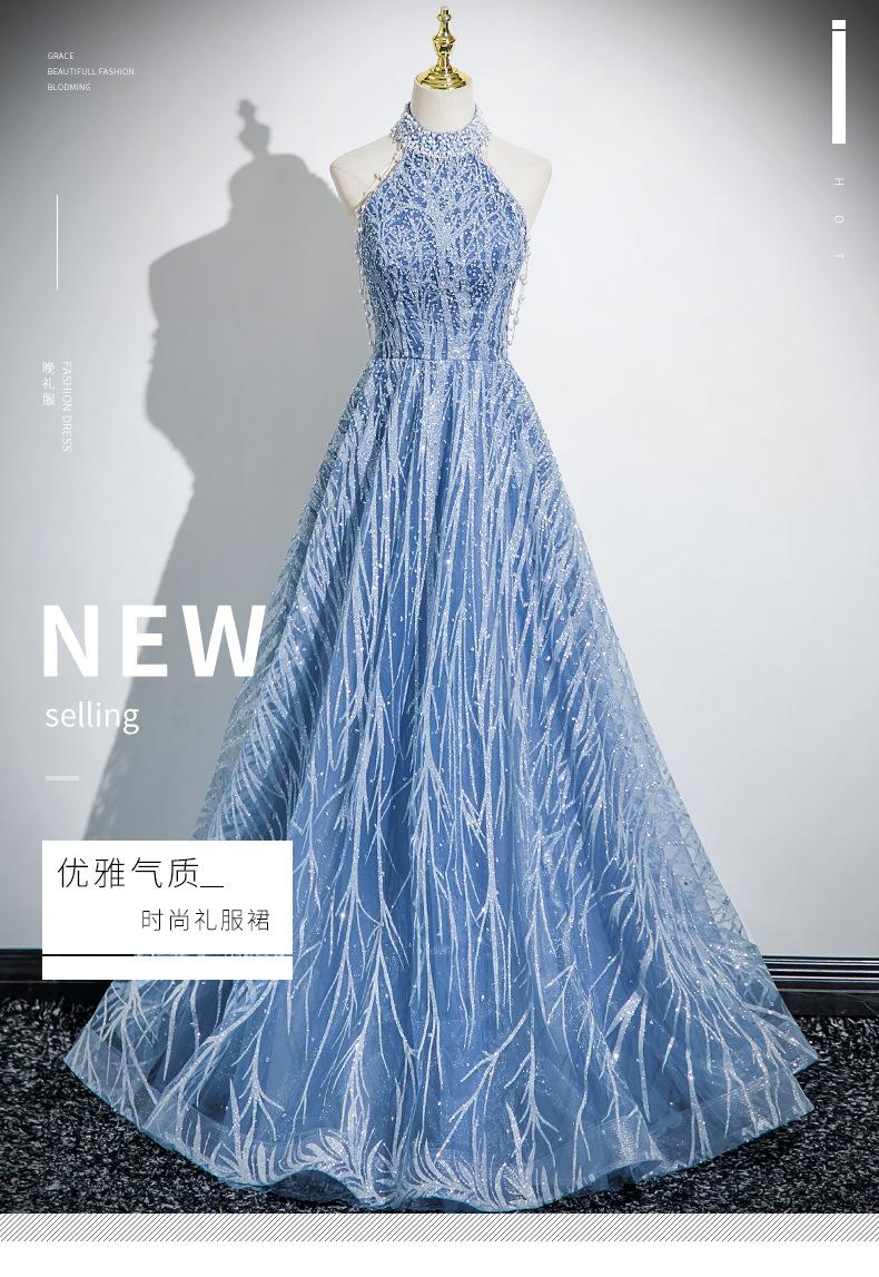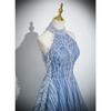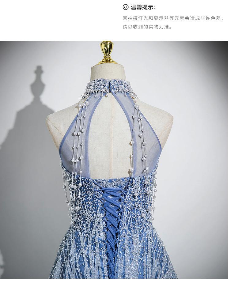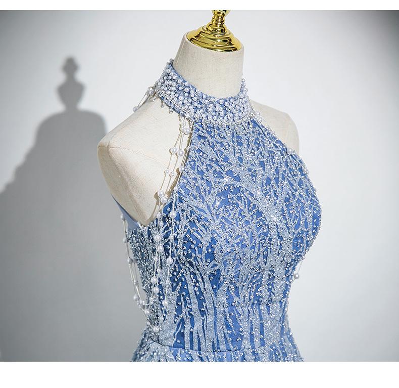 Vestido de novia de cuello azul, vestido de noche para mujer, de alta gama, ligero, de lujo, nicho, para adultos, ceremonia, reunión anual, prueba de arte vocal, vestido de alta gama.
