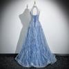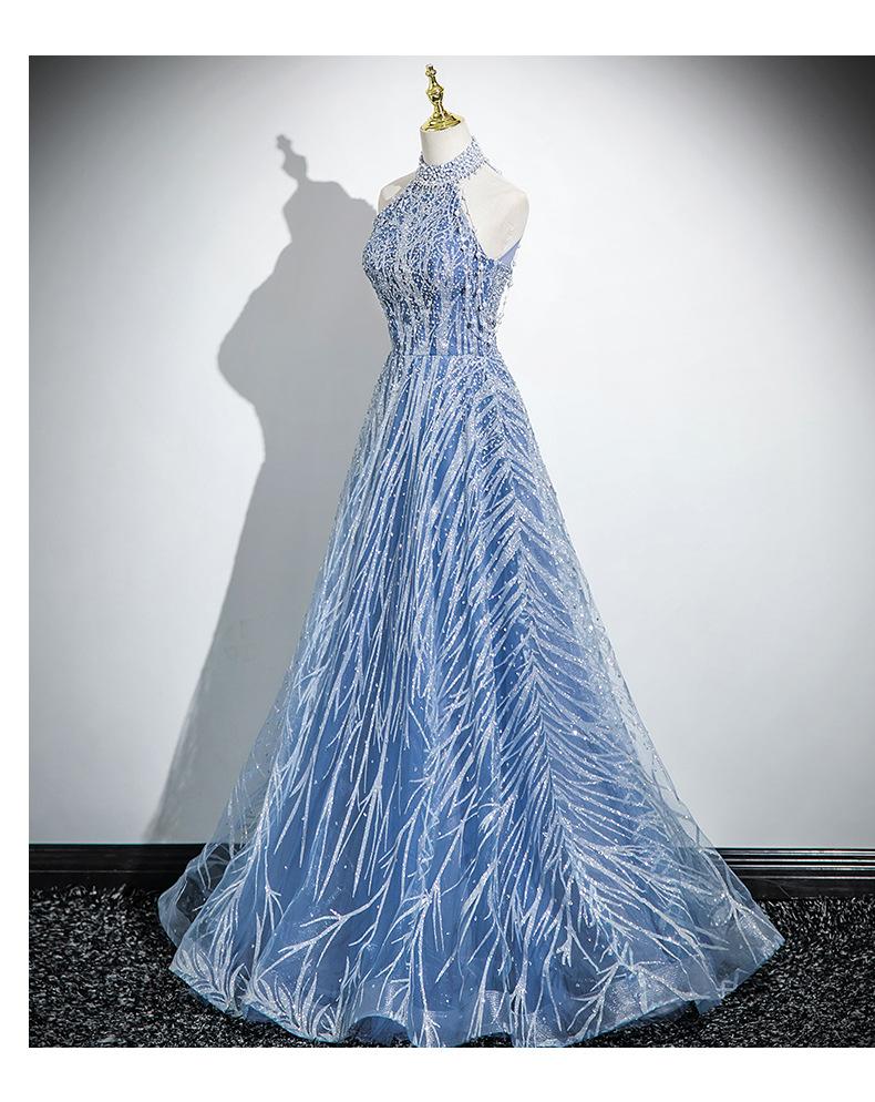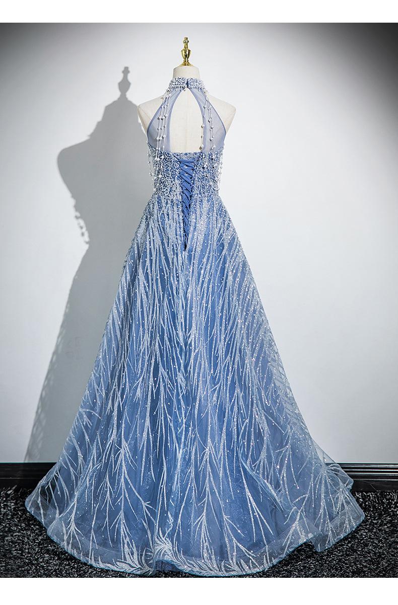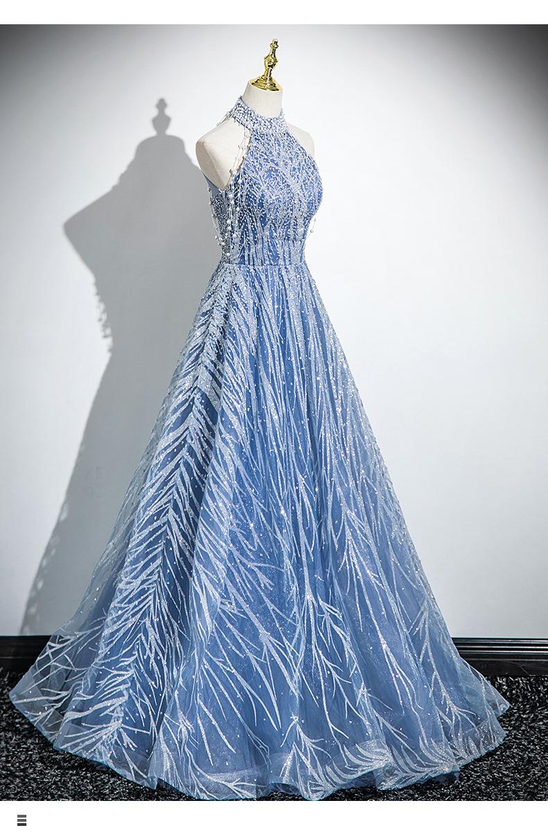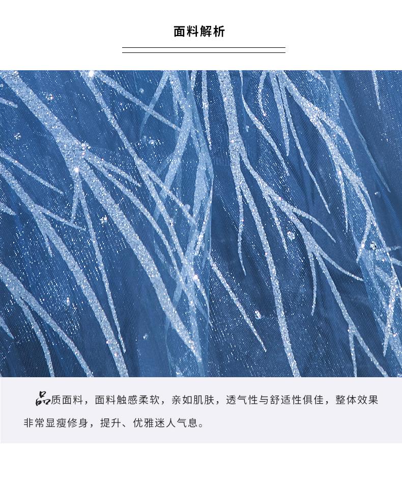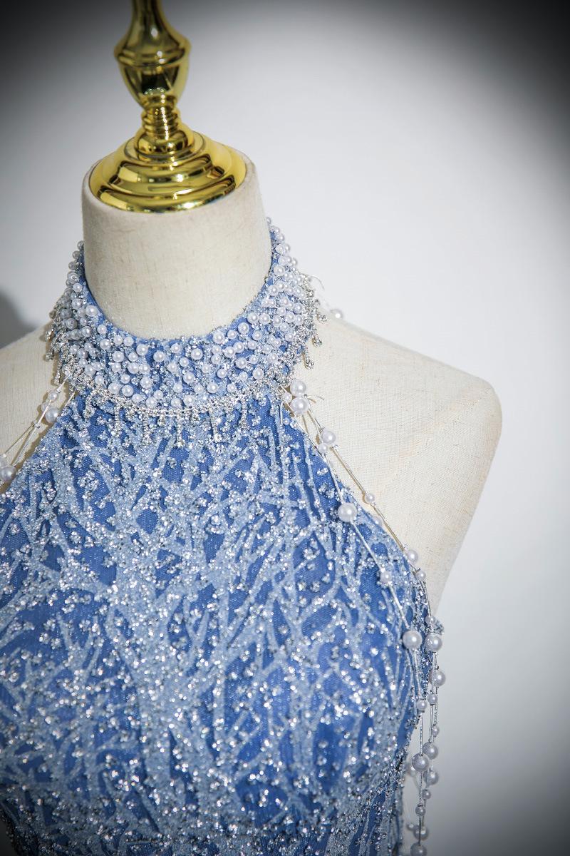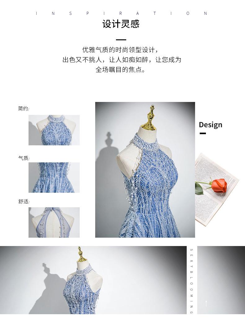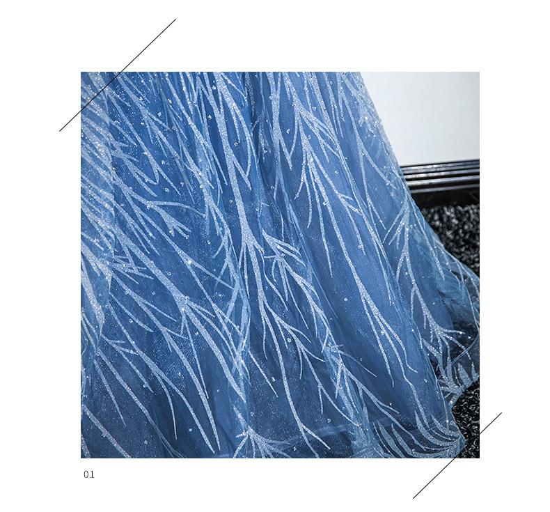 Vestido de novia de cuello azul, vestido de noche para mujer, de alta gama, ligero, de lujo, nicho, para adultos, ceremonia, reunión anual, prueba de arte vocal, vestido de alta gama.