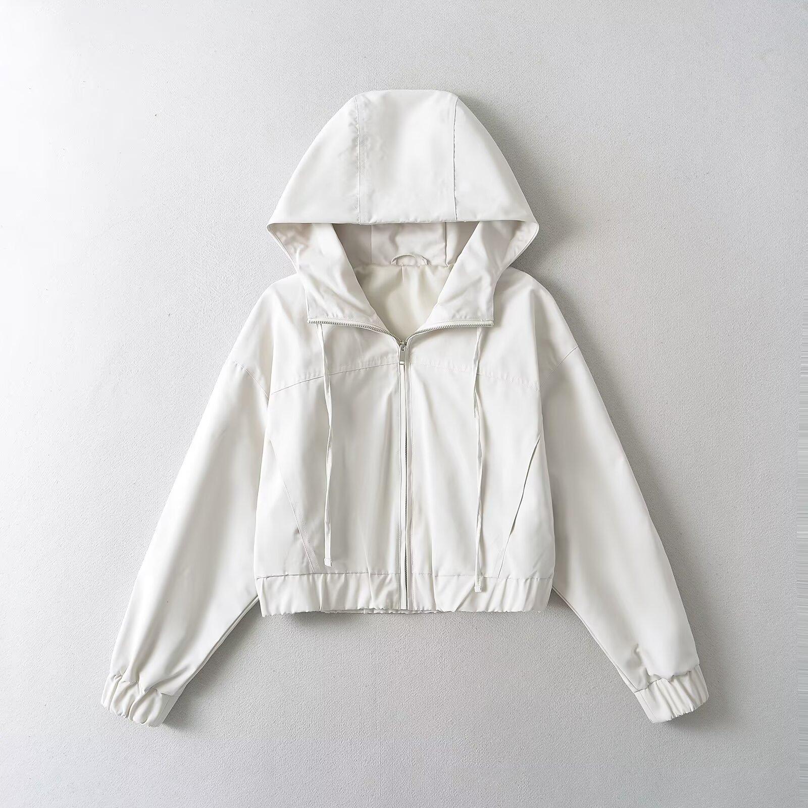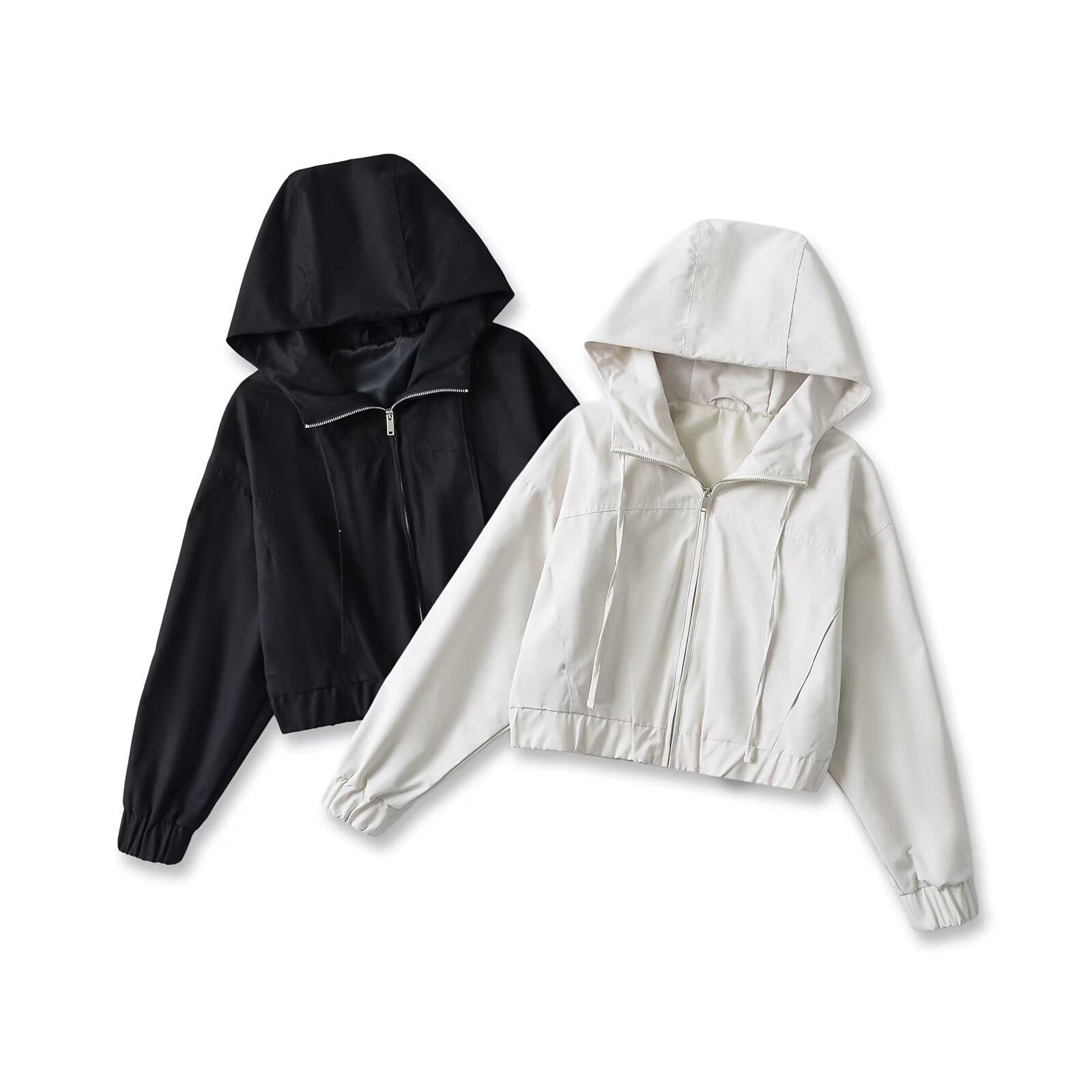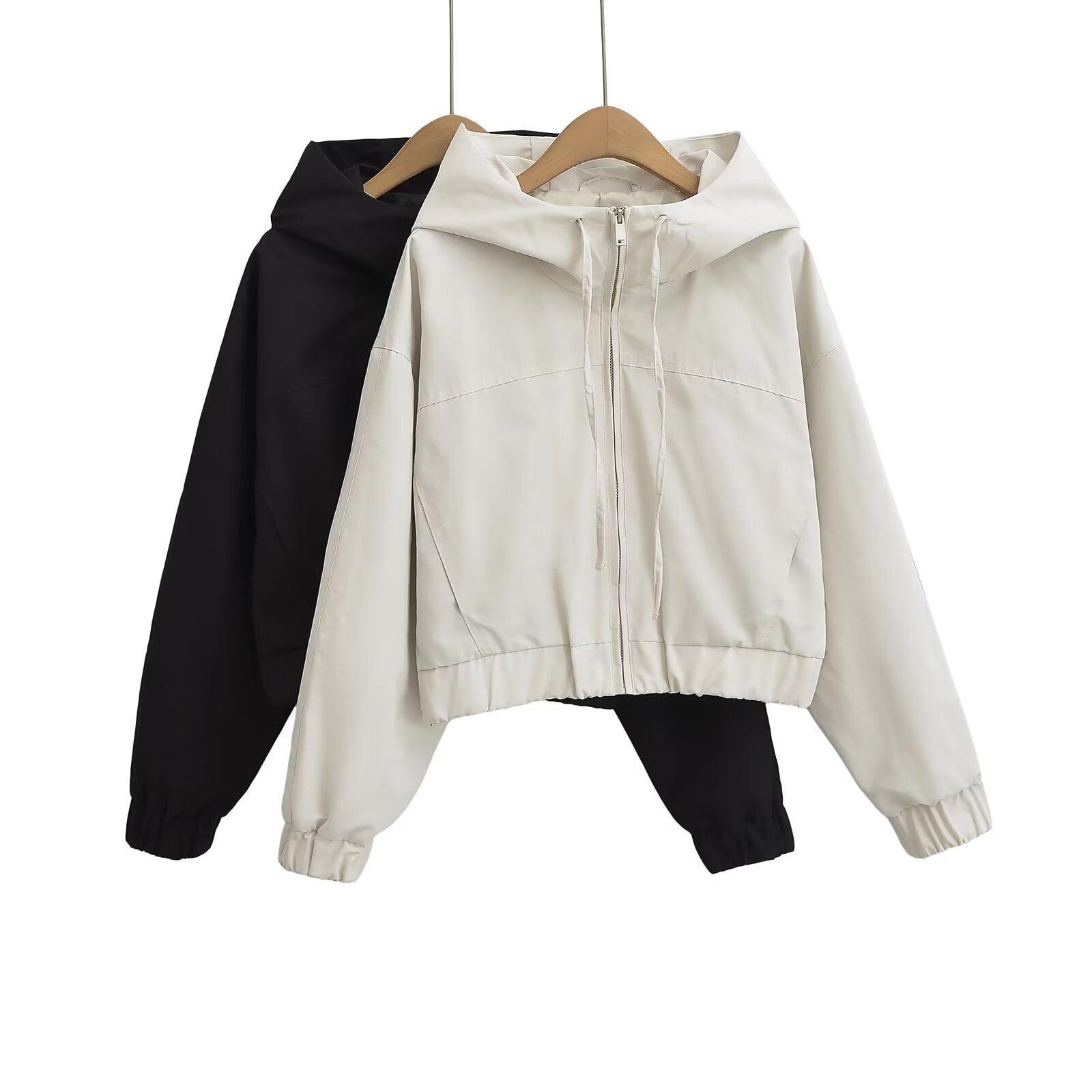 Otoño Mujeres Nuevo Forrado con Capucha Manga Larga Cárdigan con Cremallera Corte Tridimensional Elafite Chaqueta Casual Abrigo