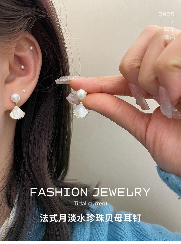 Aretes Luna Francesa Nácar de Agua Dulce 2025 Nuevo Estilo Lujo Ligero Moda de Alta Gama Super Hada Elegantes Aretes para Mujer