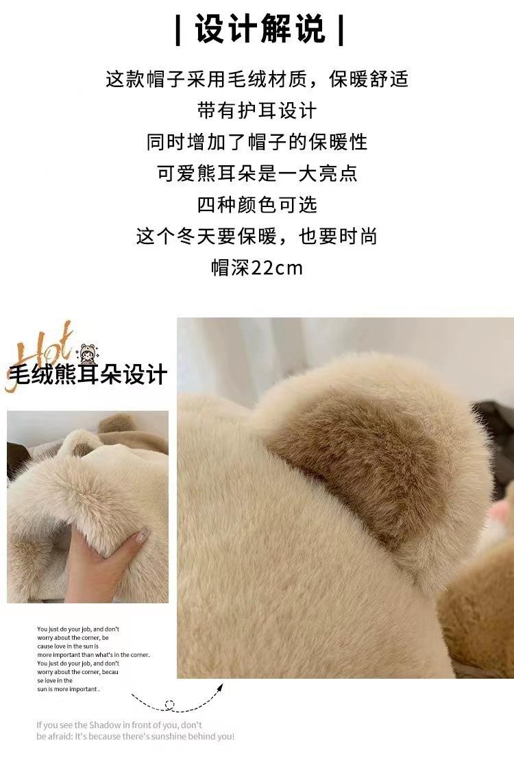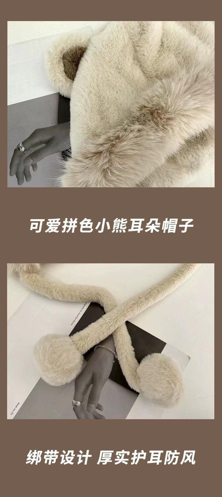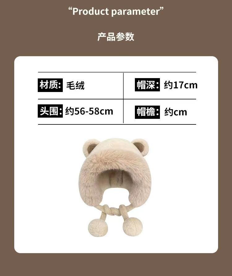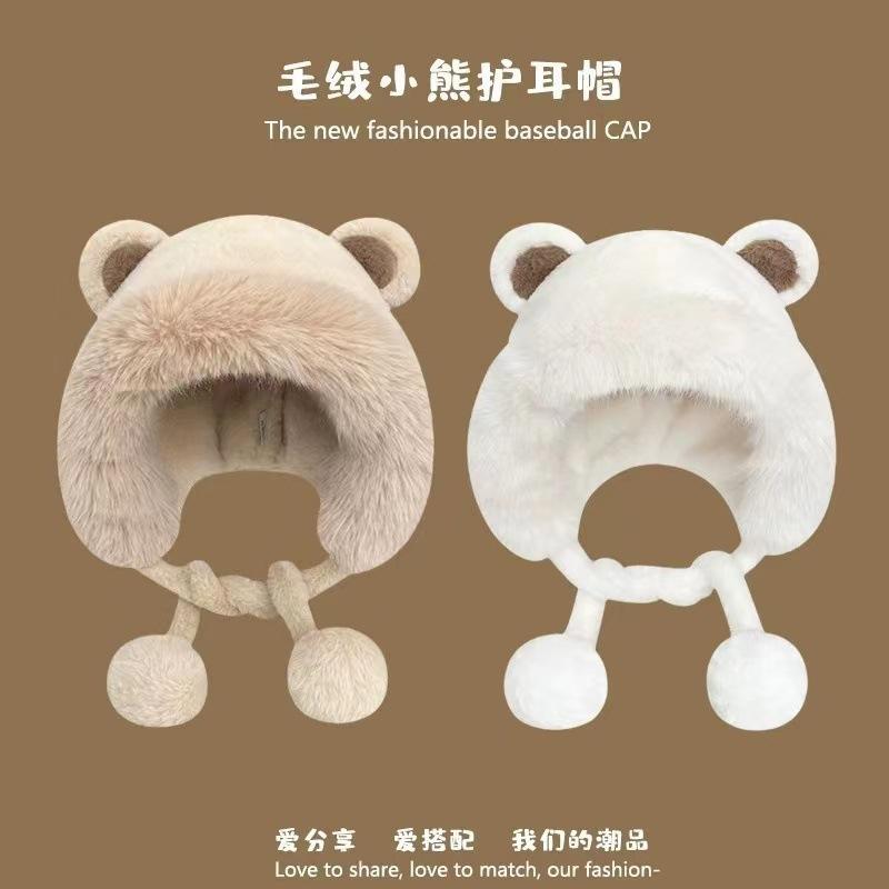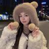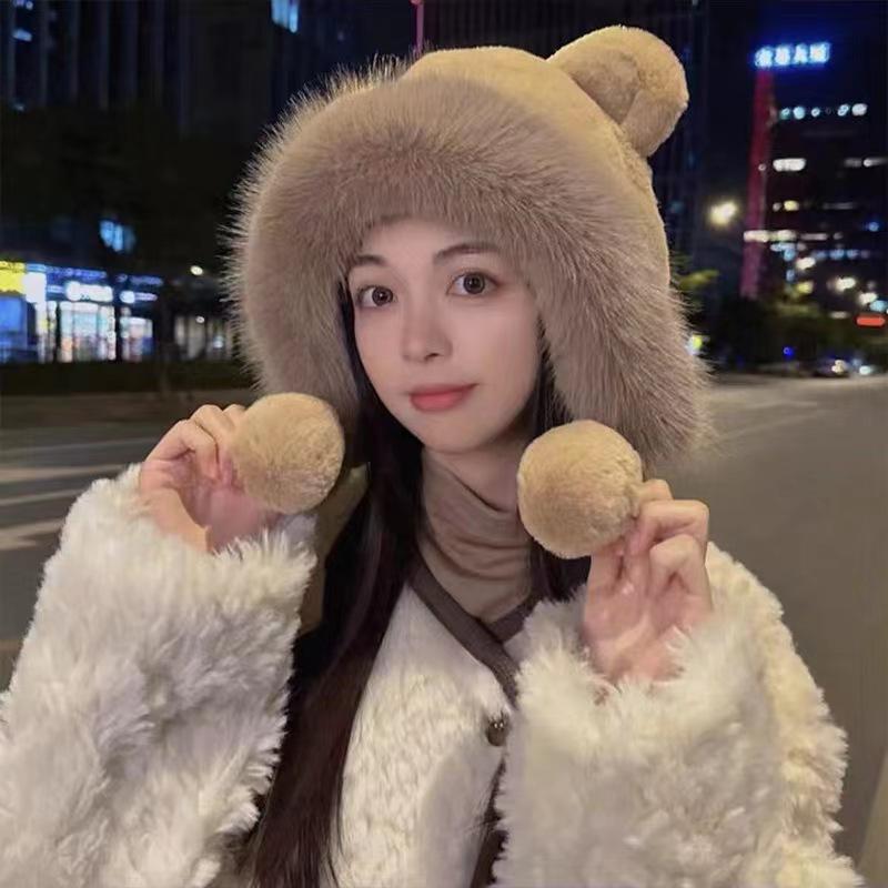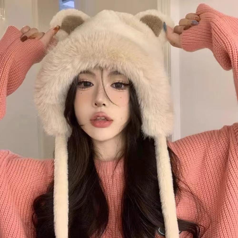 Lindo sombrero Lei Feng estilo coreano para mujer, sombrero de felpa con orejas de oso para invierno, sombrero grueso para ciclismo con protección para los oídos contra el frío, parte superior redonda