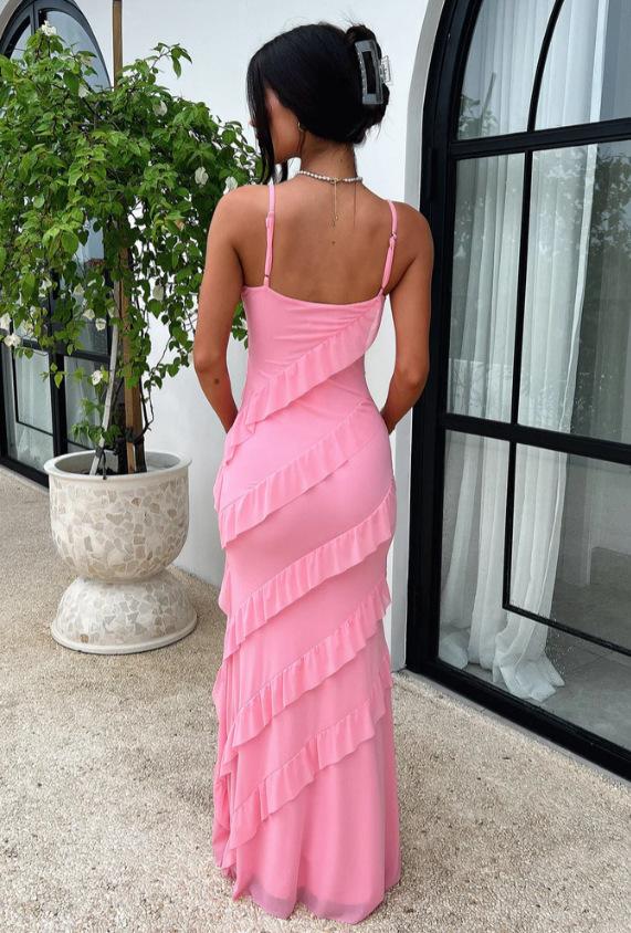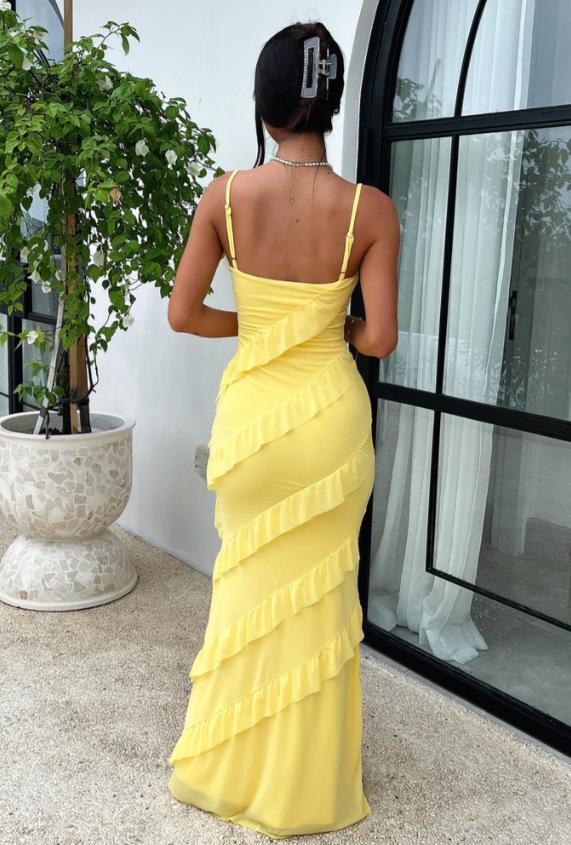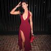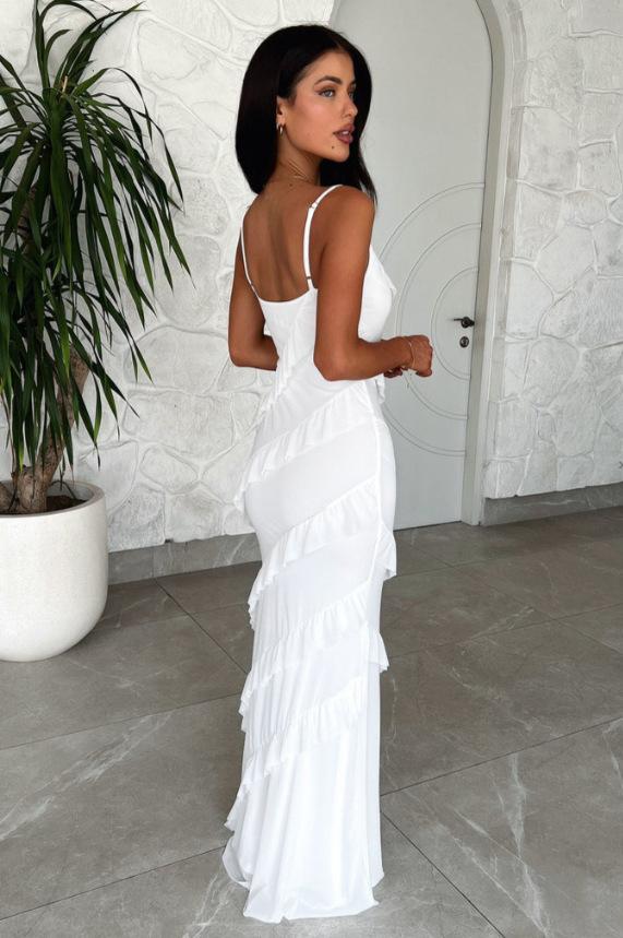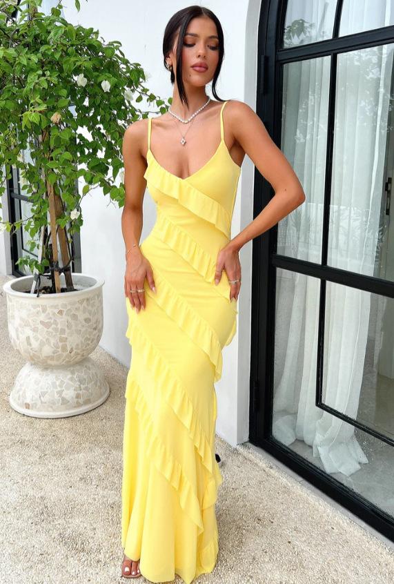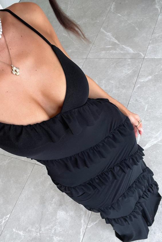 Vestido de verano de estilo europeo y americano, sexy, con volantes y espalda descubierta, color liso, para mujer, primavera y verano, 2025