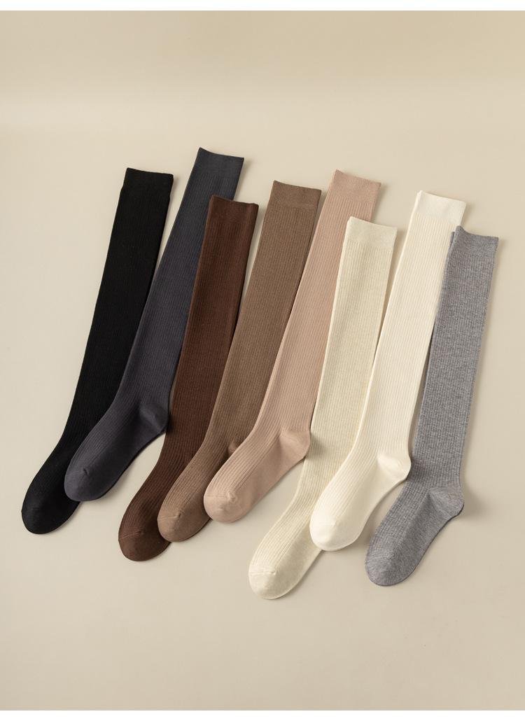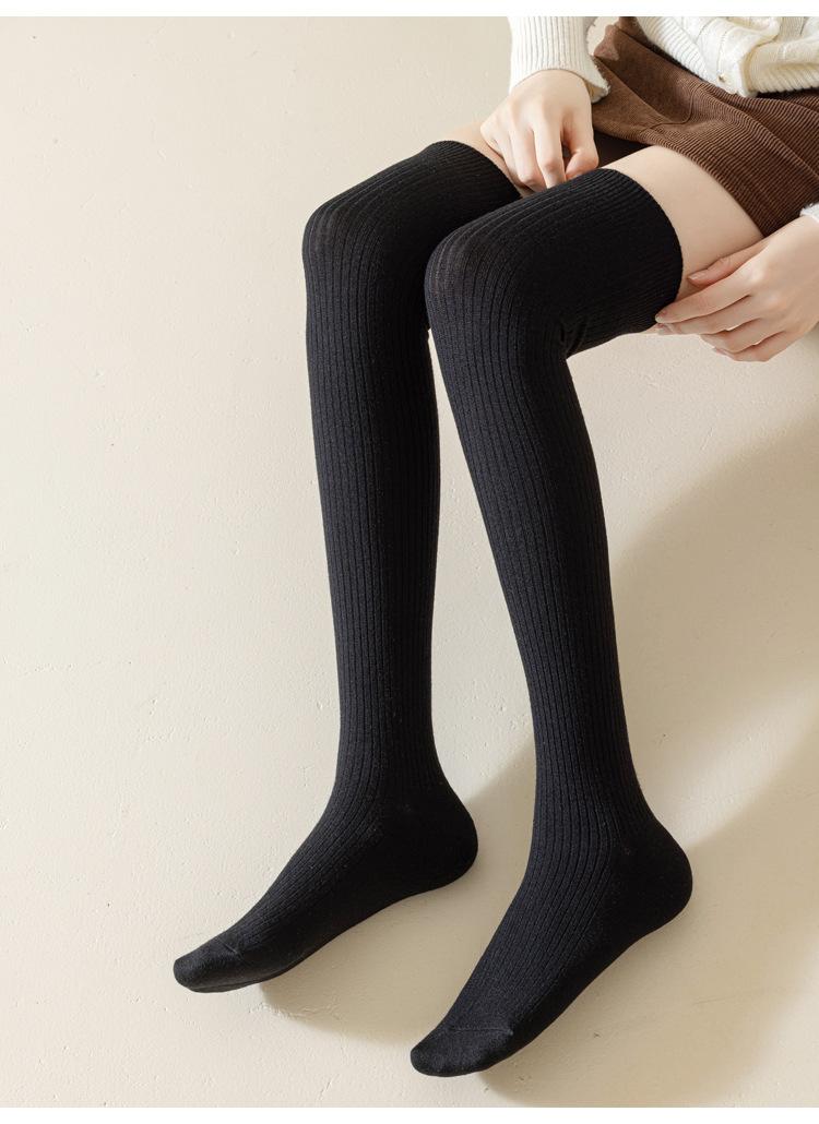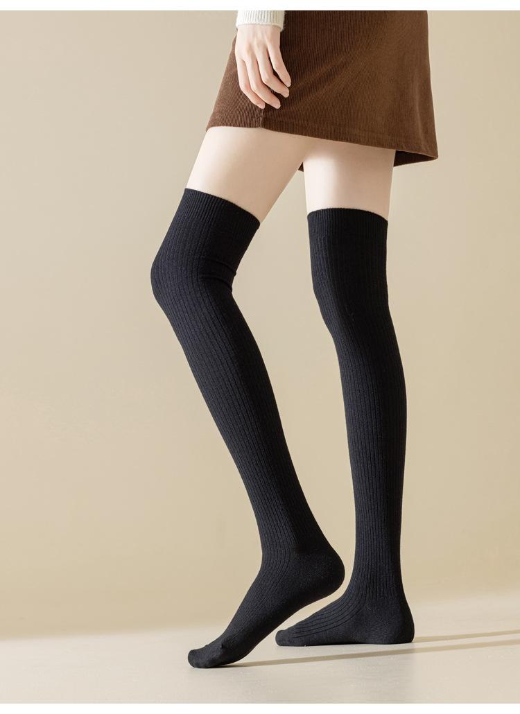 Calcetines de lana hasta el muslo JK para mujer, cálidos, de doble aguja, por encima de la rodilla, de color liso, estilo academia, sencillos, largos y combinables.