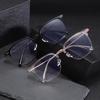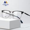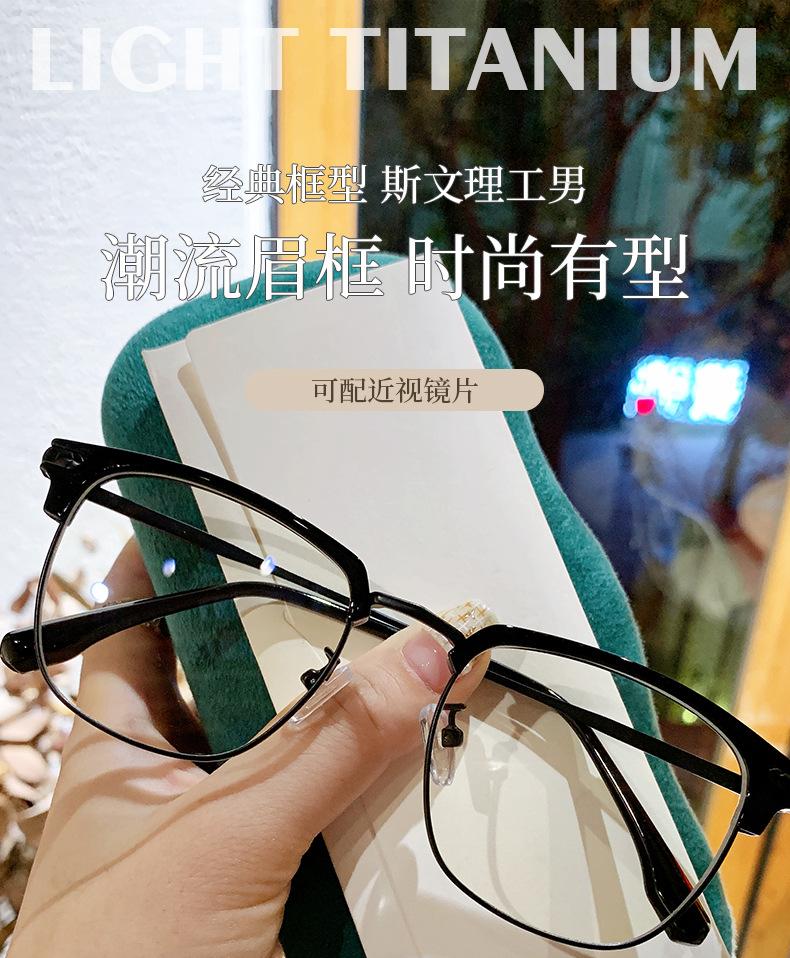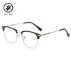 Anteojos miopes de media montura dorada para cejas se pueden equipar con grado retro redondos adelgazantes para rostro liso con luz anti-azul para hombre