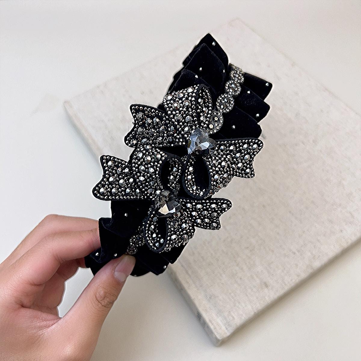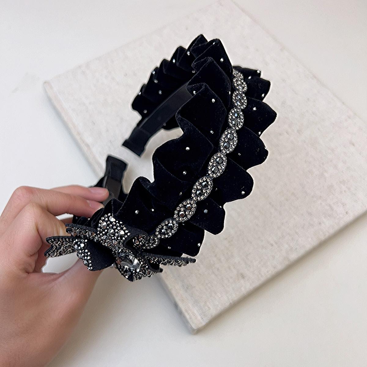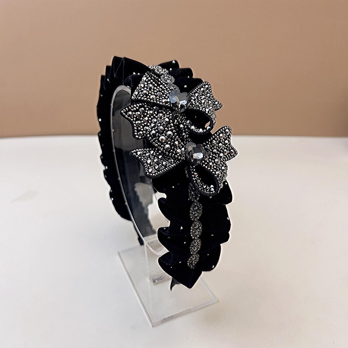 Diadema de Lazo de Terciopelo Plisado con Incrustaciones de Diamantes Diadema Elegante Francesa Elegante Moda Adorno para el Cabello Superior Craneal Alto