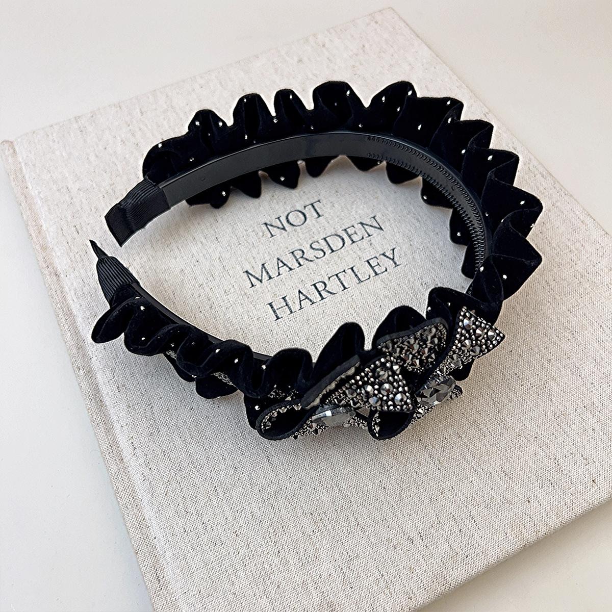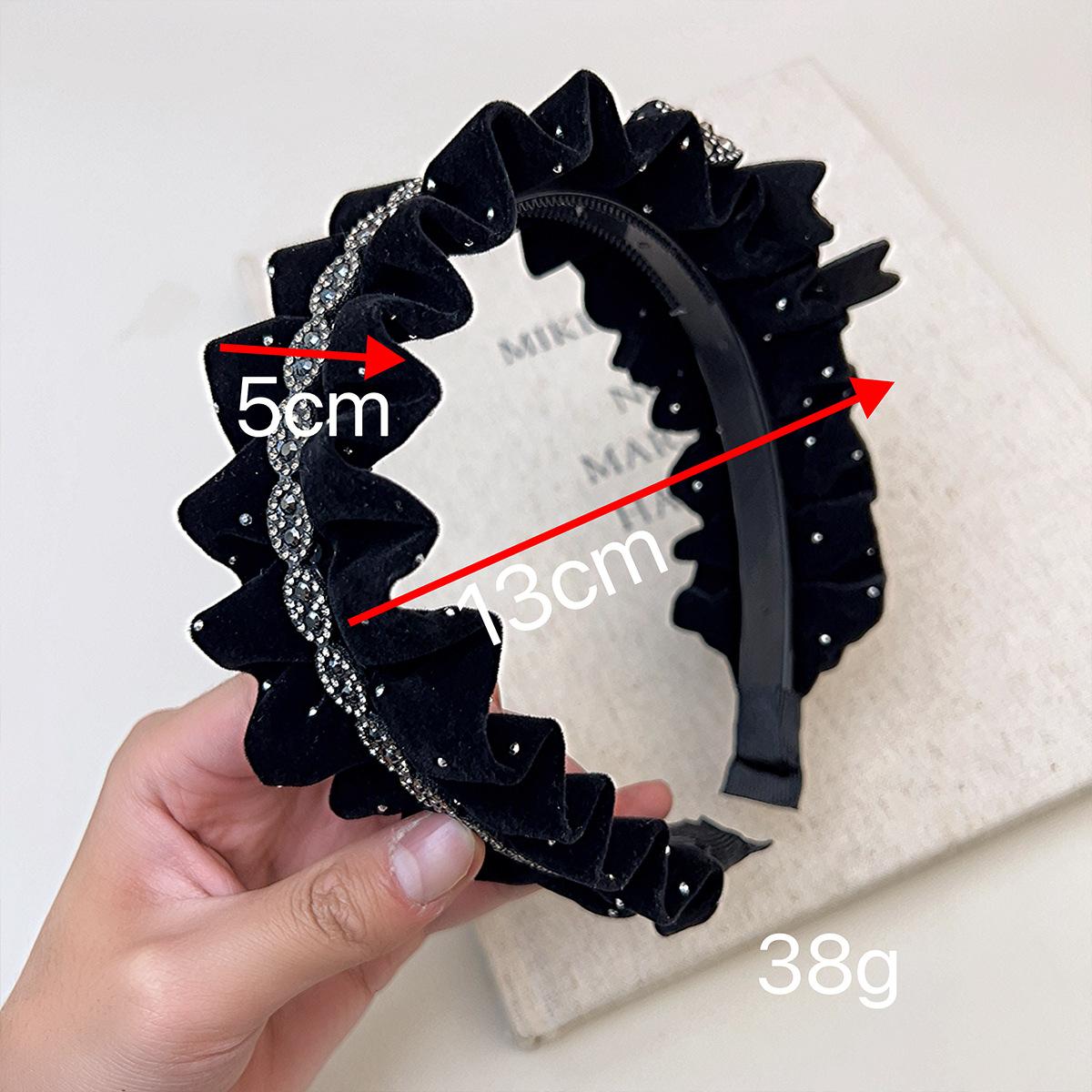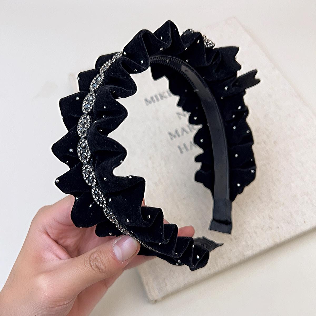 Diadema de Lazo de Terciopelo Plisado con Incrustaciones de Diamantes Diadema Elegante Francesa Elegante Moda Adorno para el Cabello Superior Craneal Alto