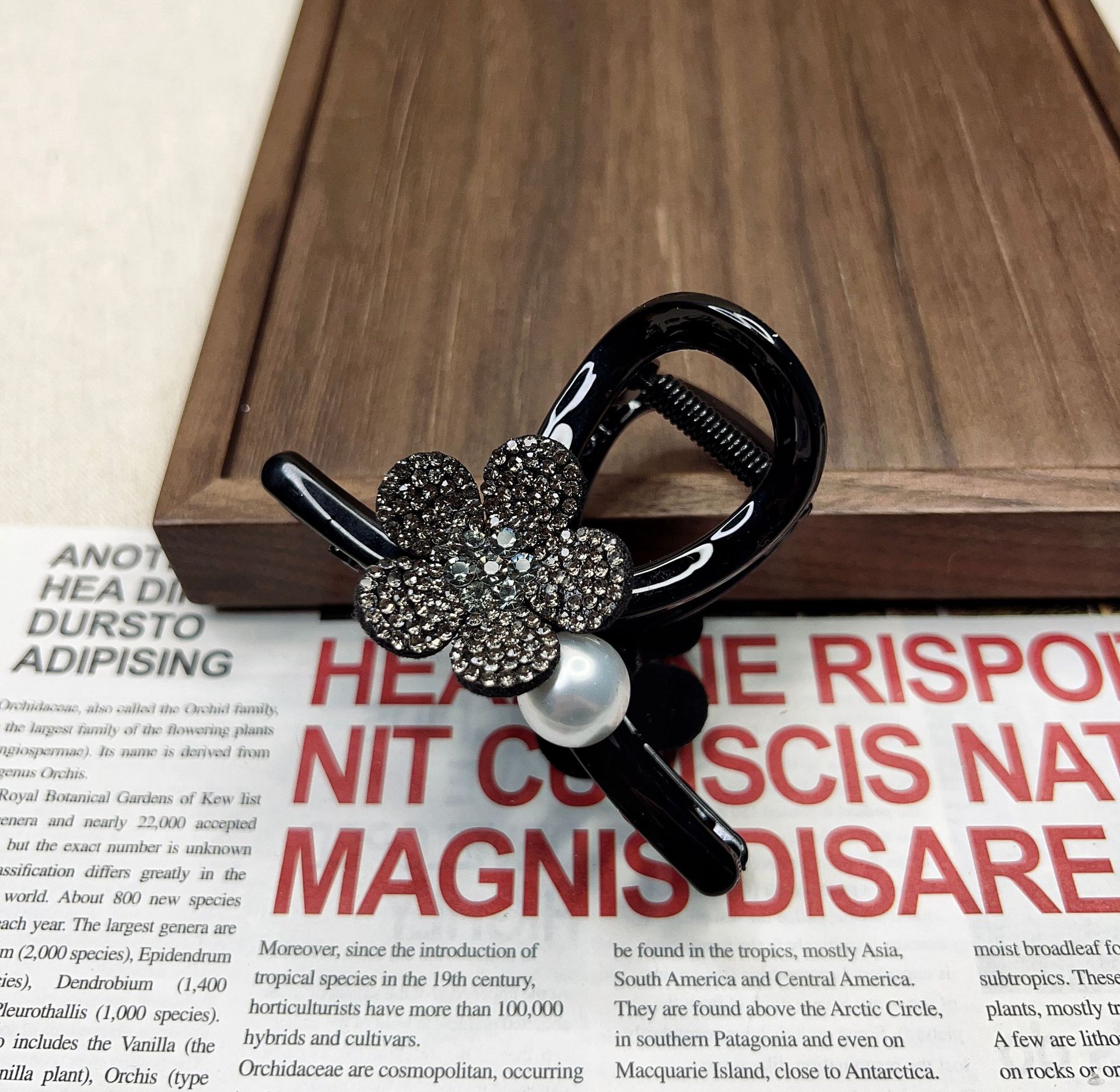 2024 Nueva primavera y verano pinza mediana de acrílico flor cabeza trasera diamantes de imitación tiburón clip horquilla accesorios para el cabello tocados mujeres