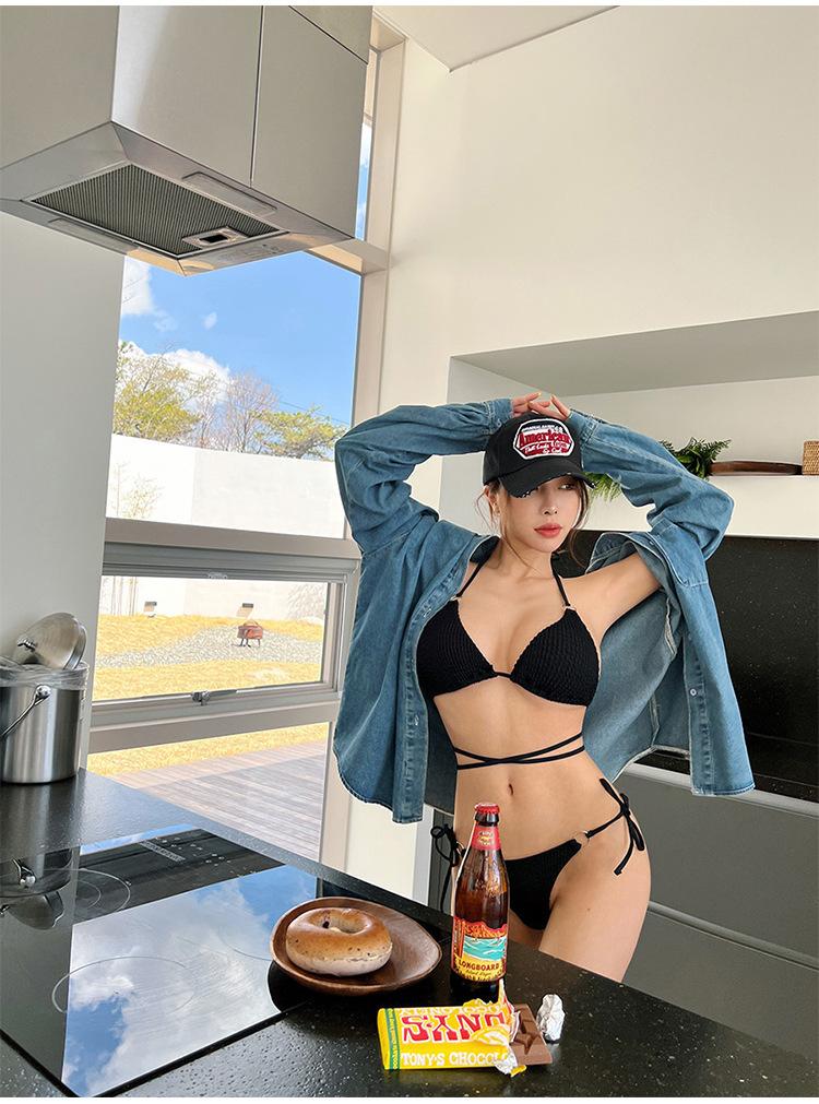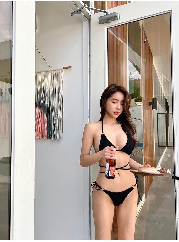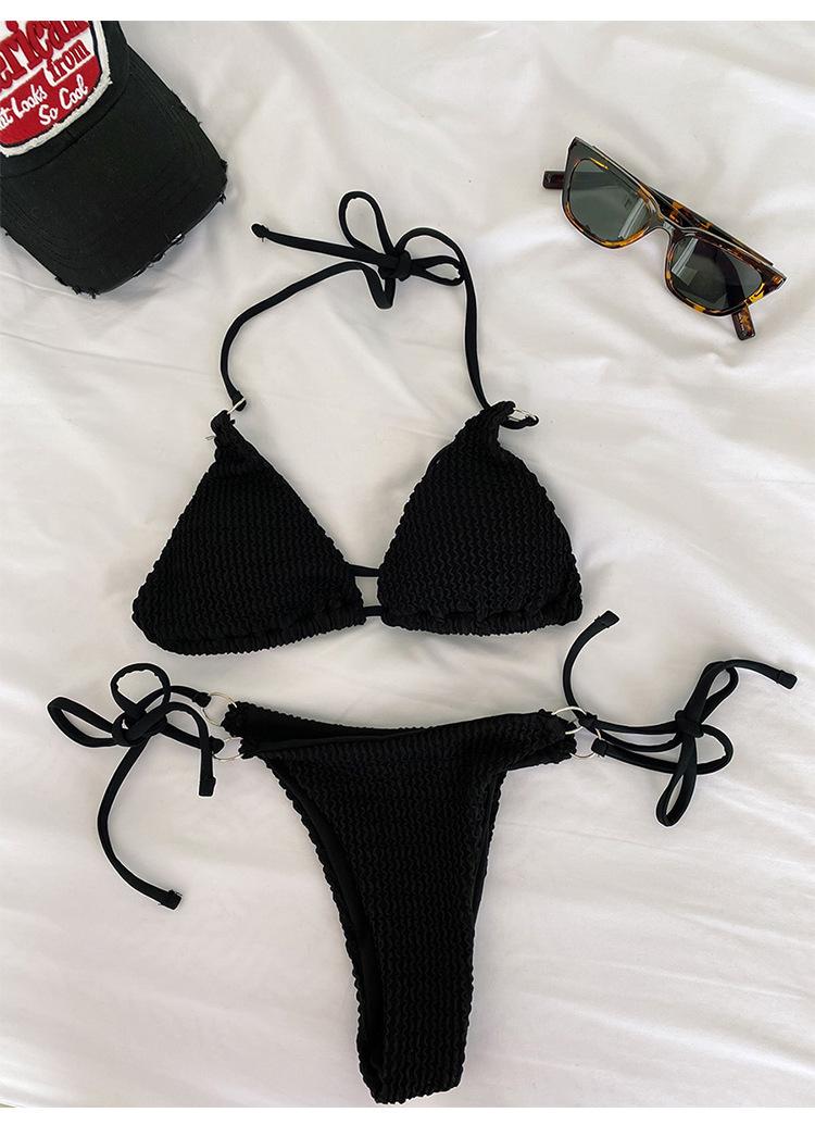2023 Nuevo Bikini de Color Sólido de Moda de Amazon para Mujer Traje de Baño Dividido con Tirantes Bikini para Mujer Bikini Triángulo