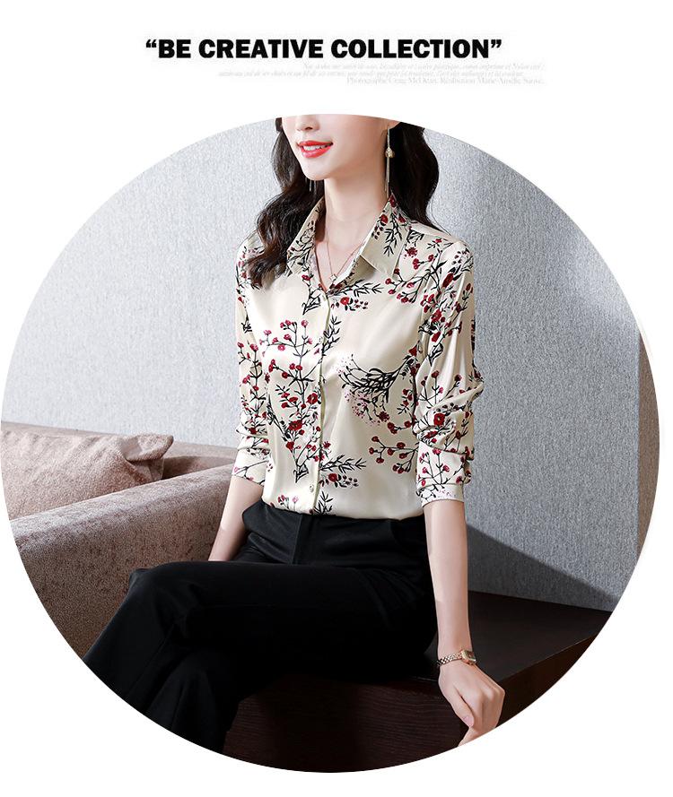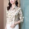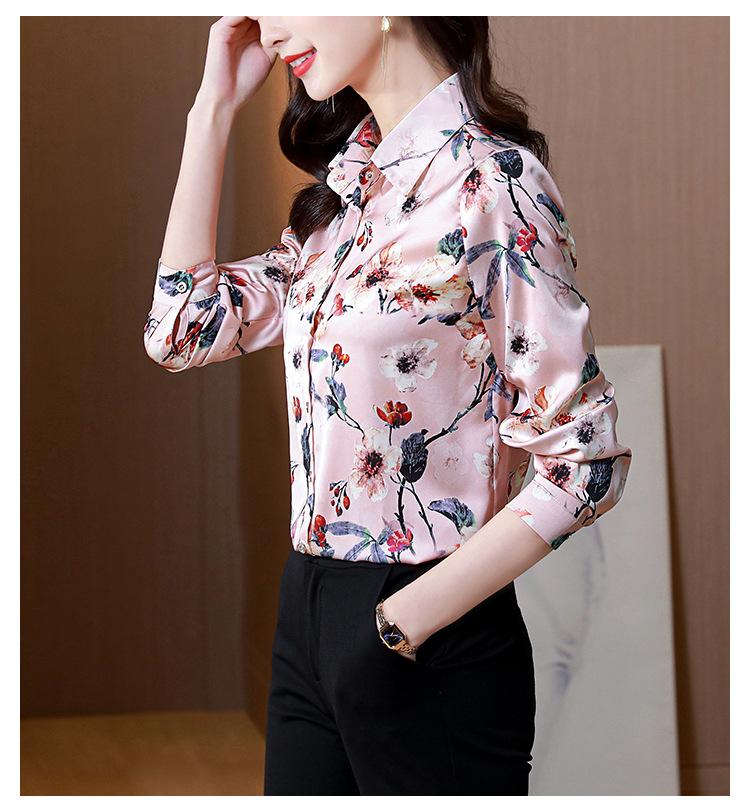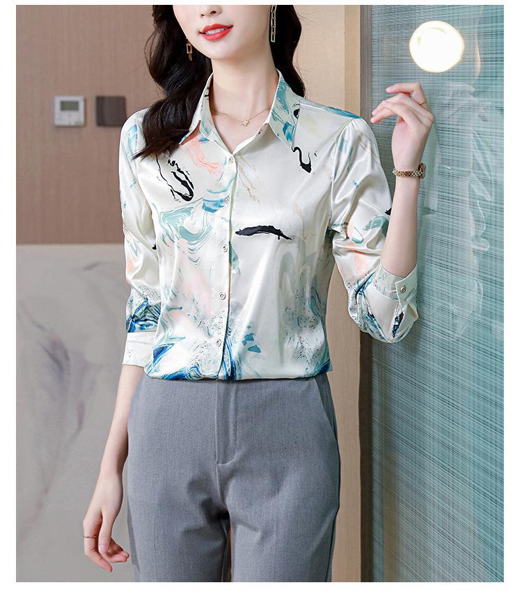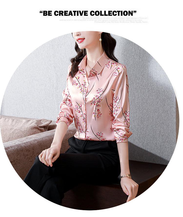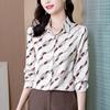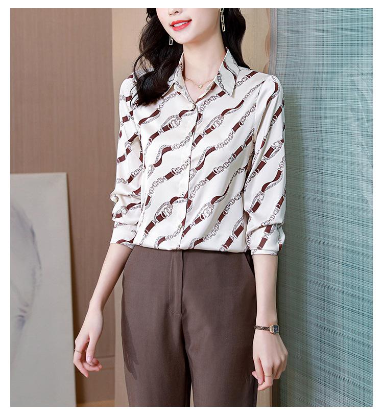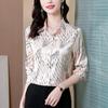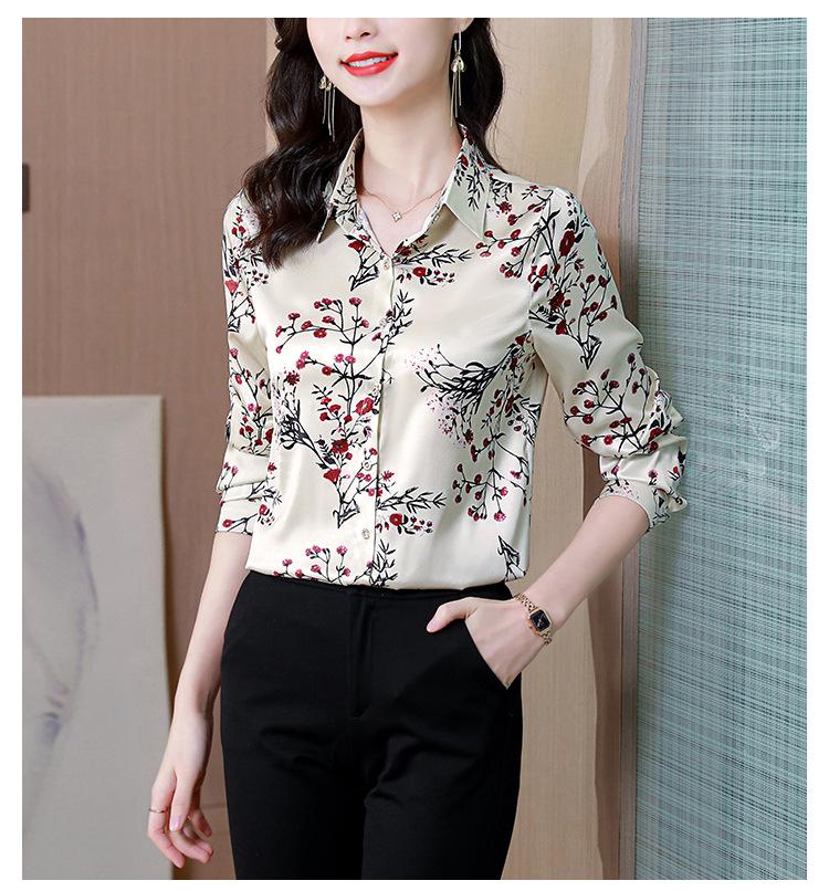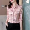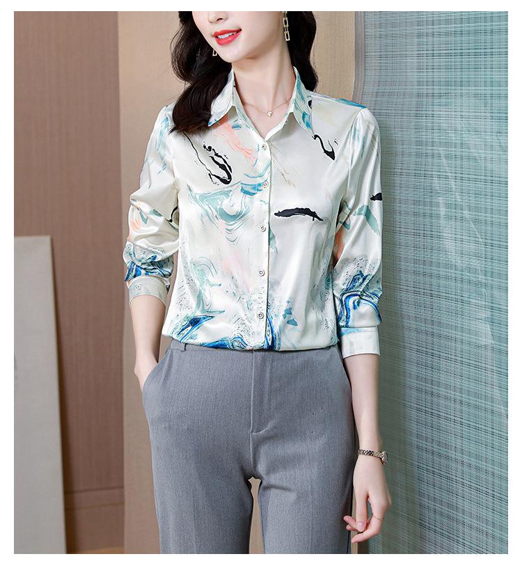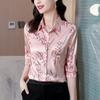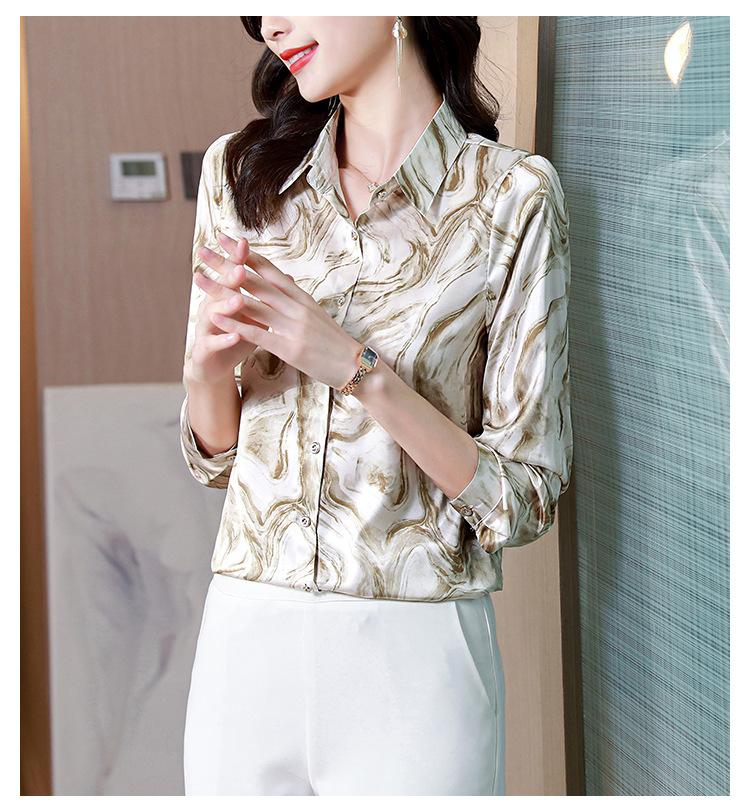 Camisa de seda 2025 para mujer, informal, de seda morera, de mediana edad, para primavera y otoño, con cuello cuadrado y manga larga.