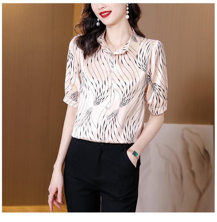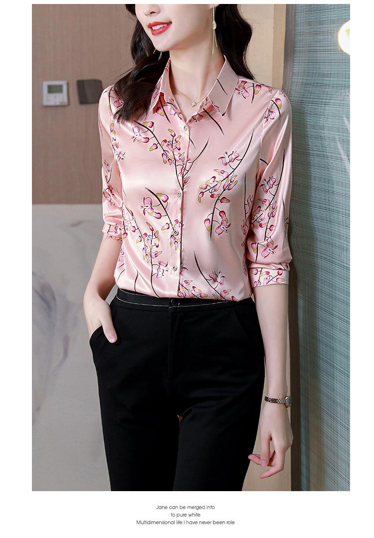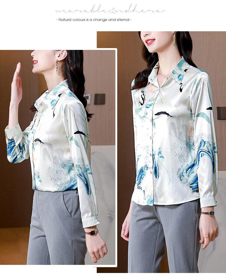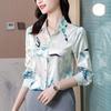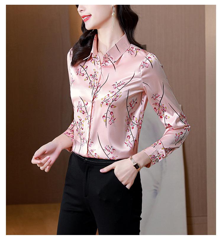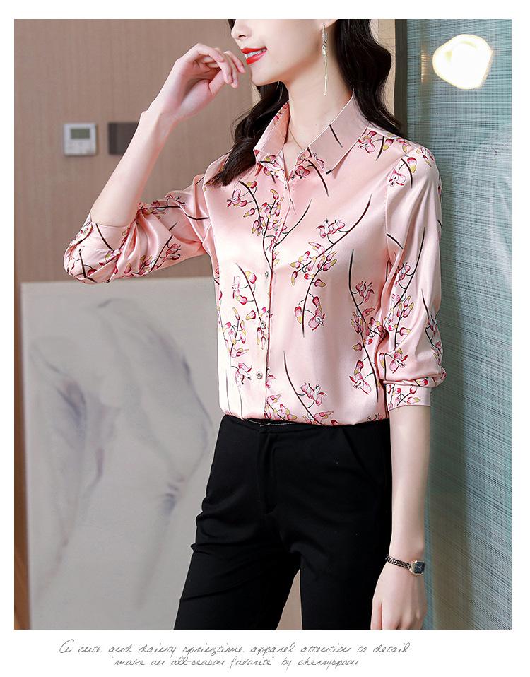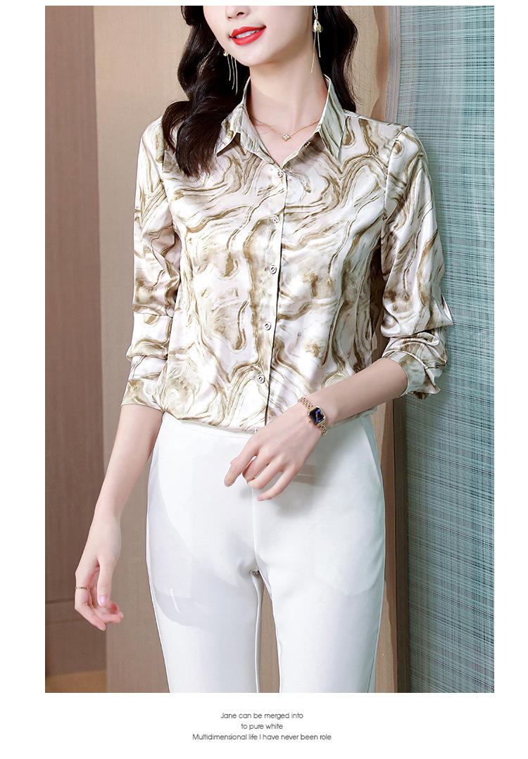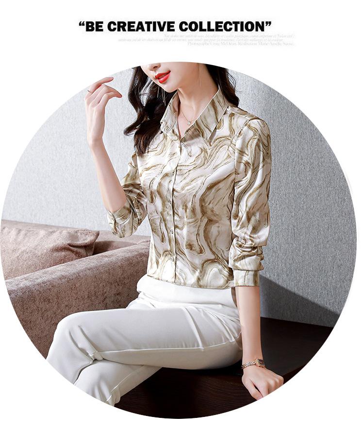 Camisa de seda 2025 para mujer, informal, de seda morera, de mediana edad, para primavera y otoño, con cuello cuadrado y manga larga.