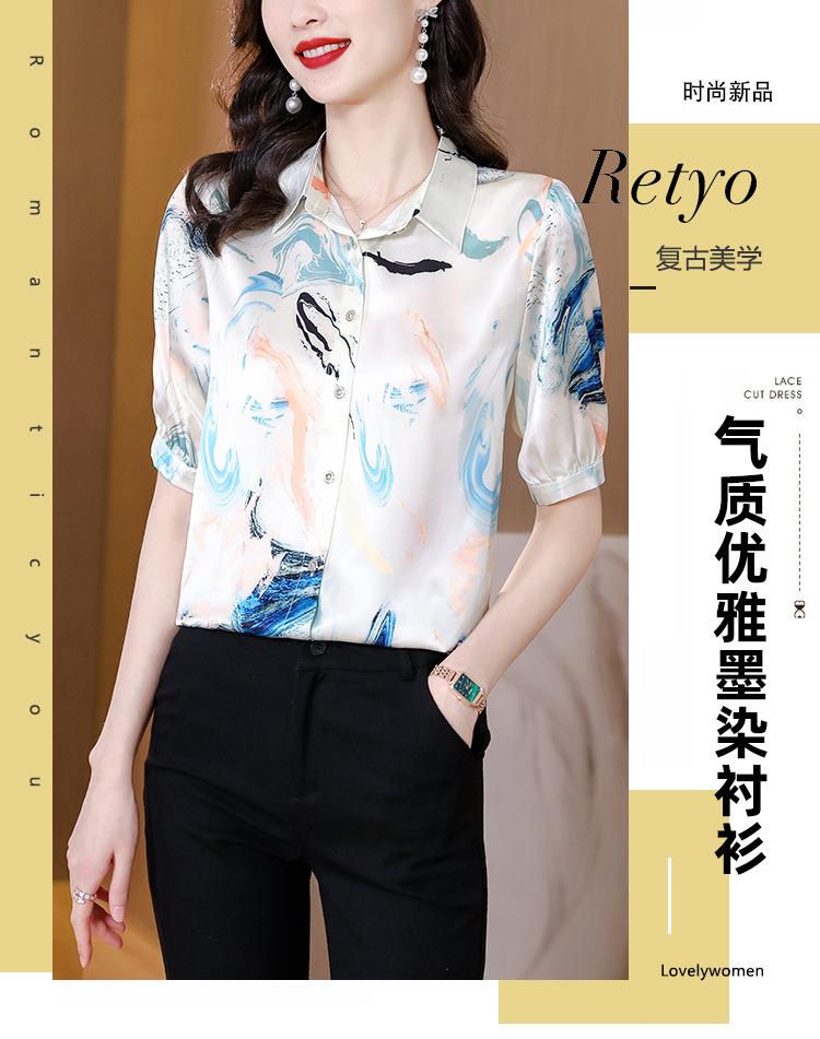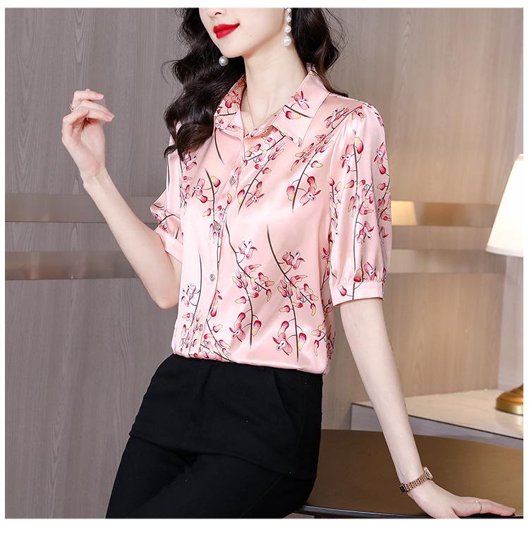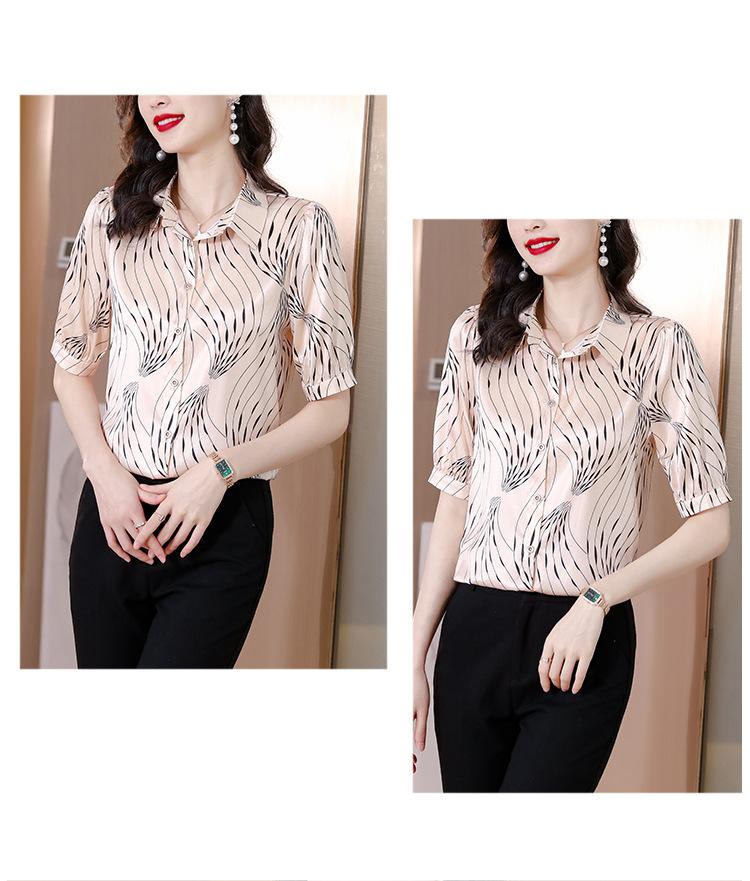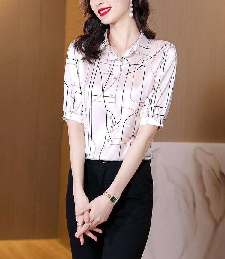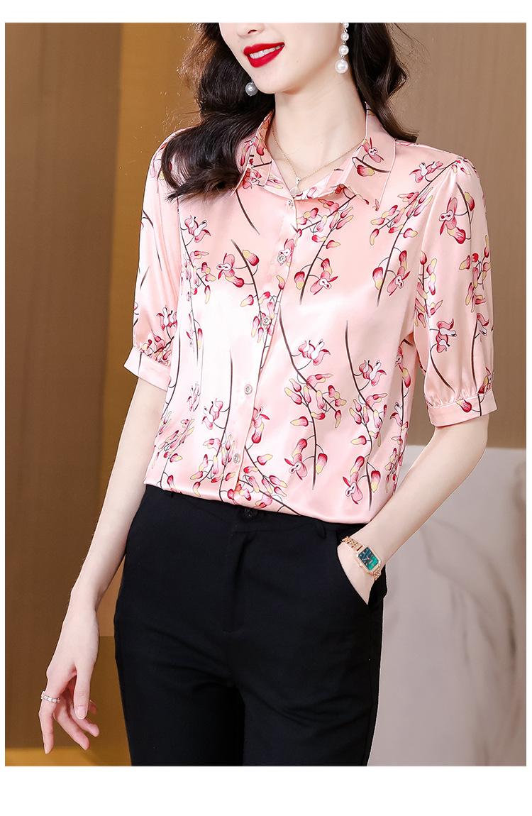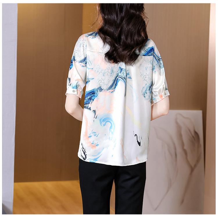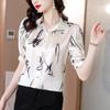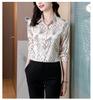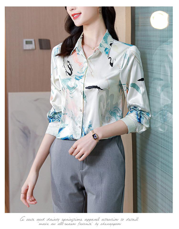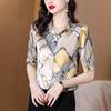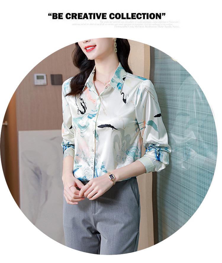 Camisa de seda 2025 para mujer, informal, de seda morera, de mediana edad, para primavera y otoño, con cuello cuadrado y manga larga.