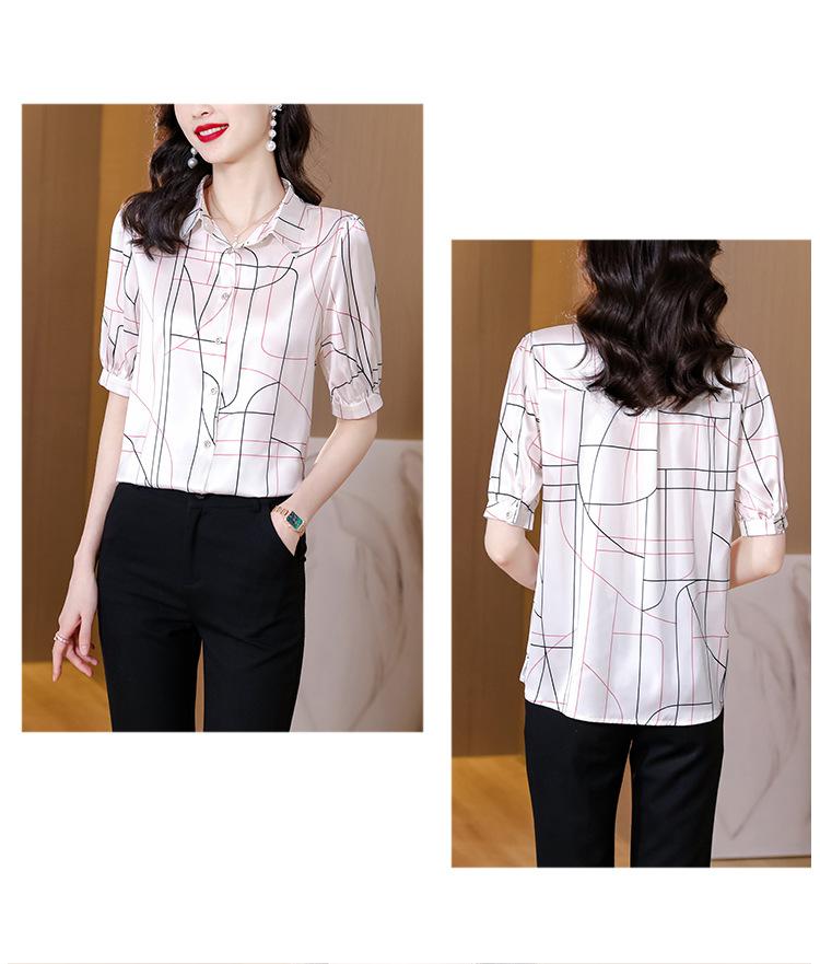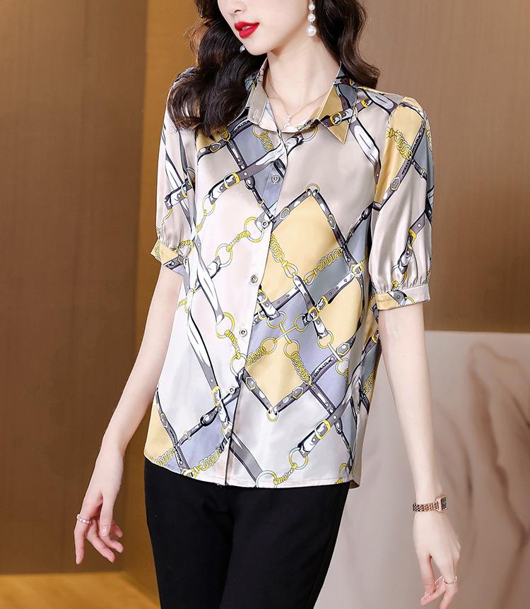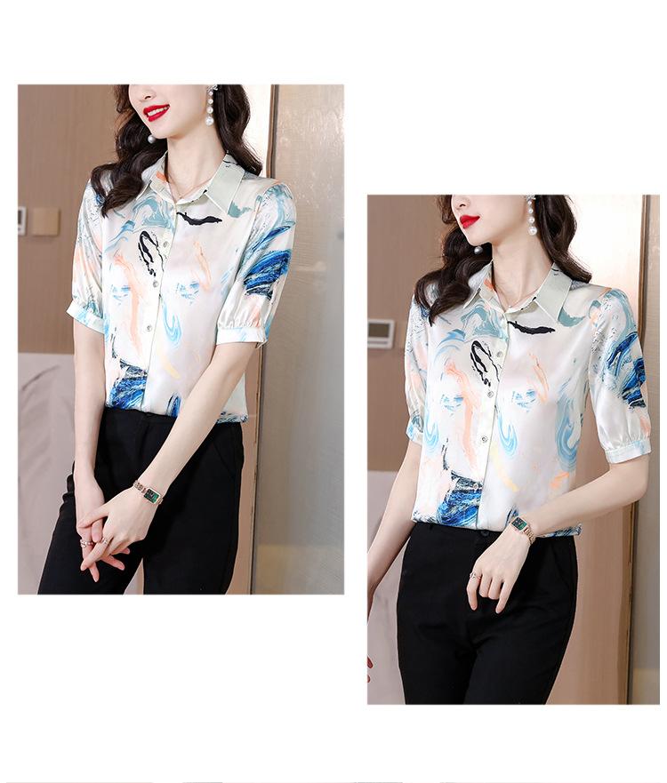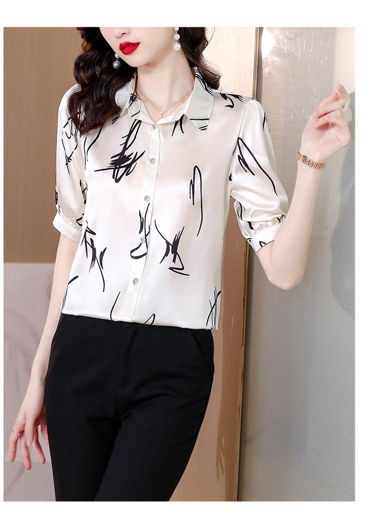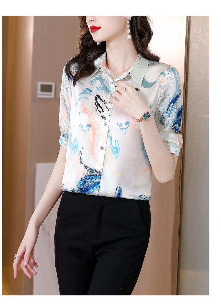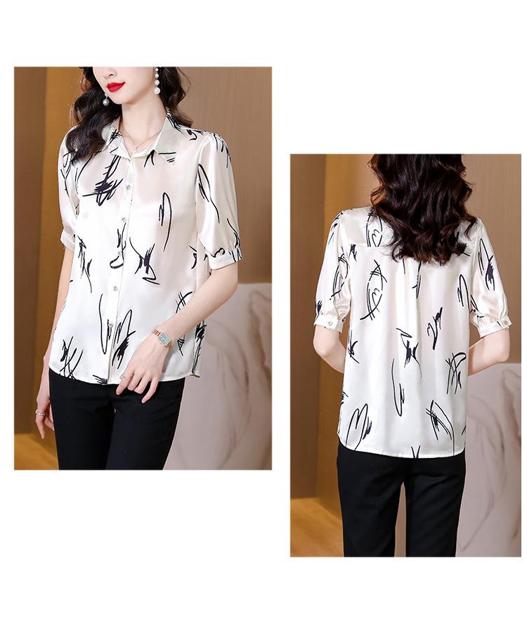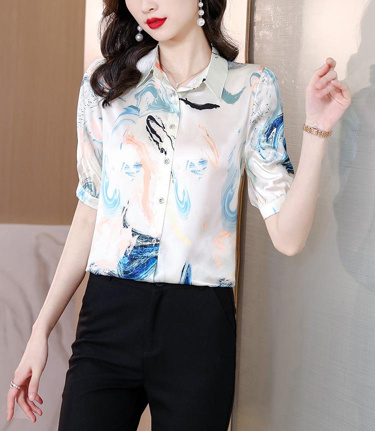 Camisa de seda 2025 para mujer, informal, de seda morera, de mediana edad, para primavera y otoño, con cuello cuadrado y manga larga.