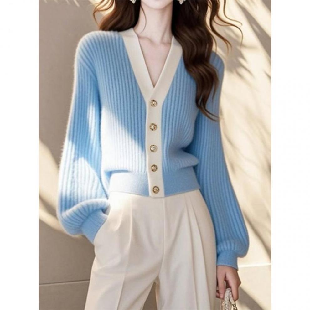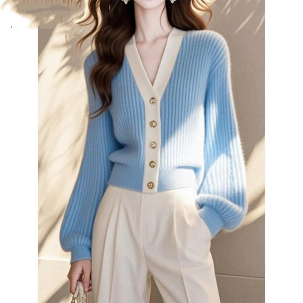 Cárdigan de punto de manga larga con cuello en V para mujer, elegante y hermoso 2025 de principios de primavera, súper favorecedor, top de aroma pequeño, look adelgazante