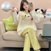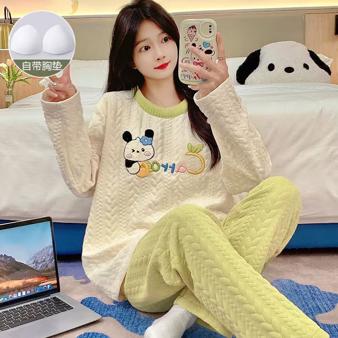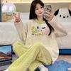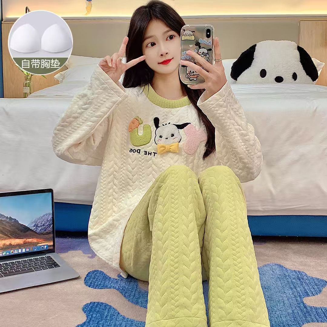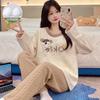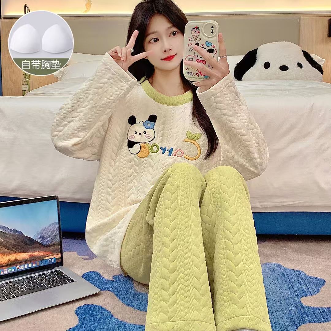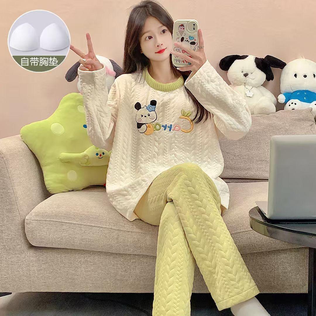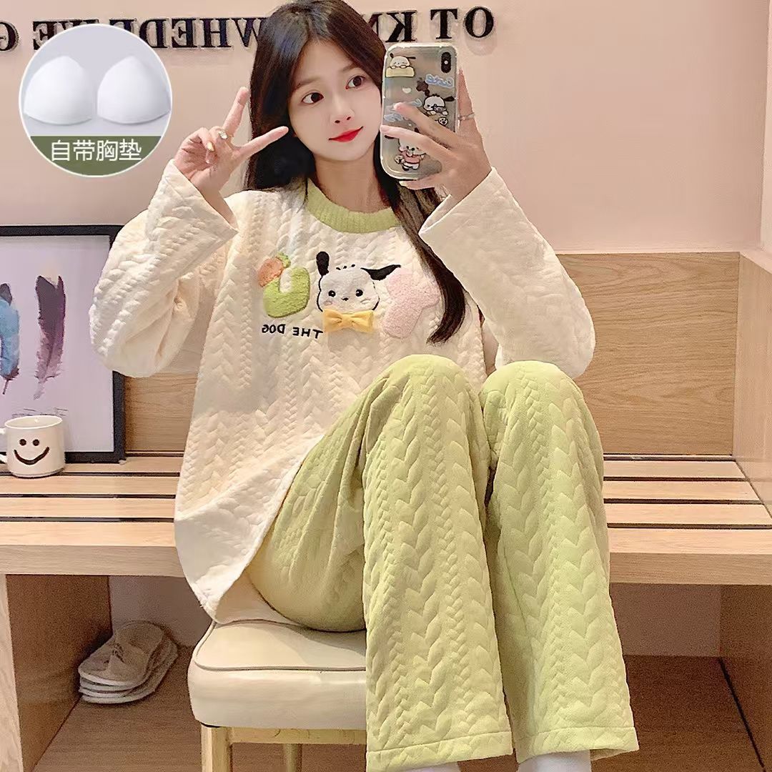 Versión coreana de pijamas para mujer otoño e invierno nuevos con almohadilla para el pecho integrada algodón aire manga larga gruesos cálidos traje de ropa para el hogar