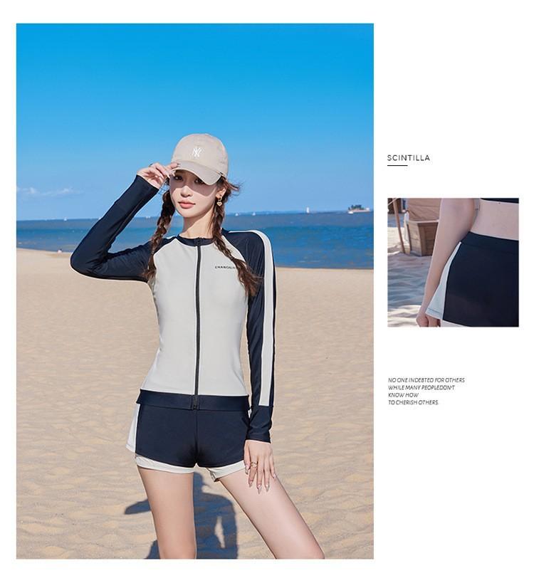 Traje de Baño Nuevo 2024 para Mujer Dividido Deportivo Aguas Termales Conservador Adelgazante Cubre Carne Pantalones Manga Larga Traje de Surf Traje de Baño