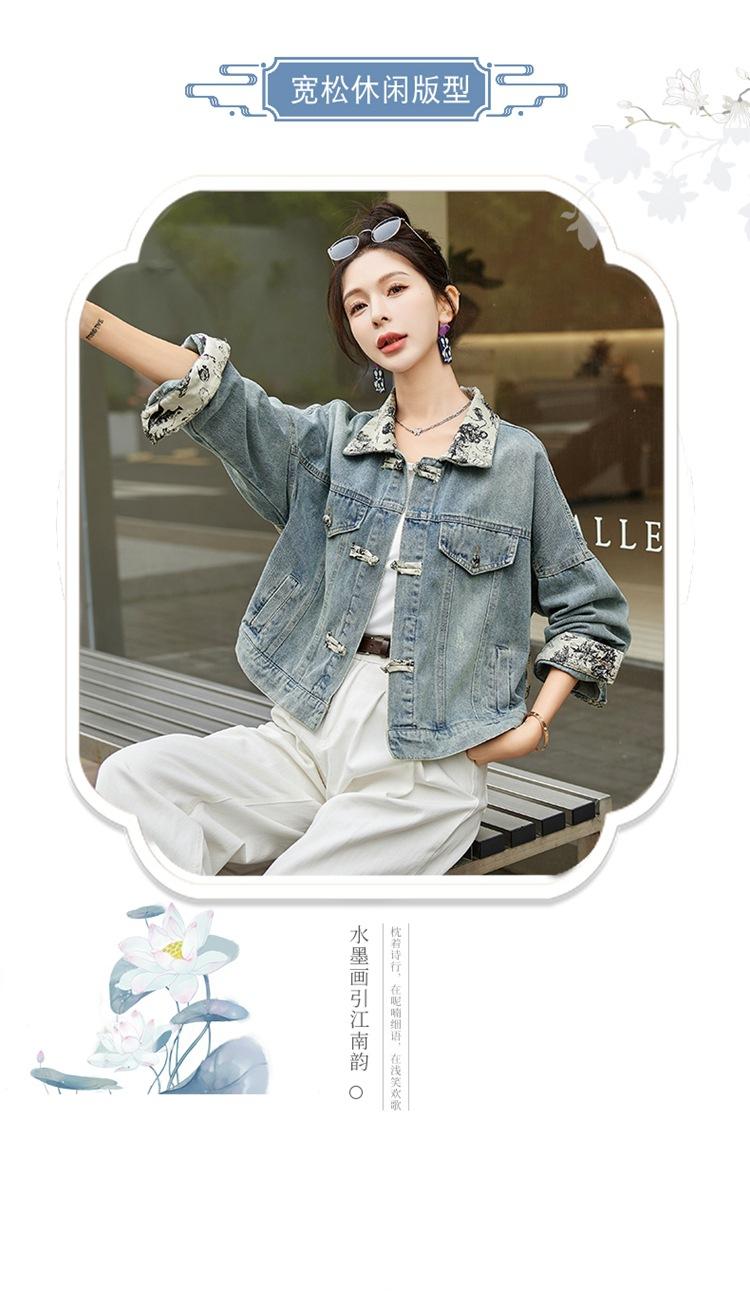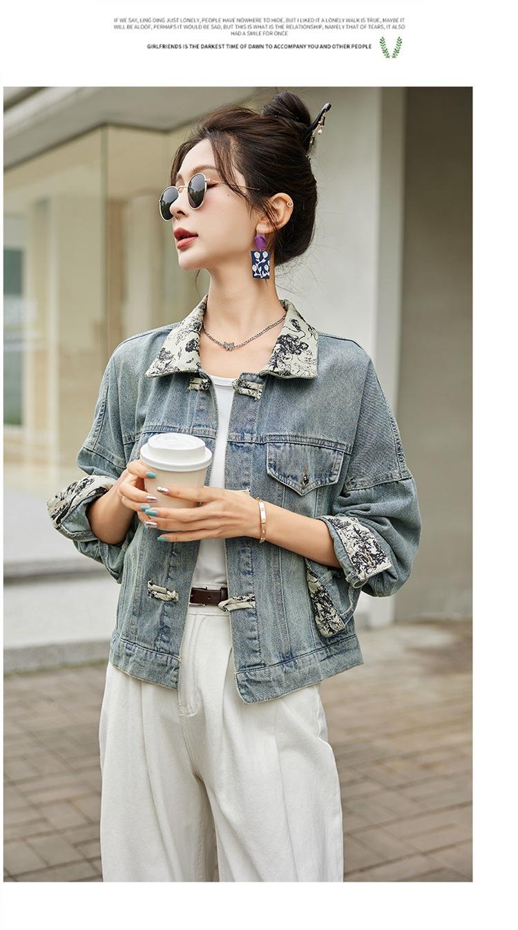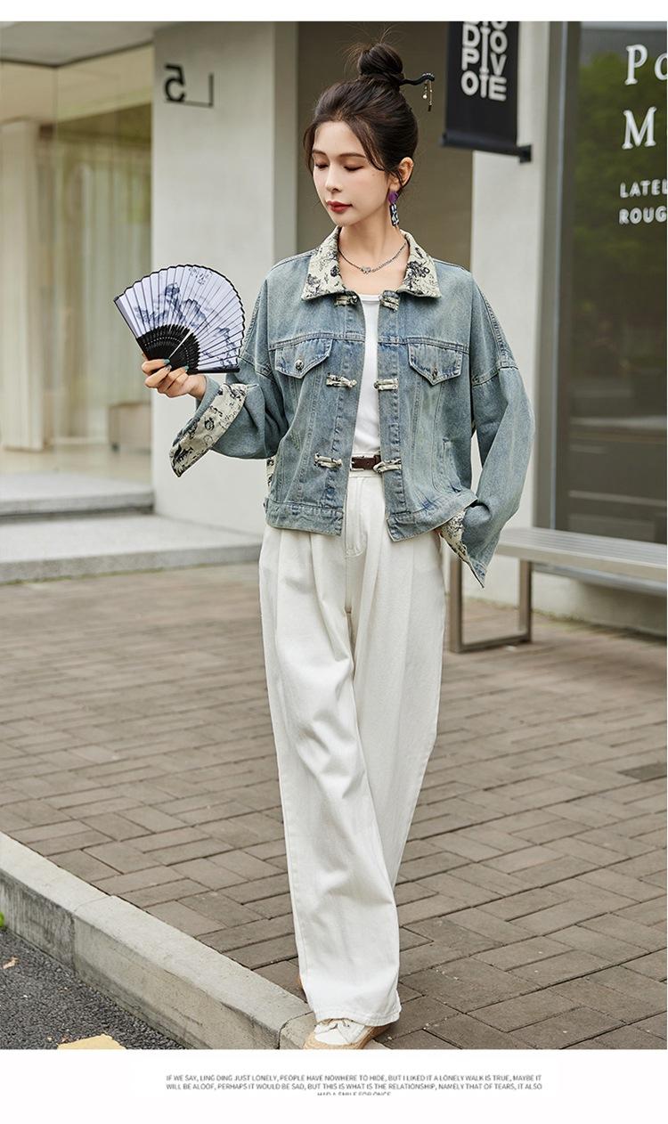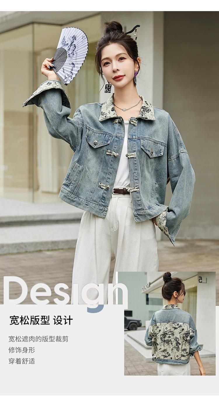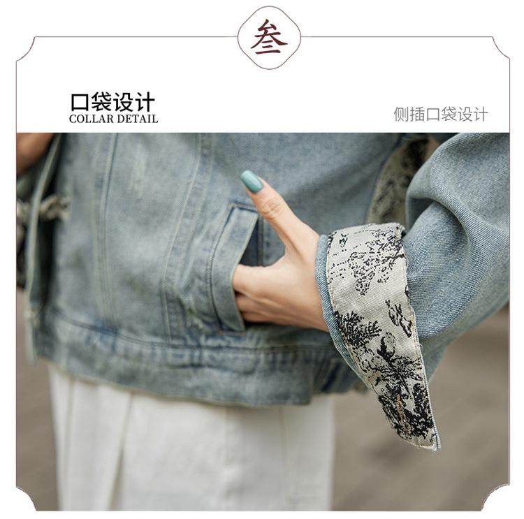 Abrigo de mezclilla chino nuevo con costuras de pintura a tinta para mujer Primavera y Otoño 2025 Nueva chaqueta pequeña ligera Guofeng súper favorecedora
