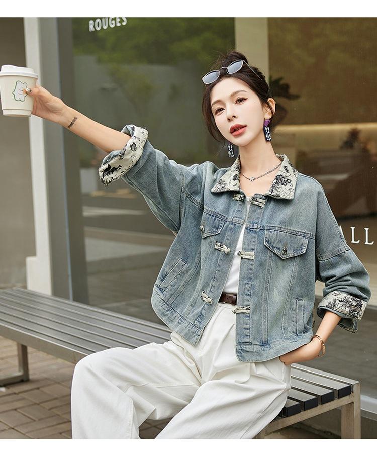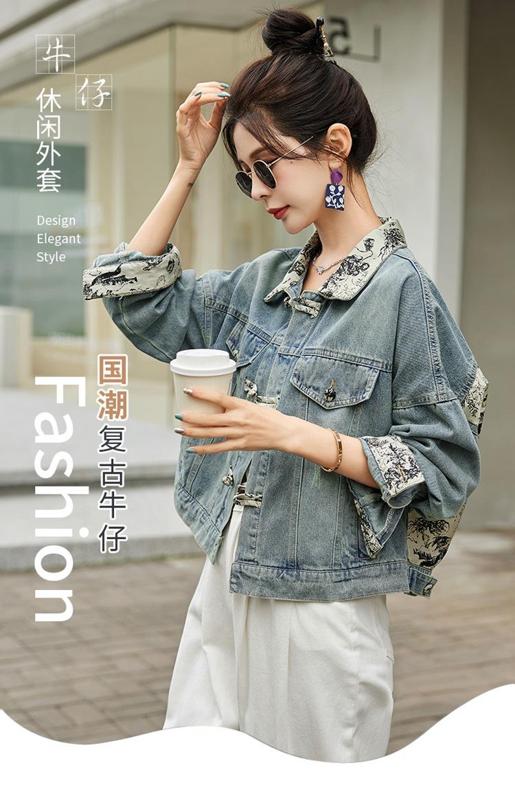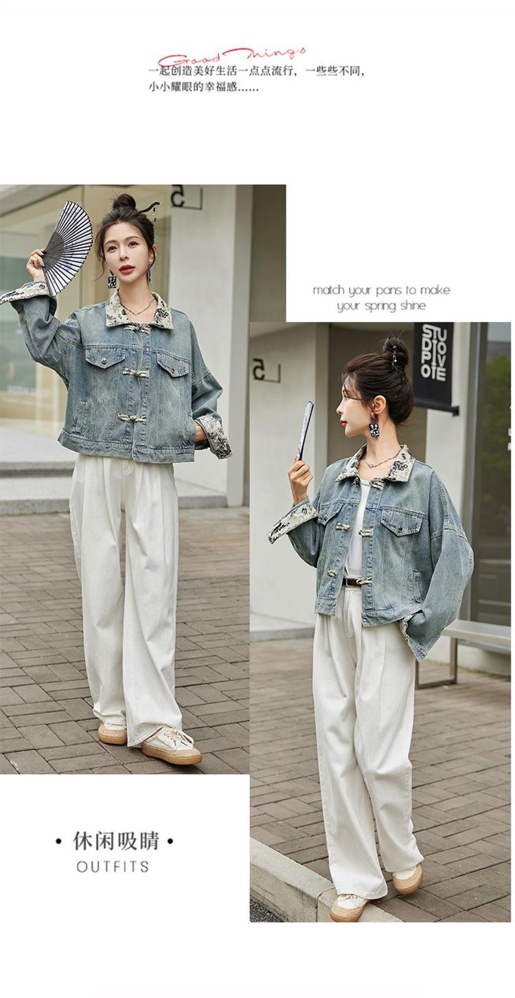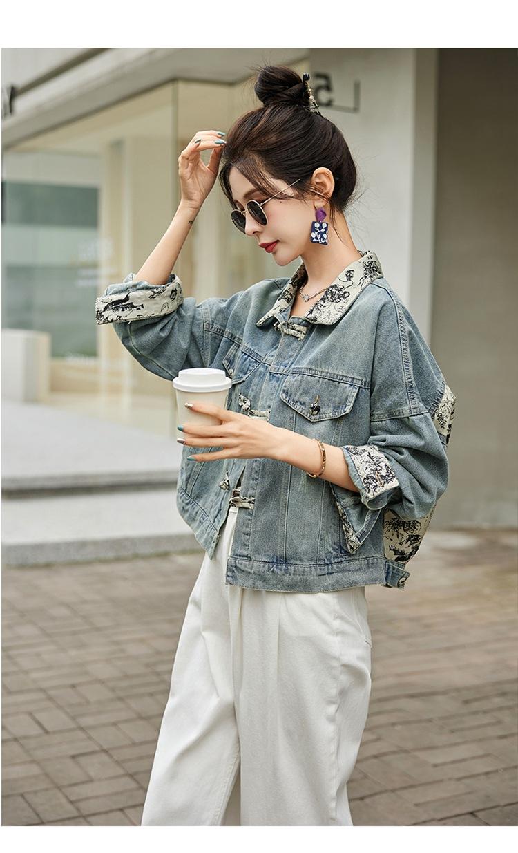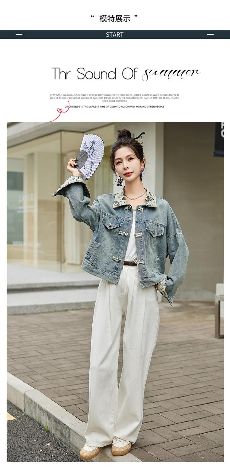 Abrigo de mezclilla chino nuevo con costuras de pintura a tinta para mujer Primavera y Otoño 2025 Nueva chaqueta pequeña ligera Guofeng súper favorecedora