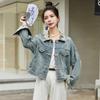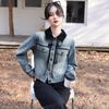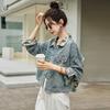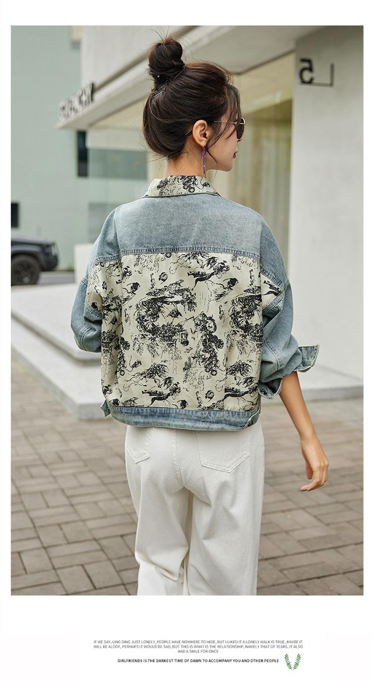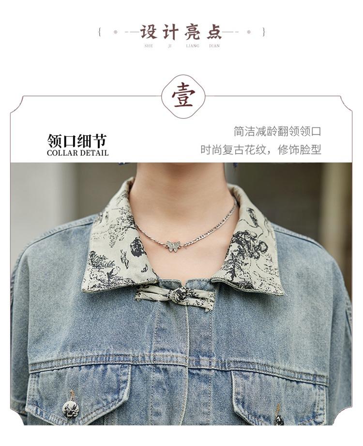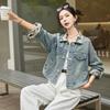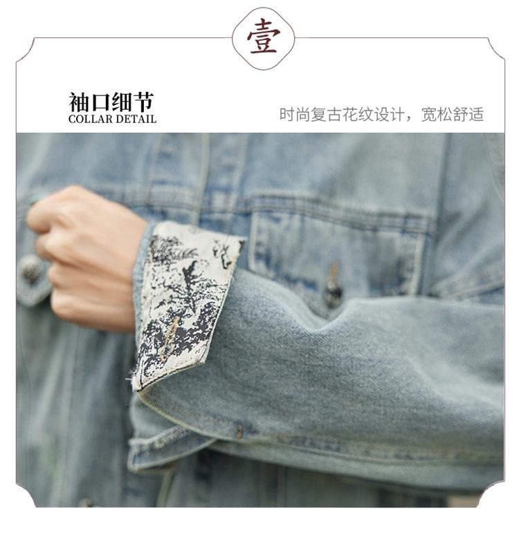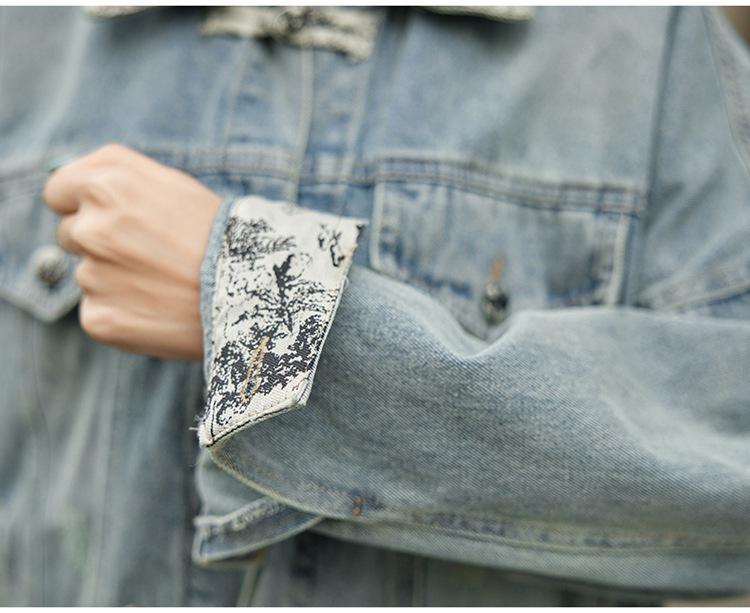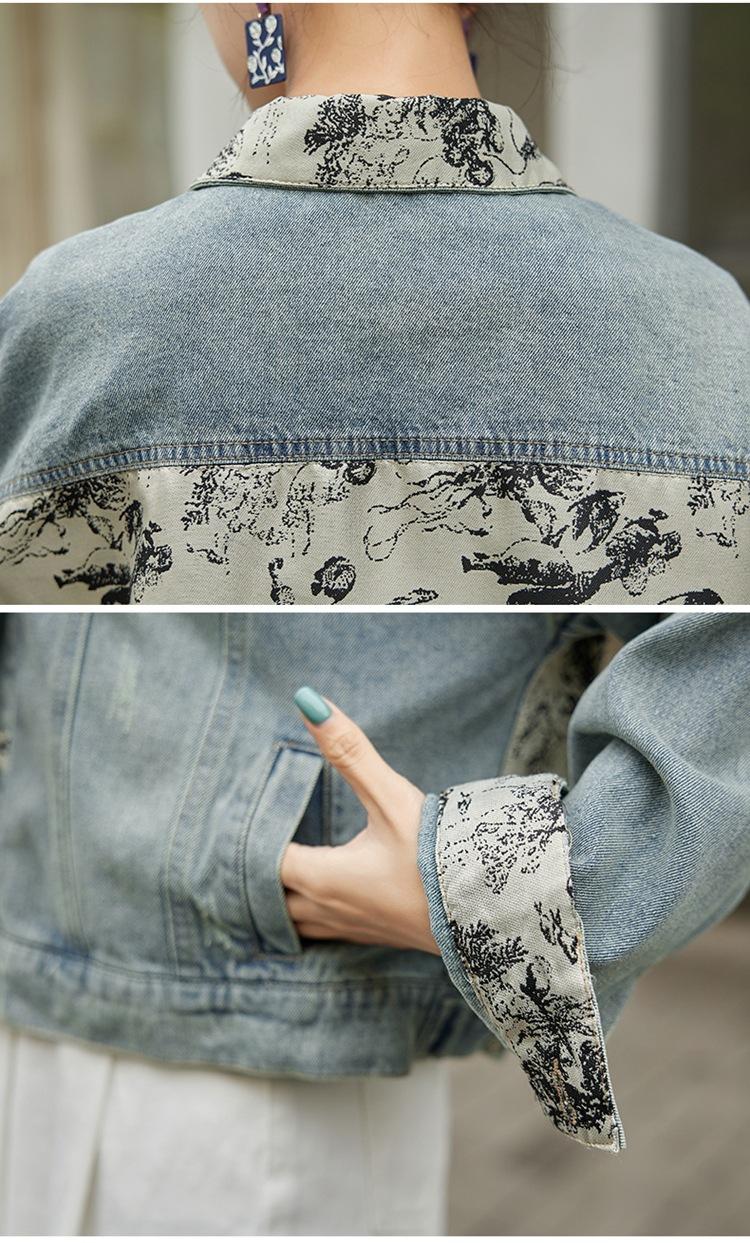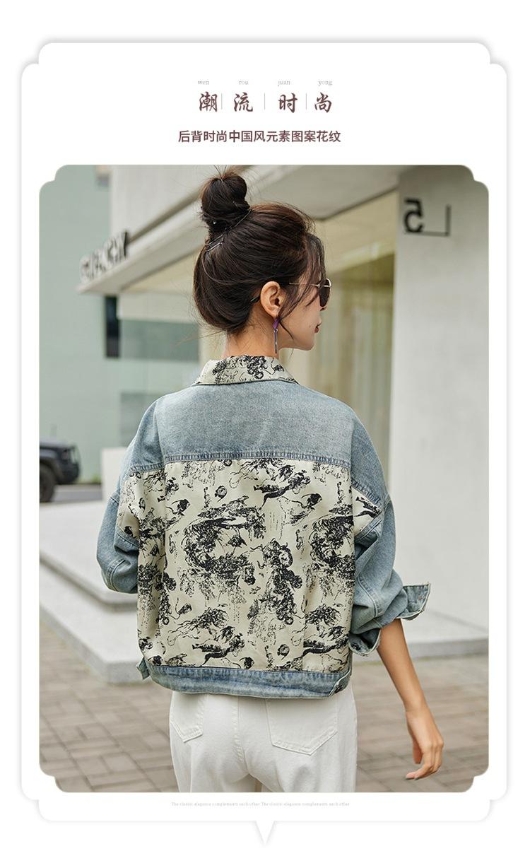 Abrigo de mezclilla chino nuevo con costuras de pintura a tinta para mujer Primavera y Otoño 2025 Nueva chaqueta pequeña ligera Guofeng súper favorecedora