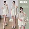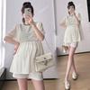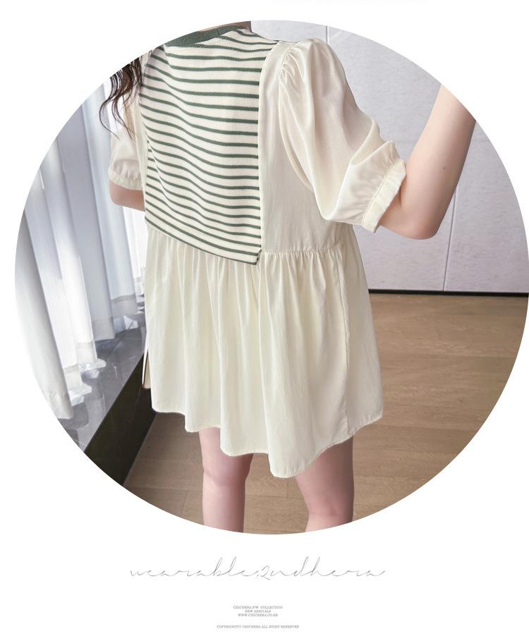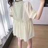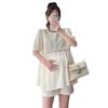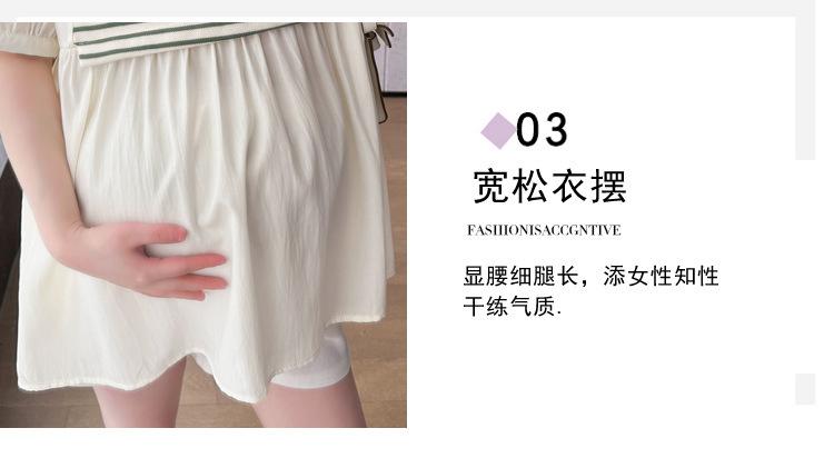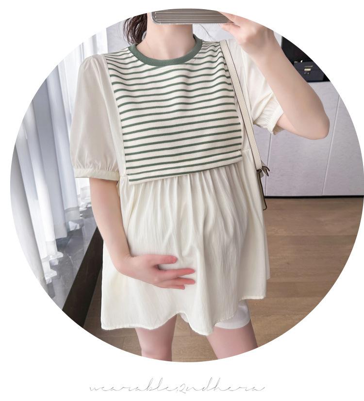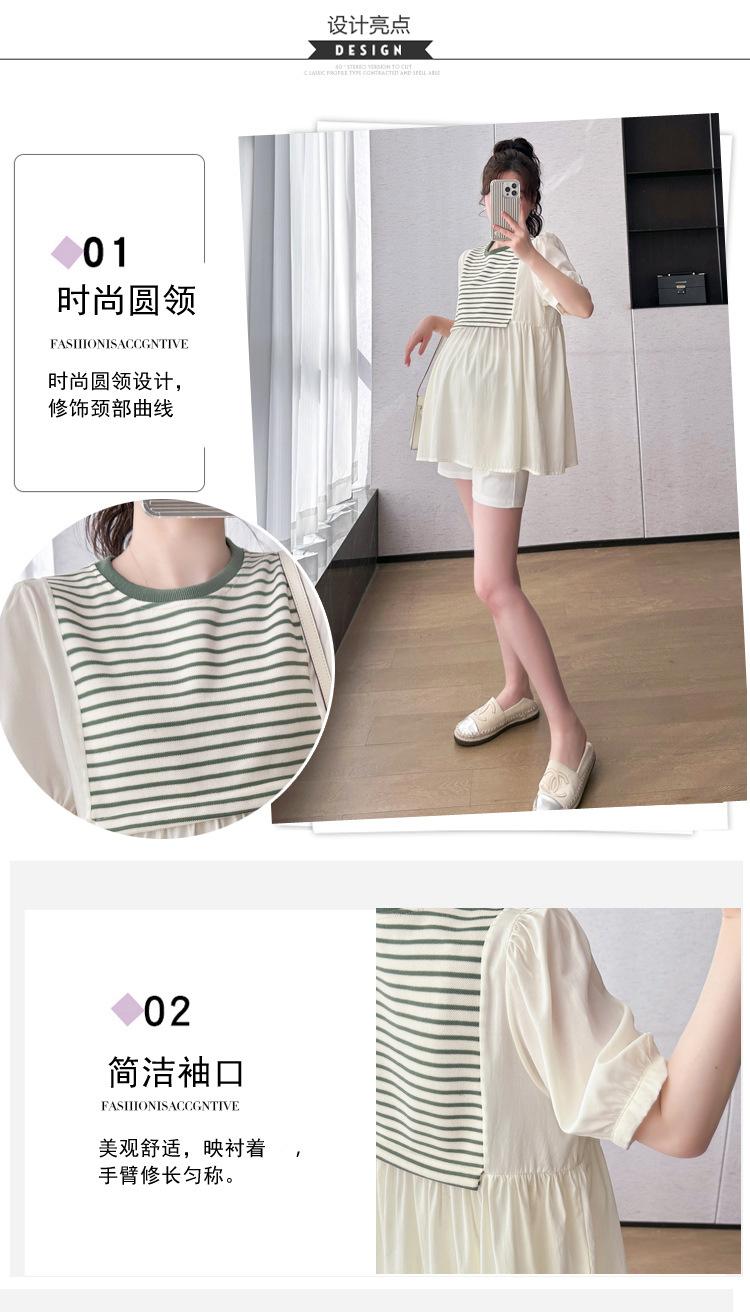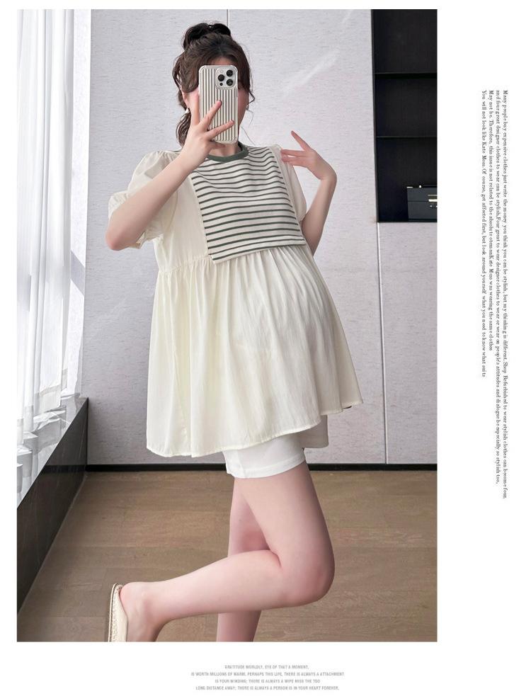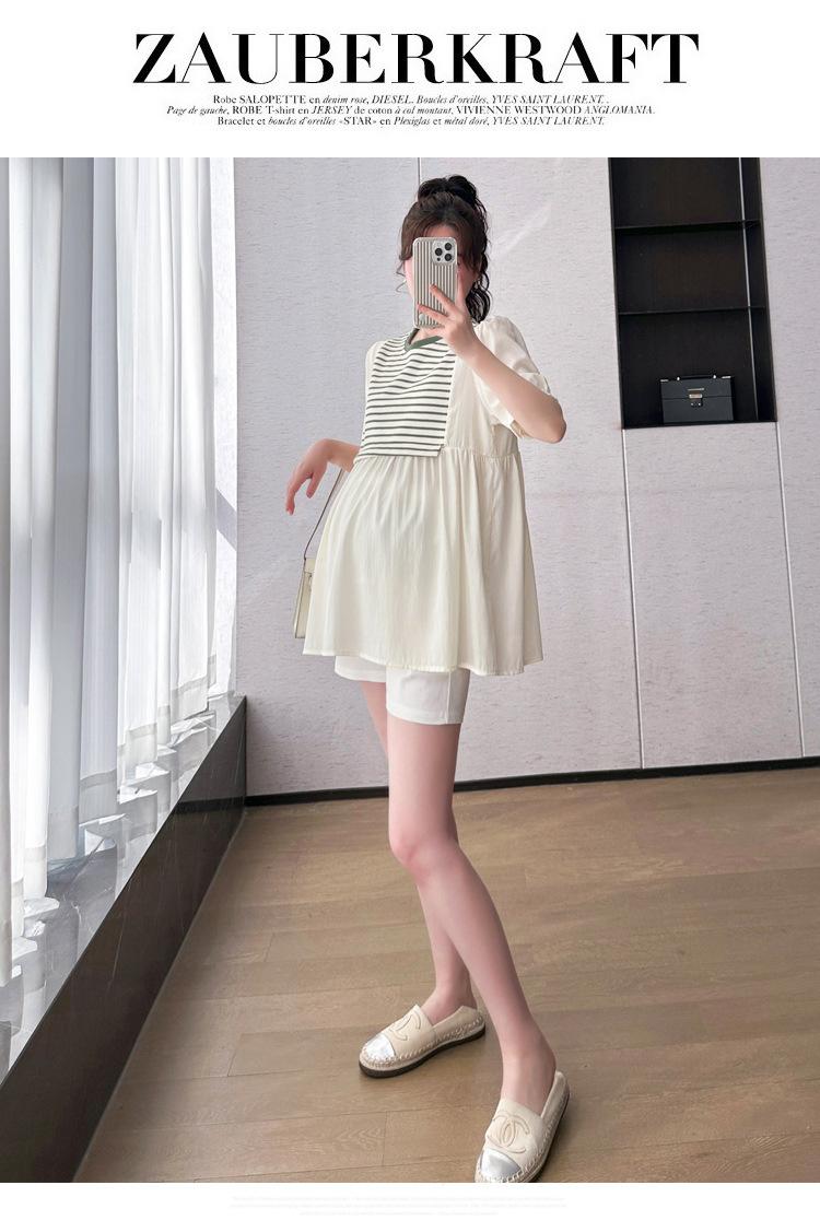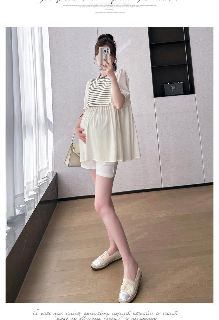 Ropa de Maternidad Verano Nuevo Rayado Falso Dos Piezas Top Babydoll Shorts Soporte de Vientre Traje de Maternidad de Dos Piezas