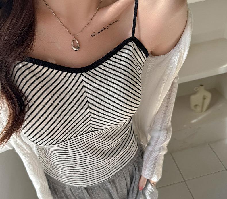 Camisola de rayas de nuevo estilo, chaleco pequeño para mujer, sexy, de moda, con almohadilla para el pecho, de una pieza, corta, con hermosa espalda para uso exterior.