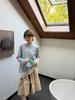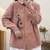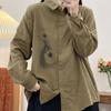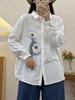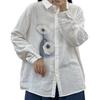 Camisa de algodón de doble capa artística de primavera para mujer, blusa holgada informal de manga larga con cuello cuadrado y estampado que combina con todo