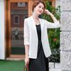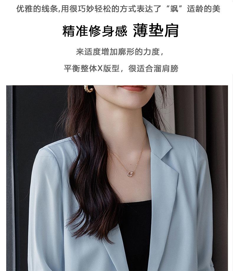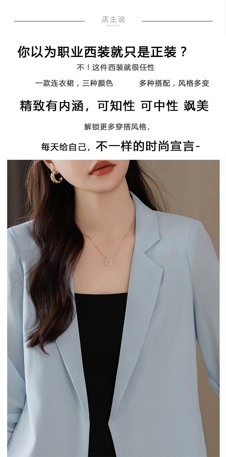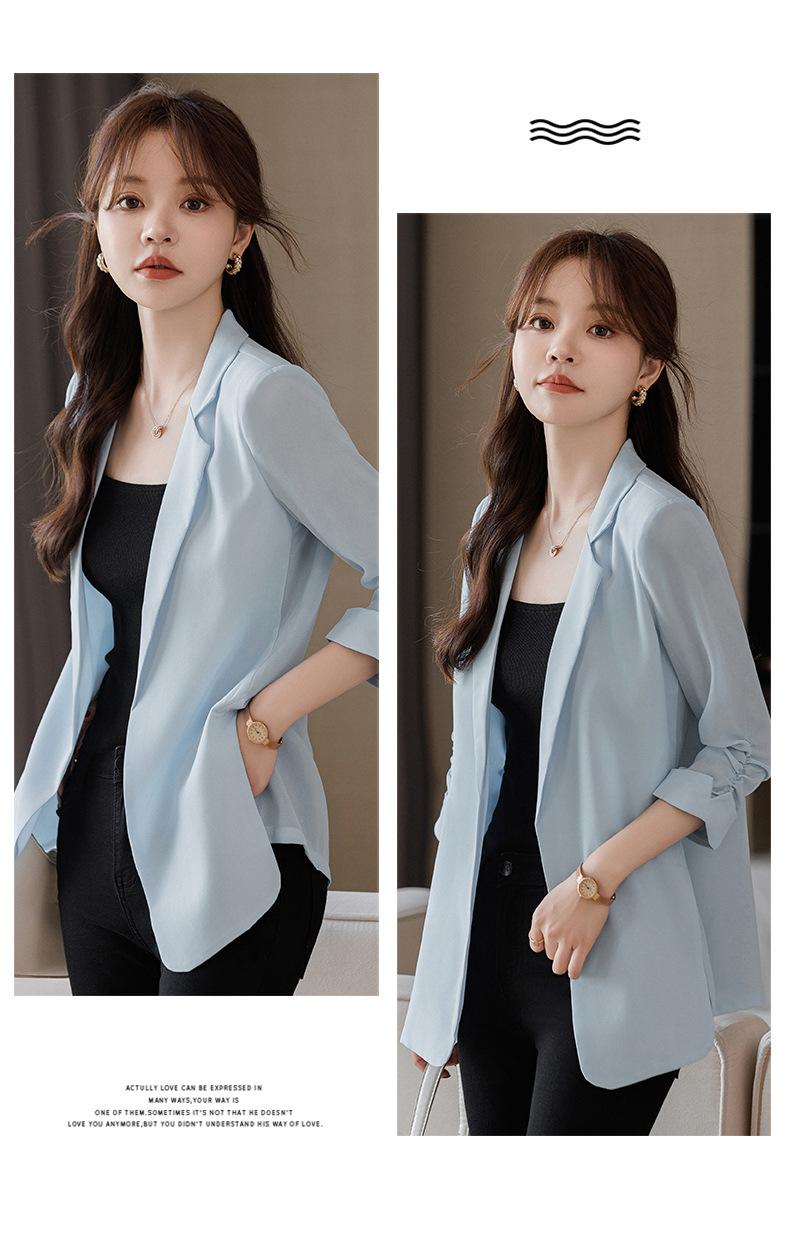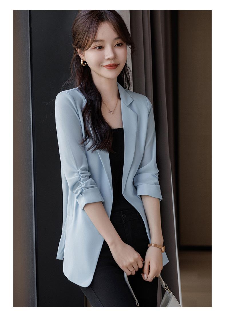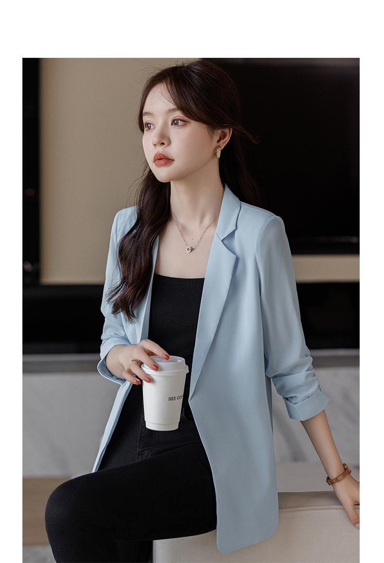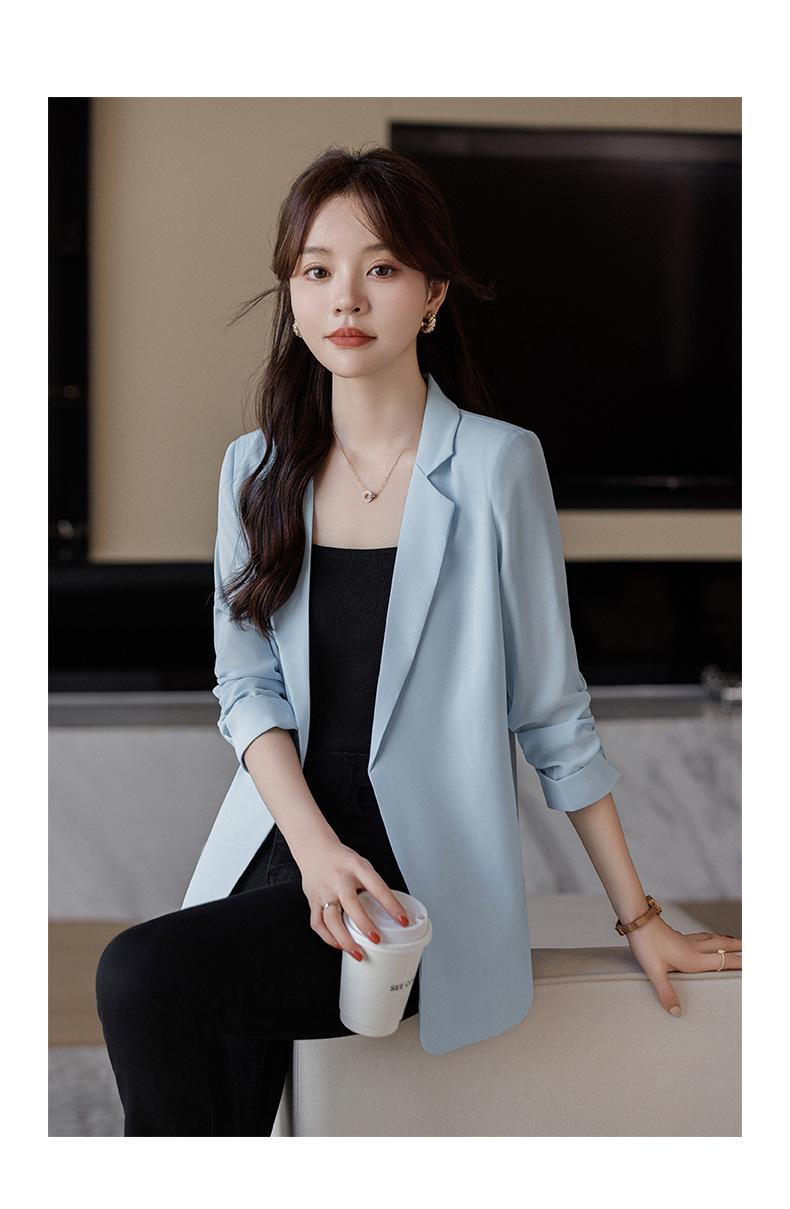 Abrigo de traje pequeño, sencillo y profesional, con mangas 3/4, color azul, para mujer, primavera/verano/otoño 2024, moda de temperamento.