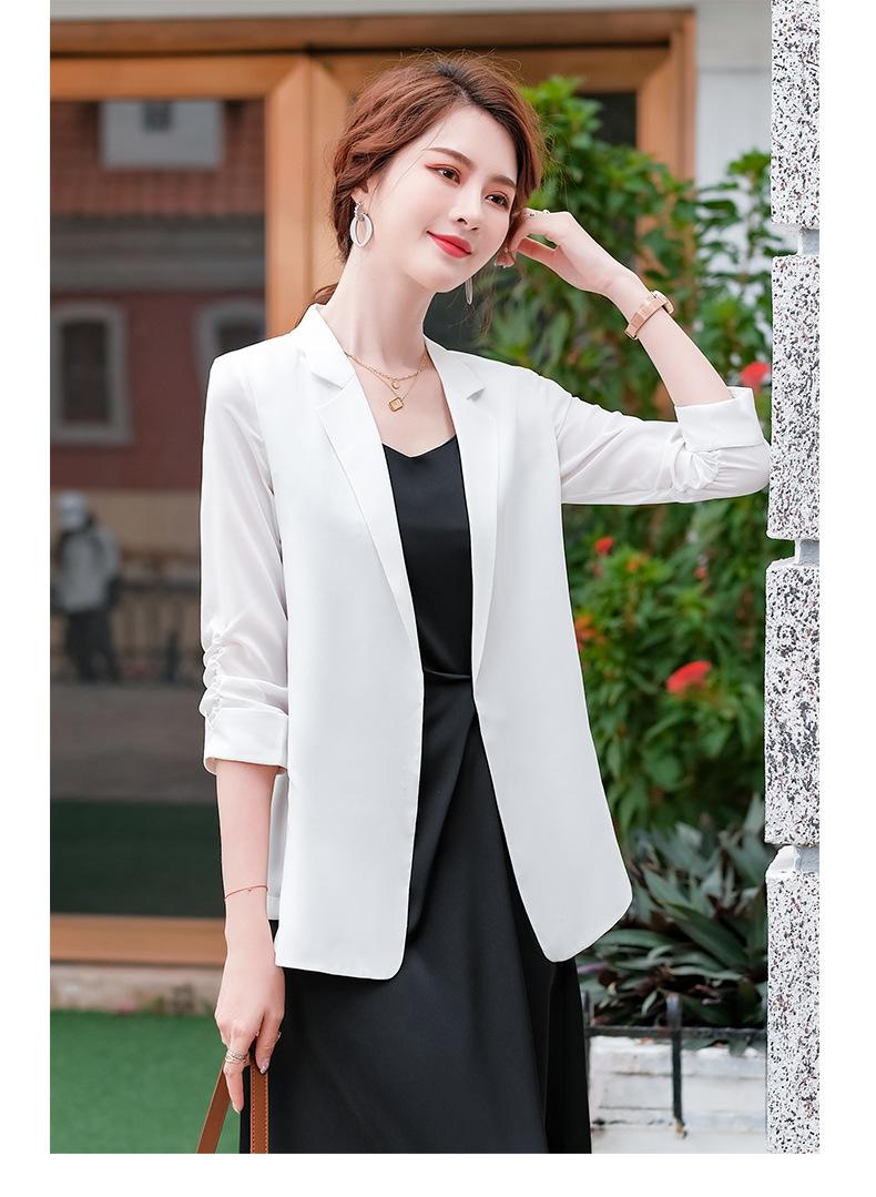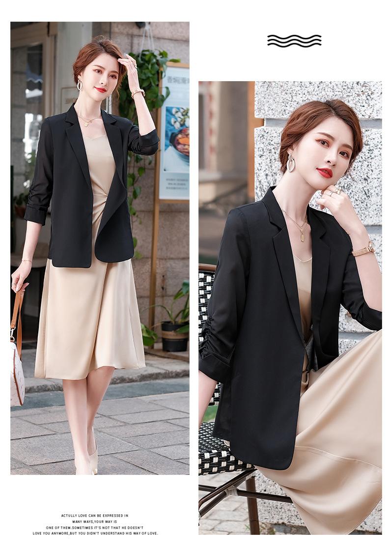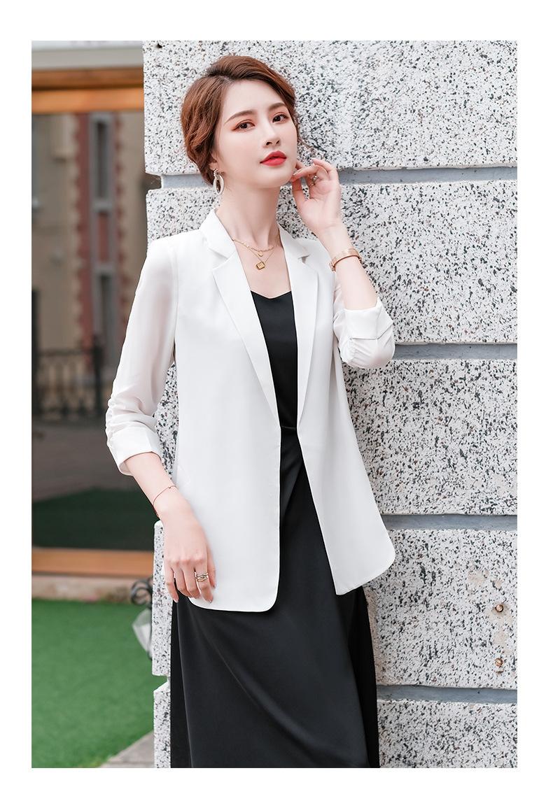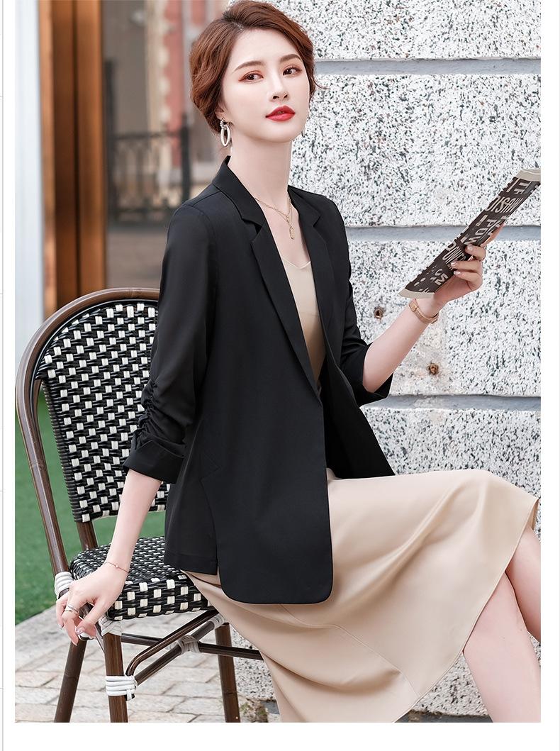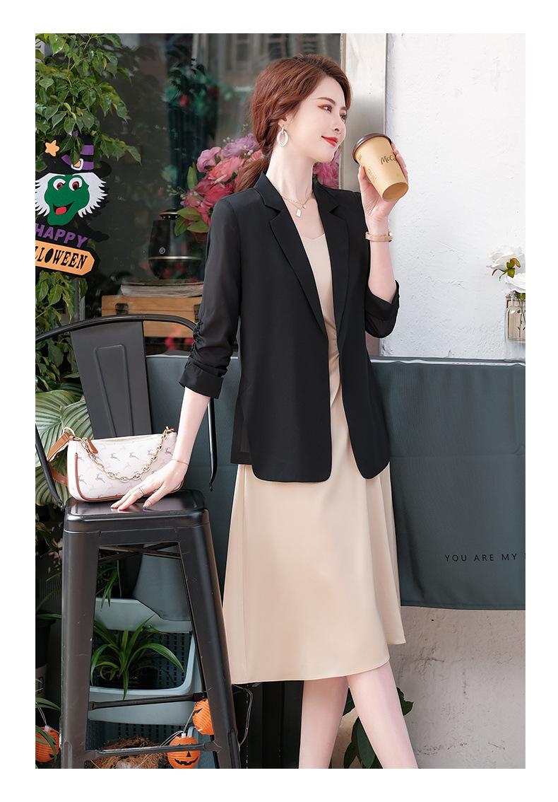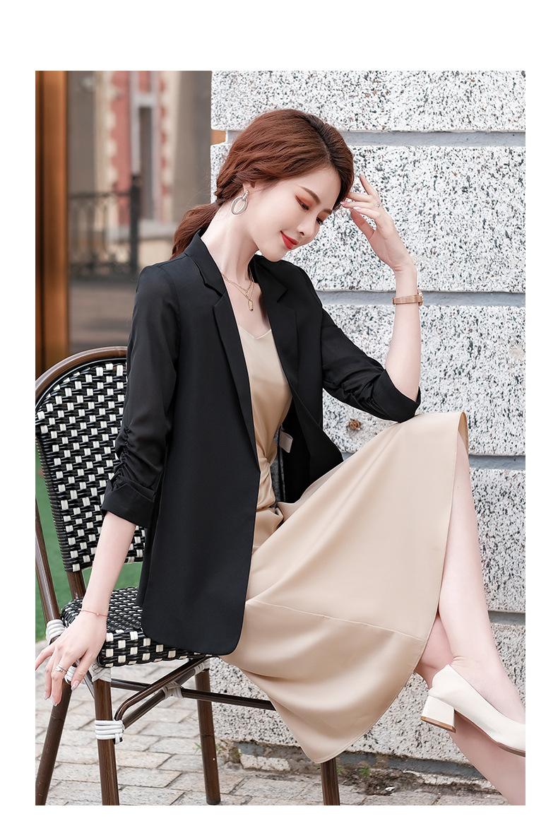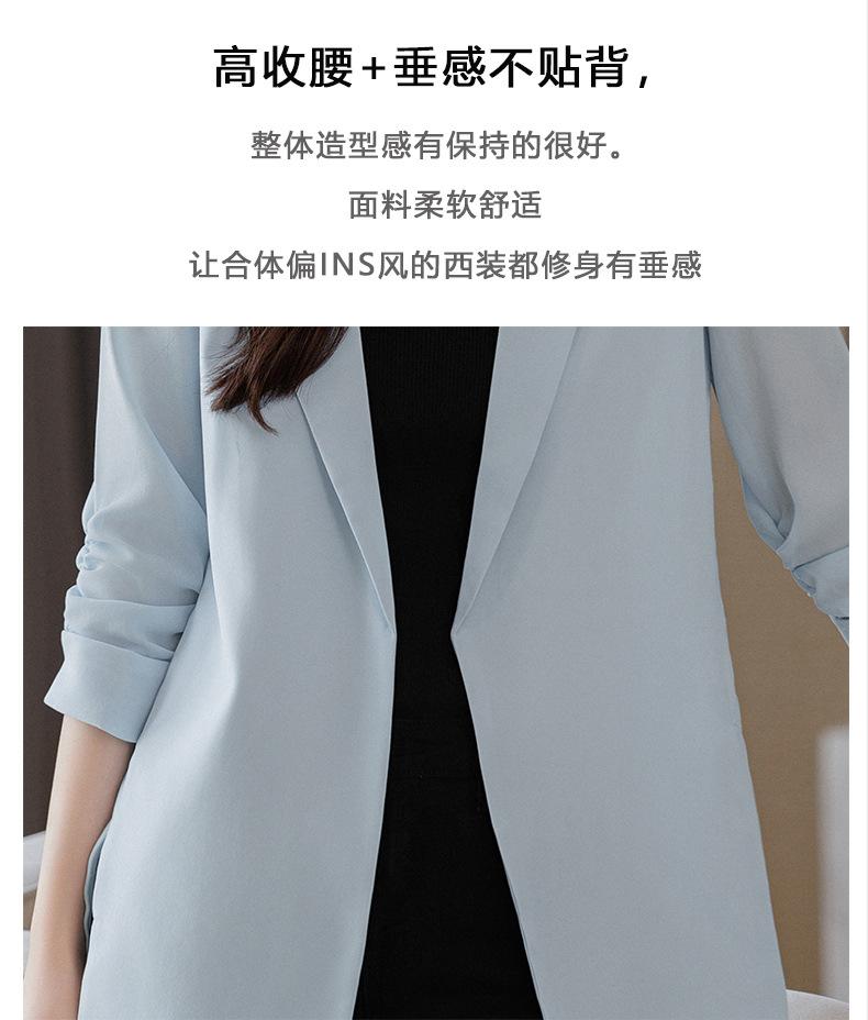 Abrigo de traje pequeño, sencillo y profesional, con mangas 3/4, color azul, para mujer, primavera/verano/otoño 2024, moda de temperamento.