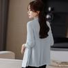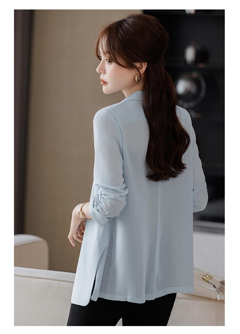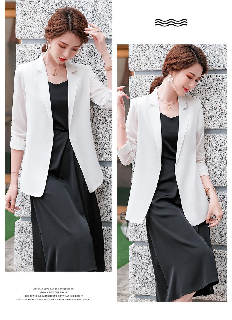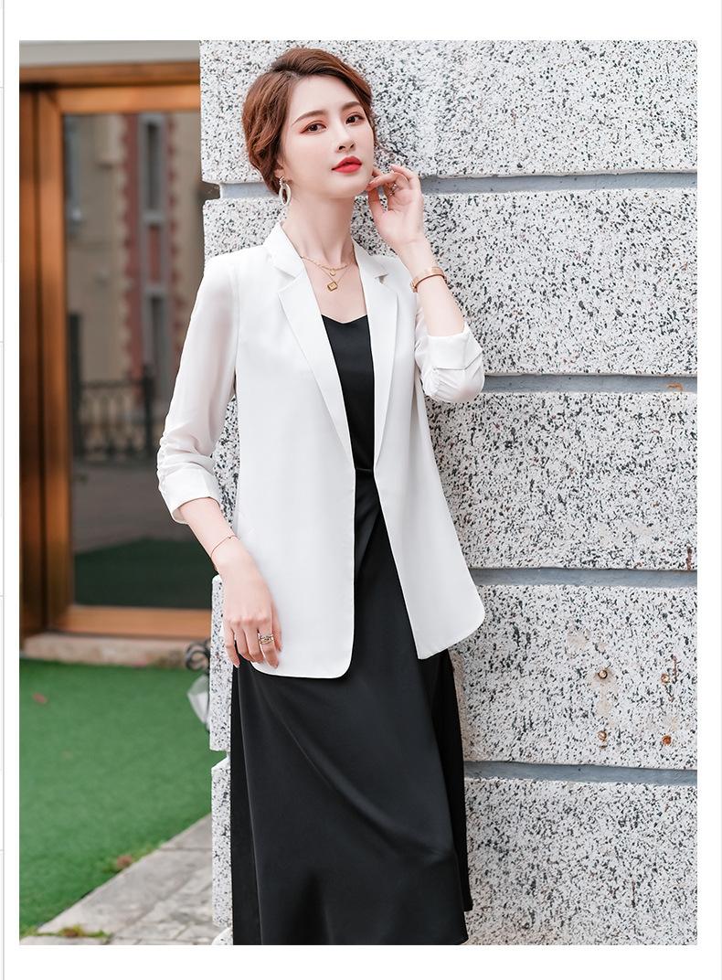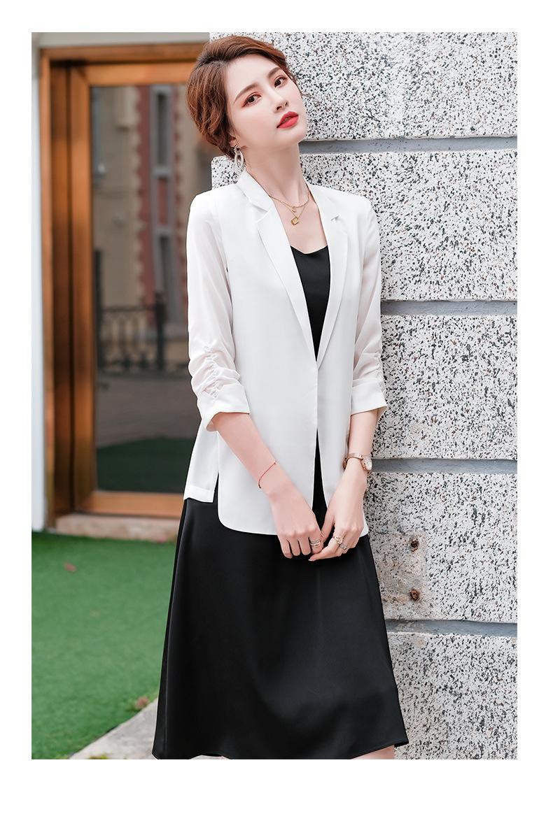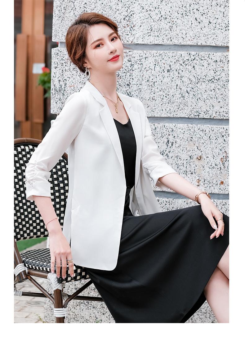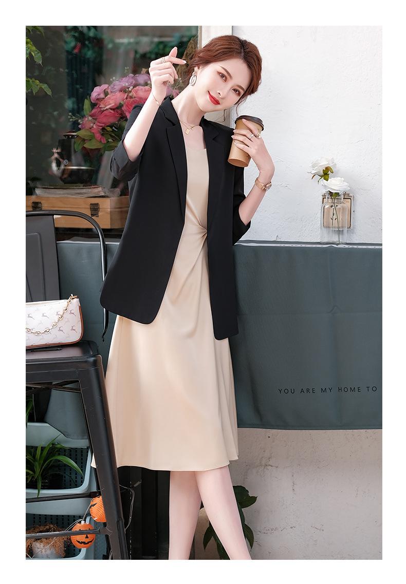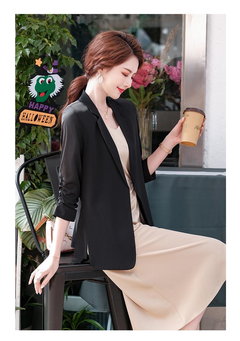 Abrigo de traje pequeño, sencillo y profesional, con mangas 3/4, color azul, para mujer, primavera/verano/otoño 2024, moda de temperamento.