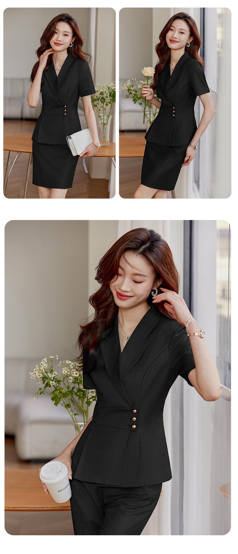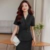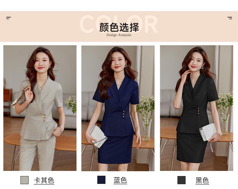 Traje pequeño de manga corta color caqui para mujer, chaqueta, pantalones, falda, traje profesional informal de dos piezas, novedad de verano de 2024