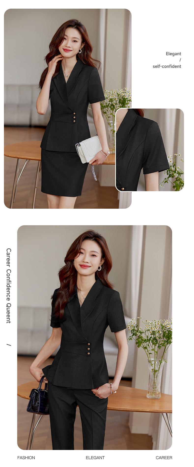 Blue one-piece suit, Black one-piece suit, Khaki one-piece suit, Blue suit + skirt, Black suit + skirt, Khaki ...