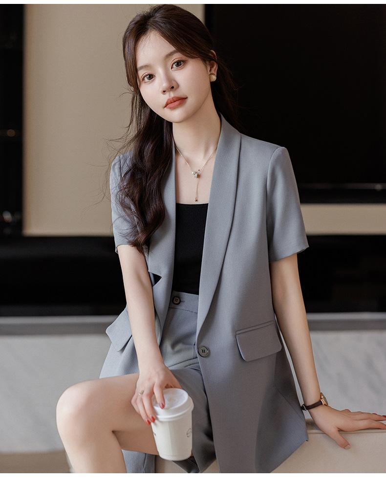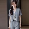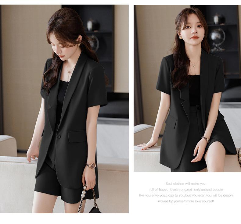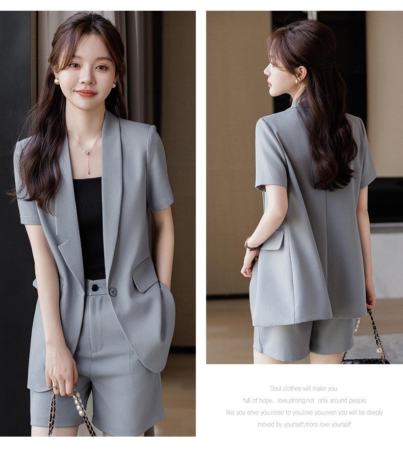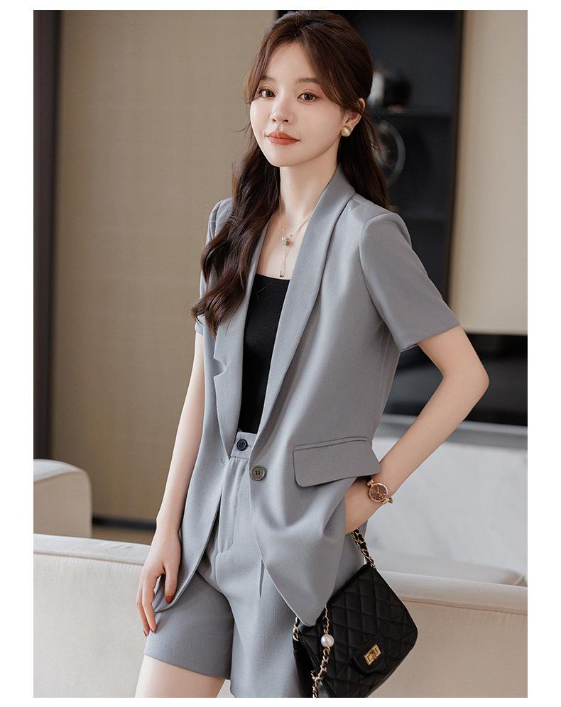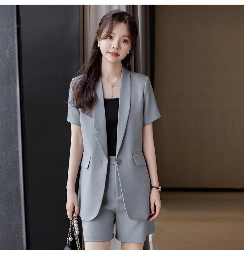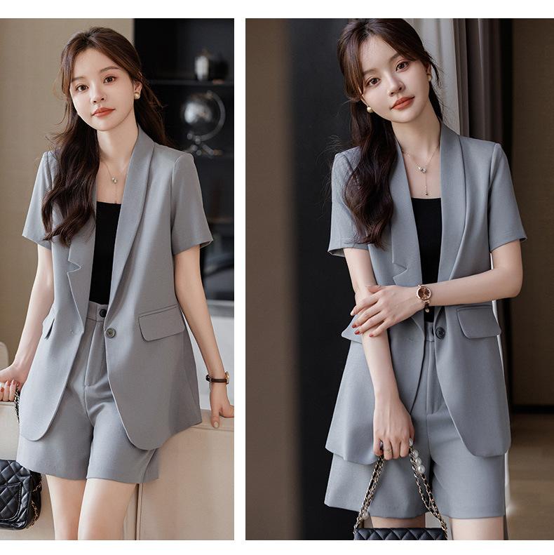 Verano 2024 nuevo gris de manga corta profesional casual pequeño traje chaqueta pantalones cortos de mujer traje de dos piezas moda moda