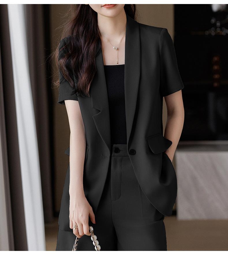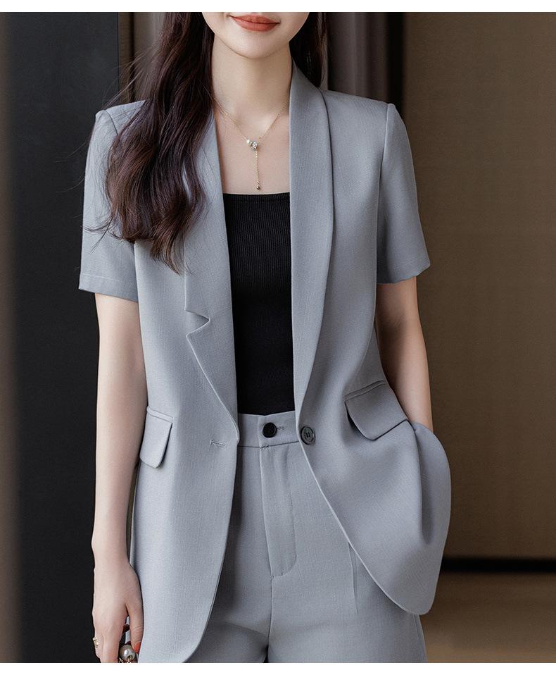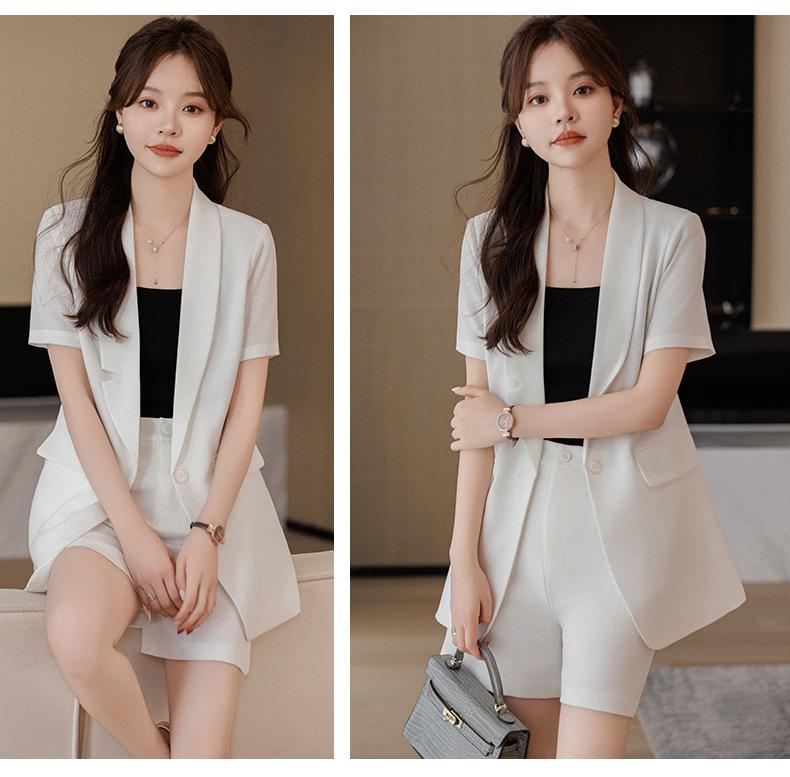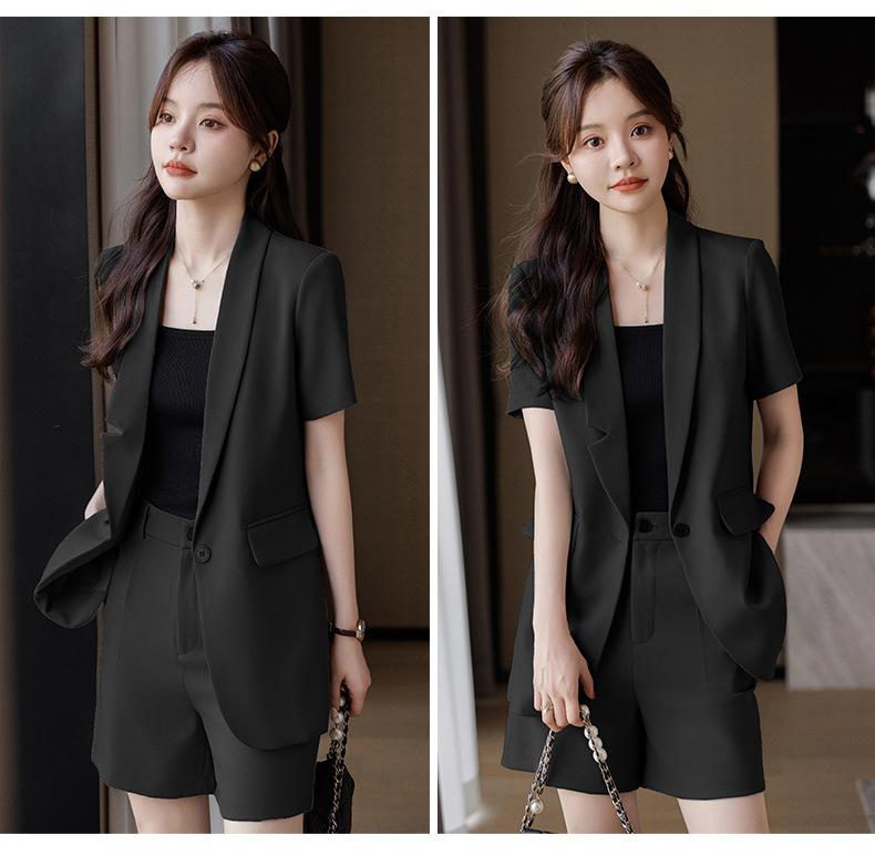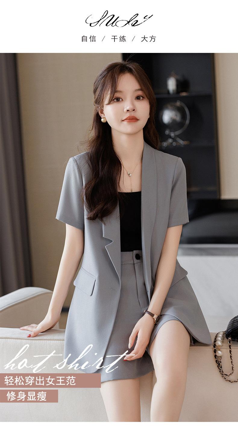 Verano 2024 nuevo gris de manga corta profesional casual pequeño traje chaqueta pantalones cortos de mujer traje de dos piezas moda moda