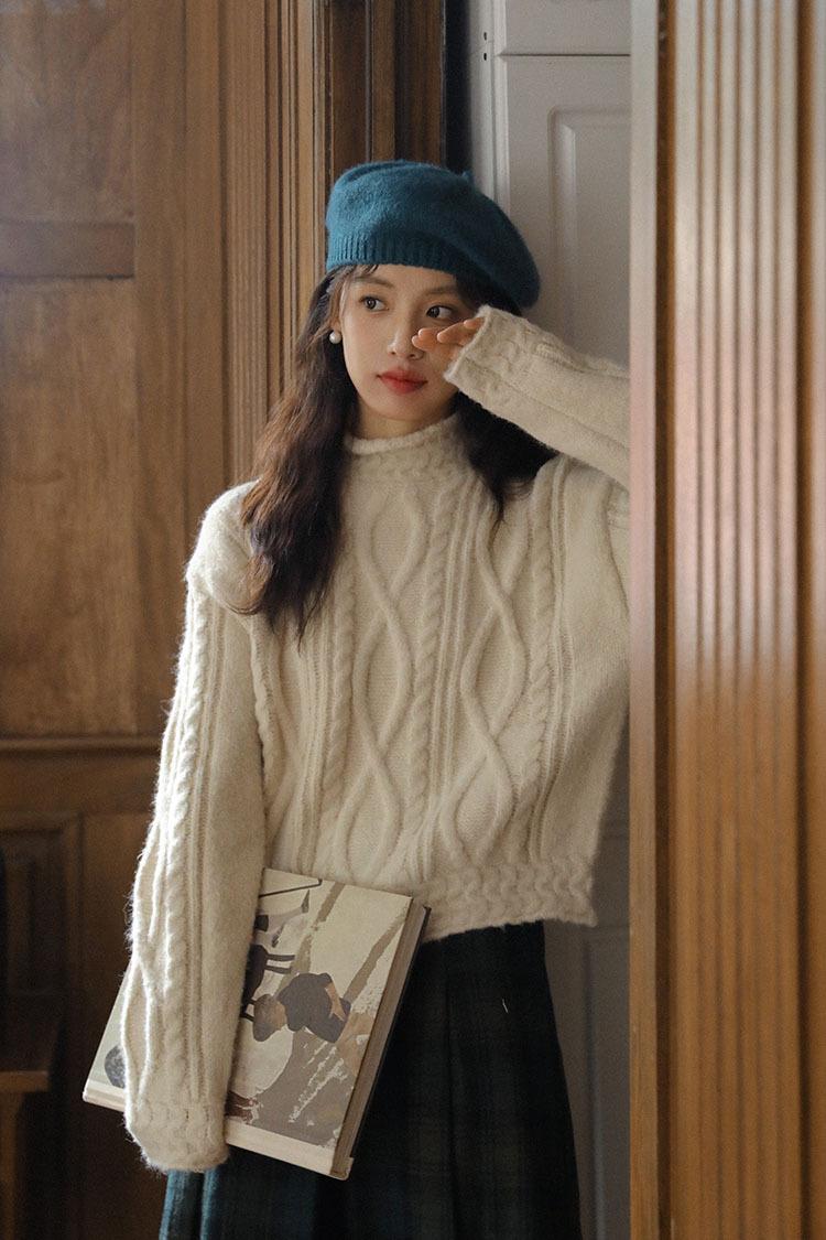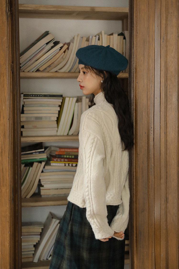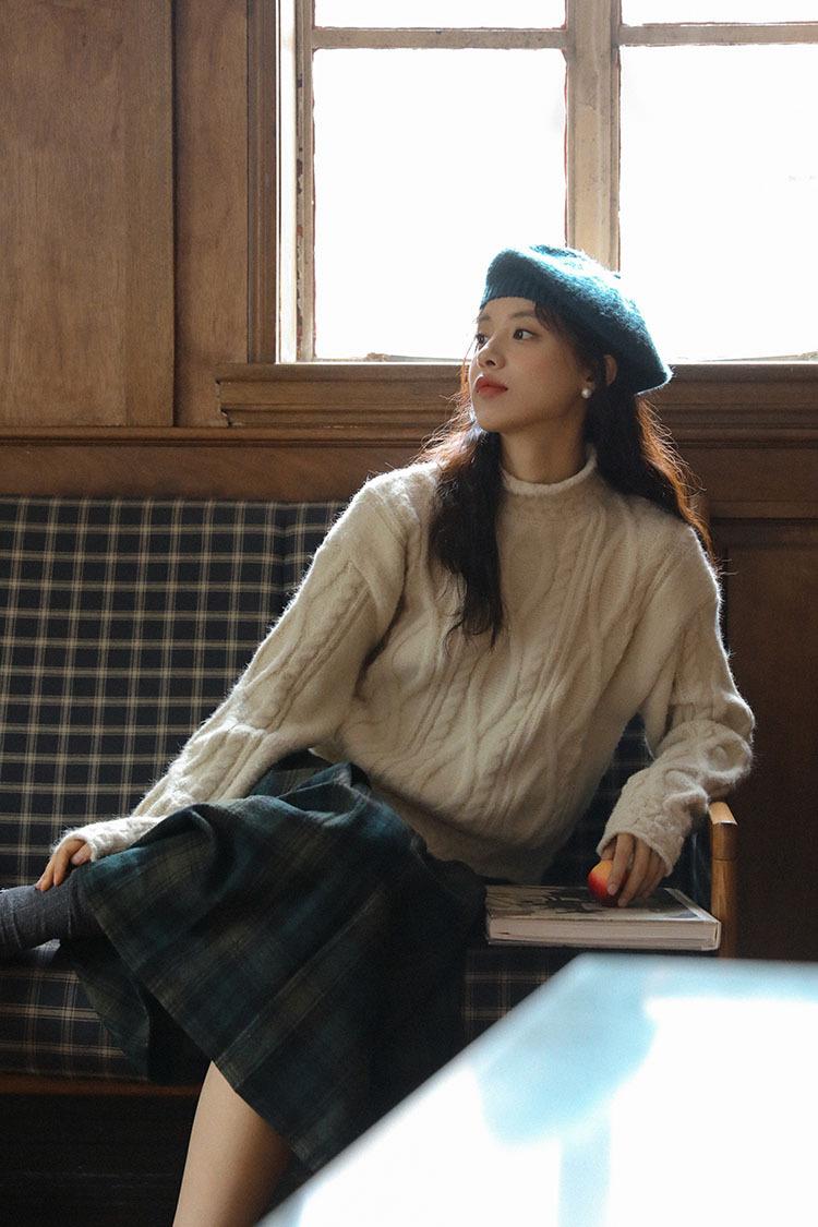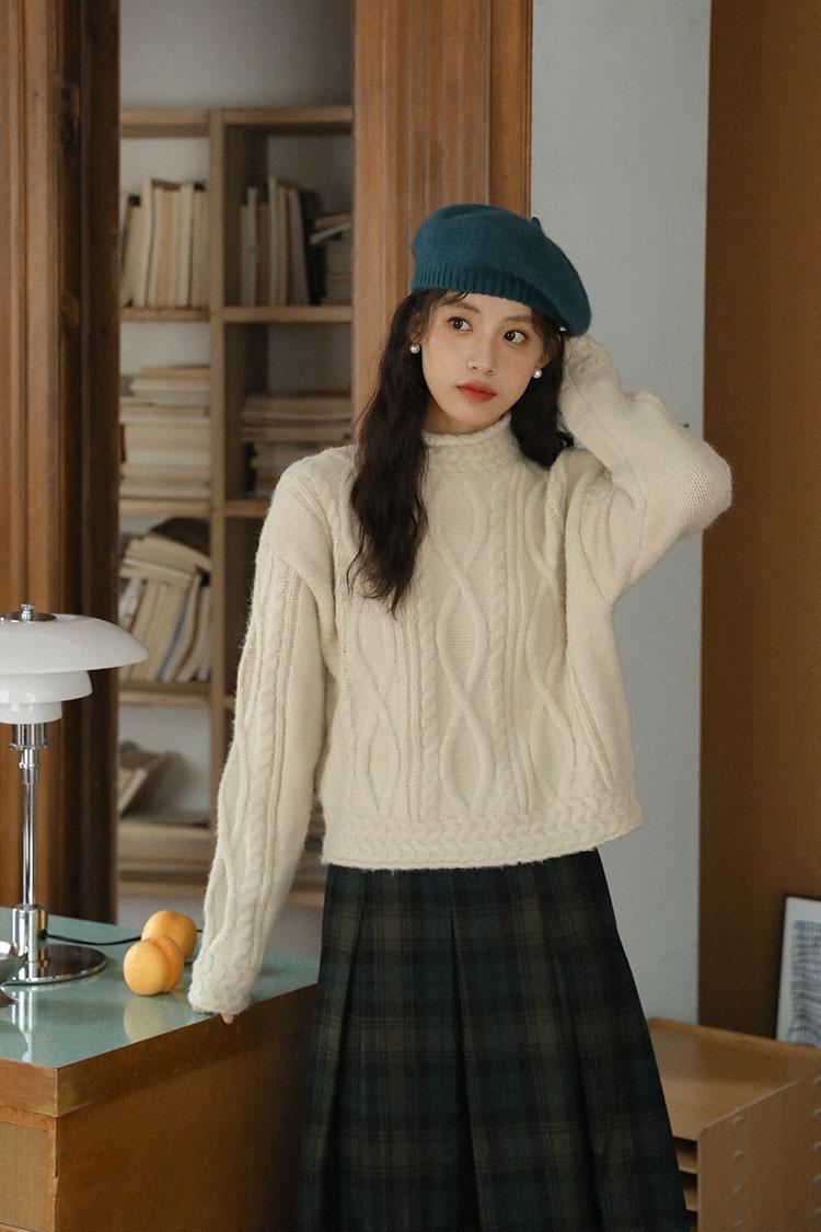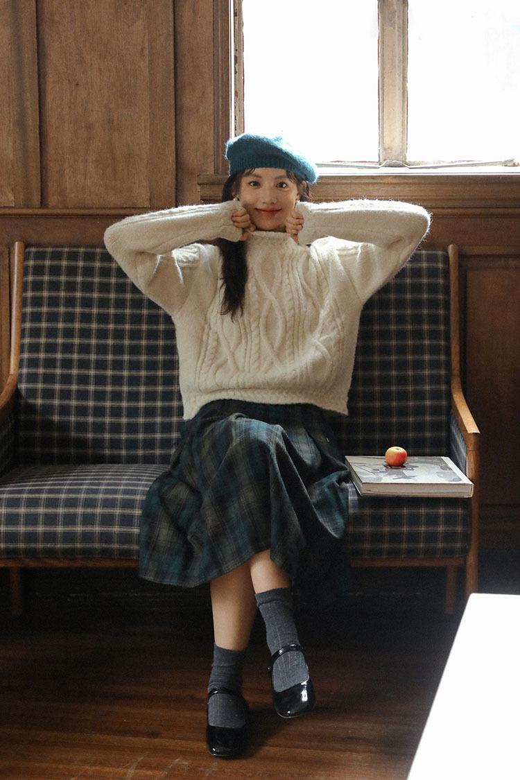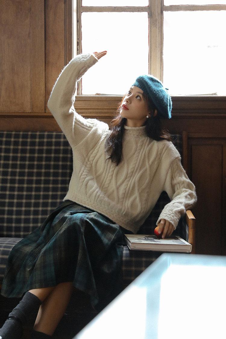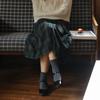 Falda plisada elegante de longitud media para mujer, estilo retro artístico francés, cintura alta, adelgazante, verde, a cuadros, novedad de invierno de 2024.