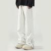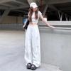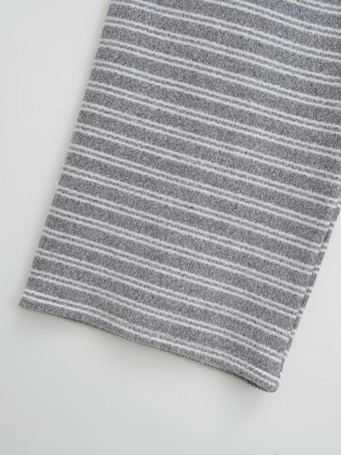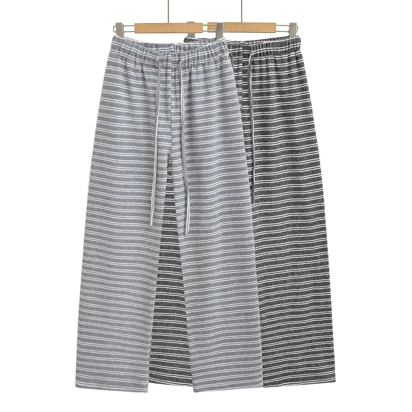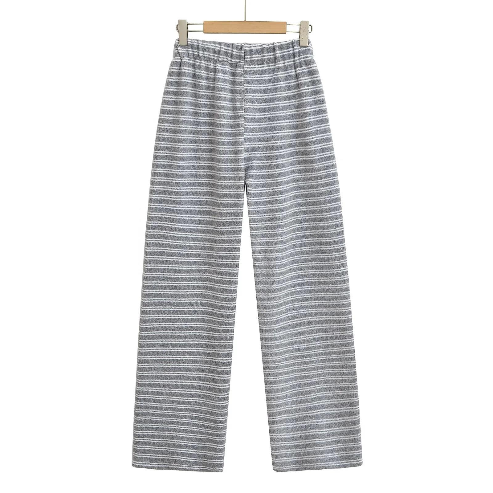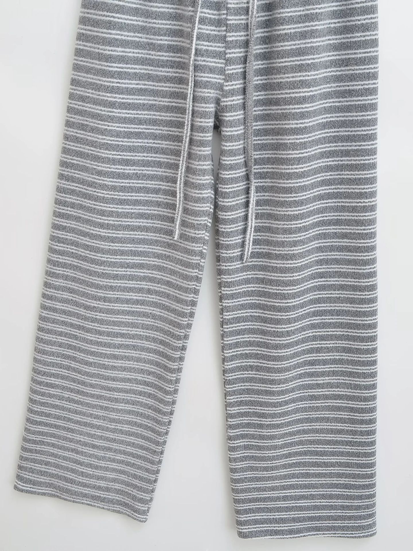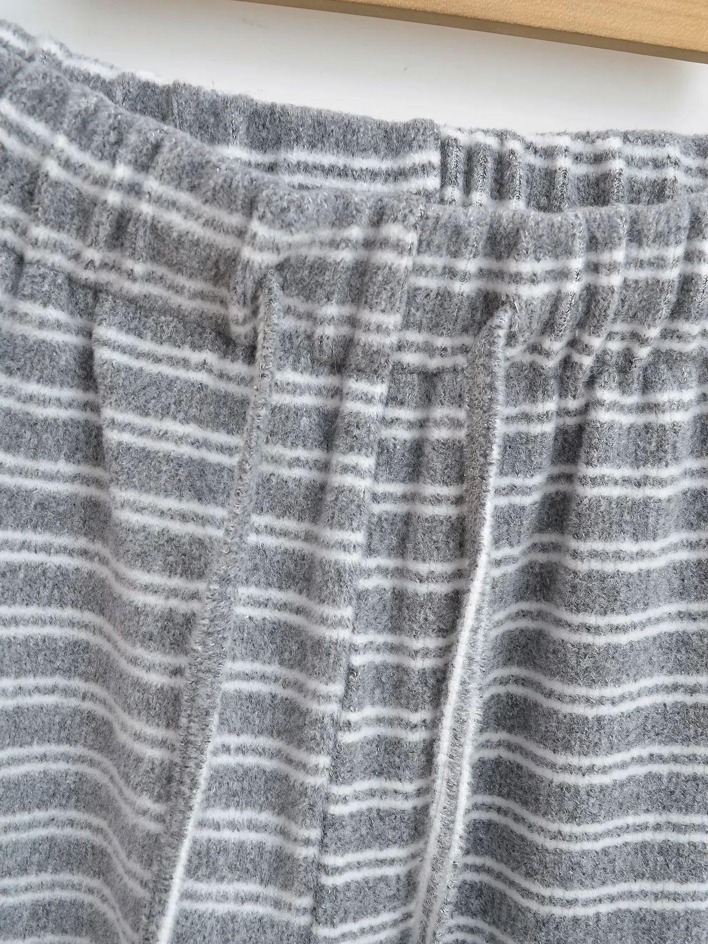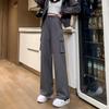 Pantalones casuales de pierna ancha a rayas de estilo retro europeo y americano para mujer 202 Otoño e Invierno Elástico con cordón Cintura alta Rectos Pantalones largos