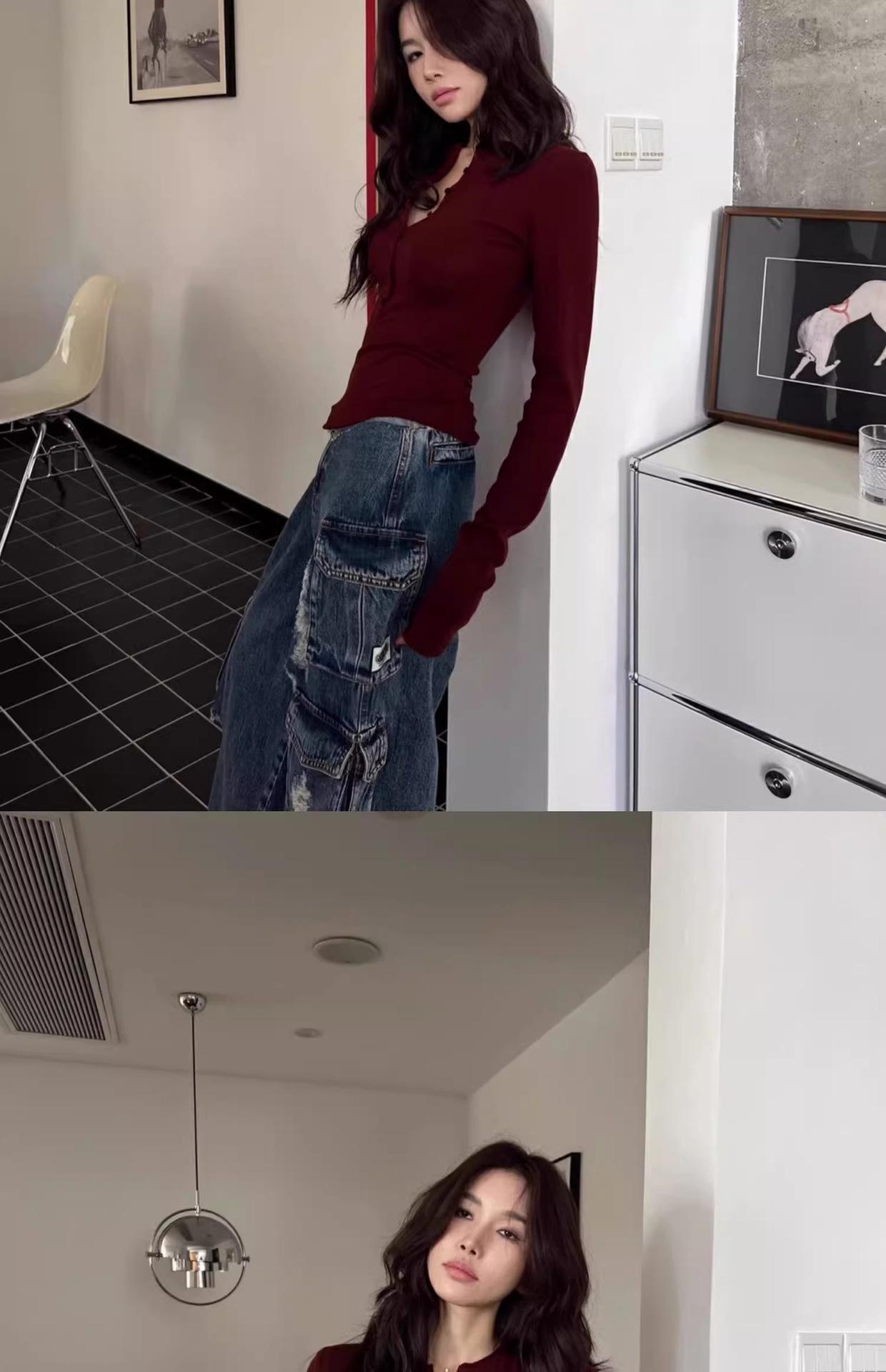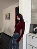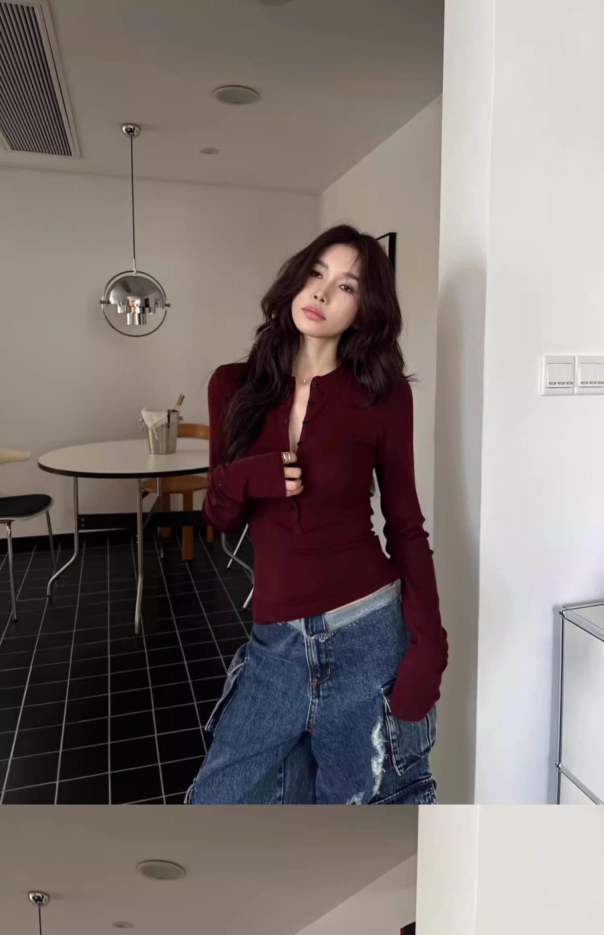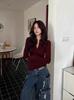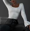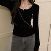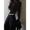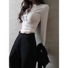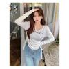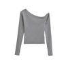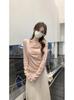 Camiseta de manga larga con hombros descubiertos estilo europeo-americano para mujer, estilo sweet spice girl, para otoño e invierno, con base interior y diseño de cintura ajustada.