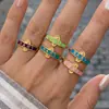 Nuevo Anillo Abierto Ajustable con Letra de Zircón Geométrico Estilo Europeo y Americano, Cobre Chapado, para Mujer con Diseño de Esmalte Colorido