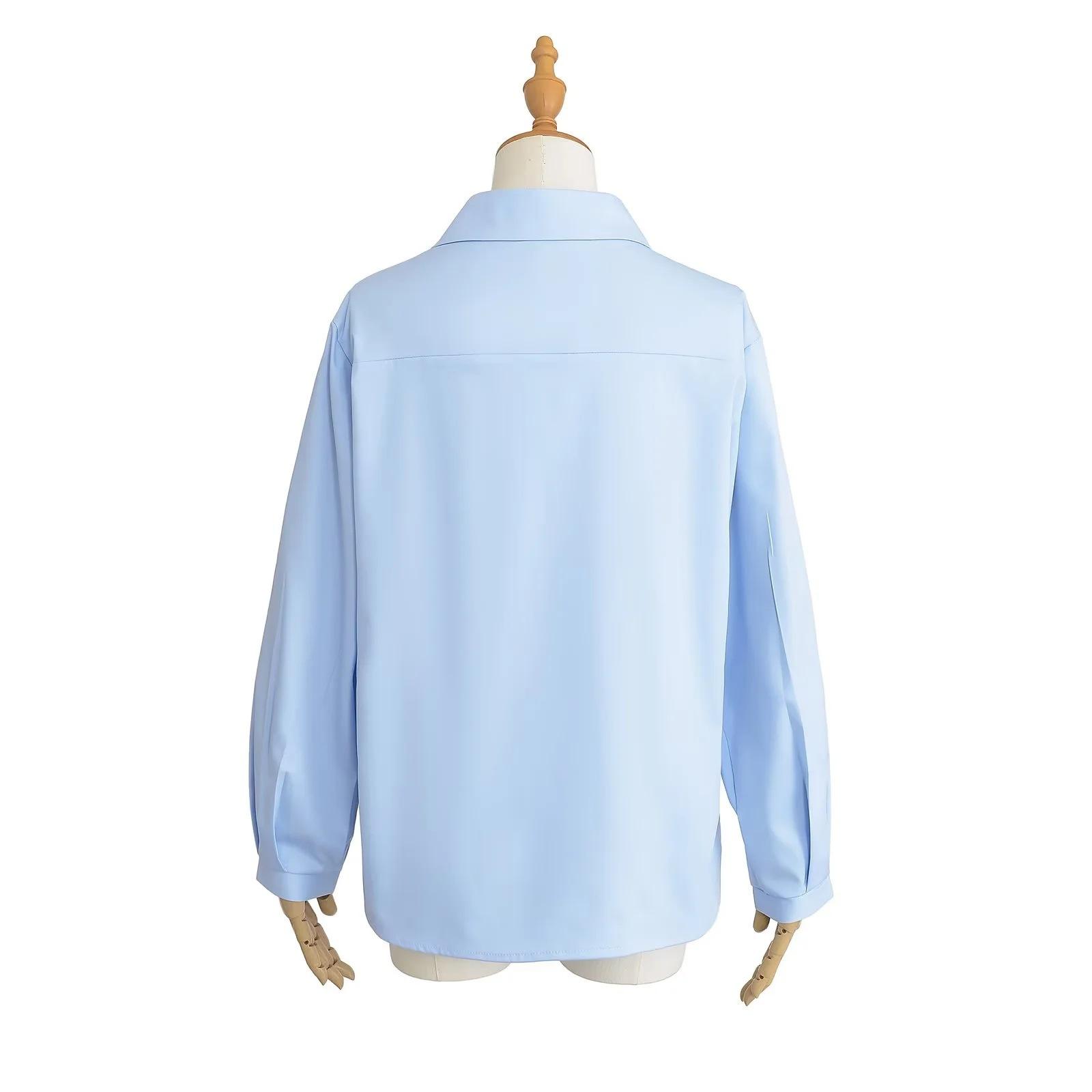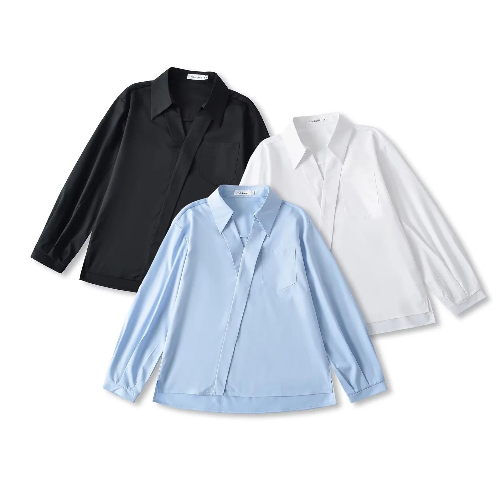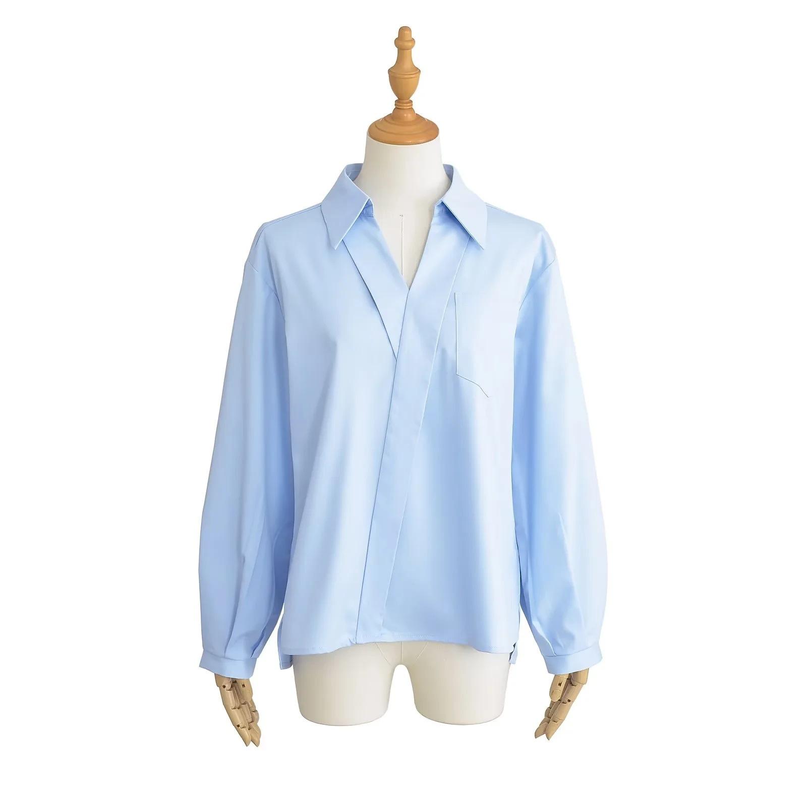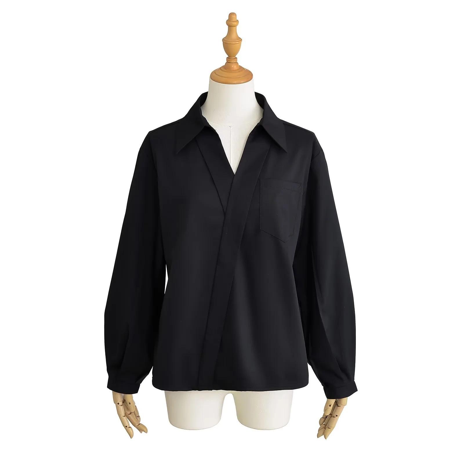 Camisa de manga larga con solapa de otoño para mujer, top informal con cuello en V cruzado y bolsillo en el pecho, camisa holgada