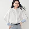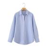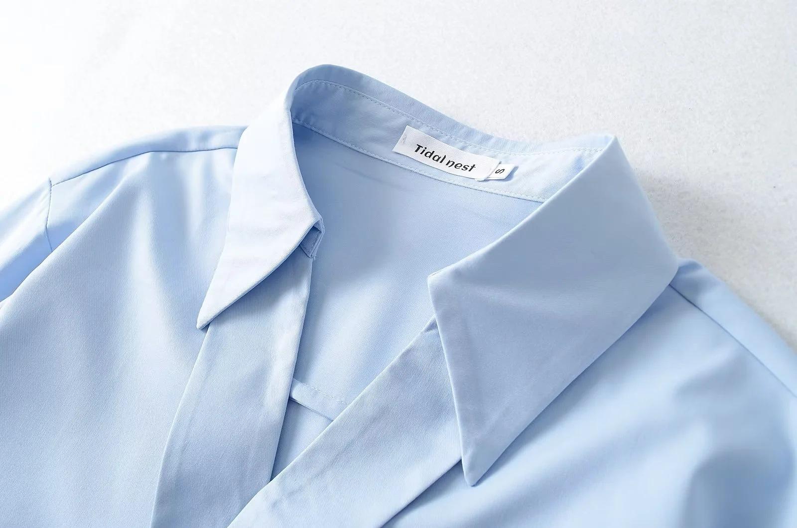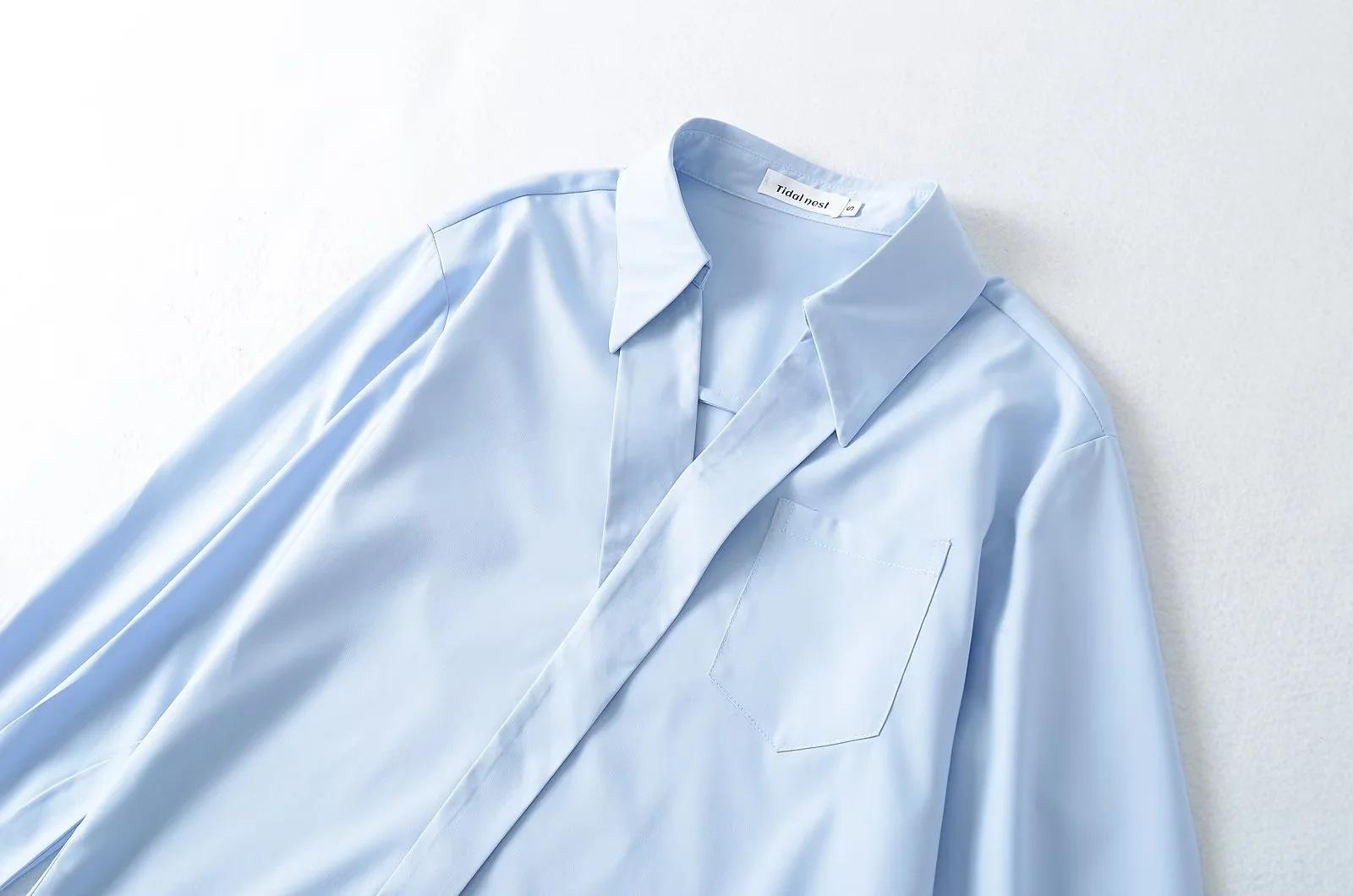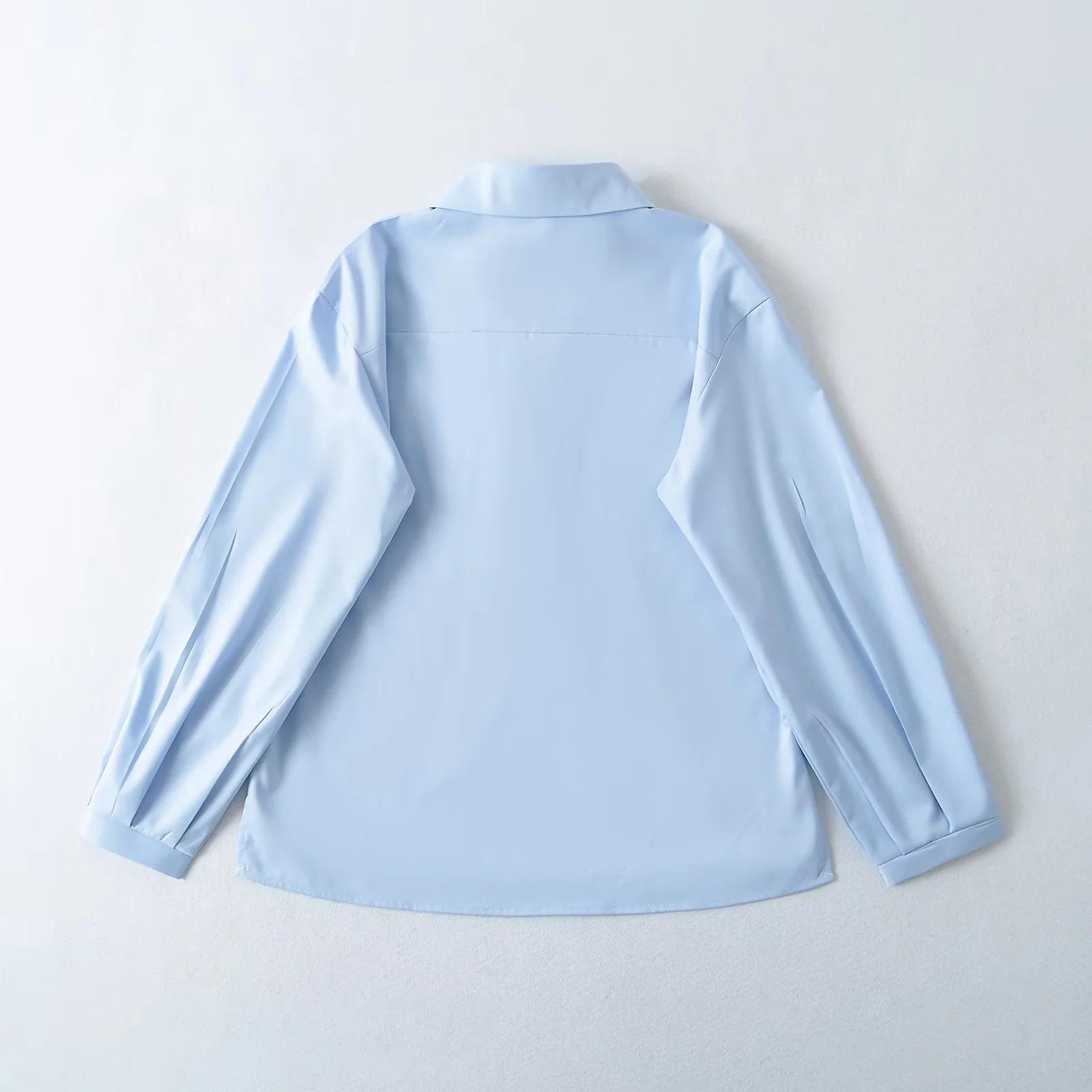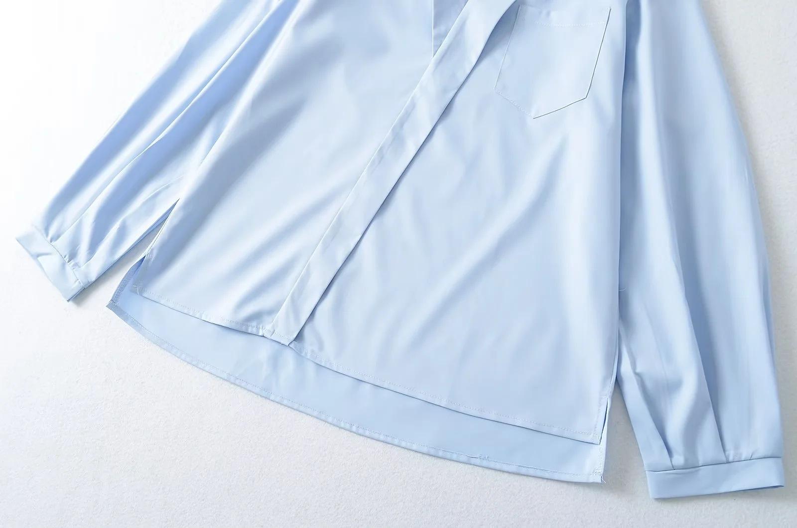 Camisa de manga larga con solapa de otoño para mujer, top informal con cuello en V cruzado y bolsillo en el pecho, camisa holgada
