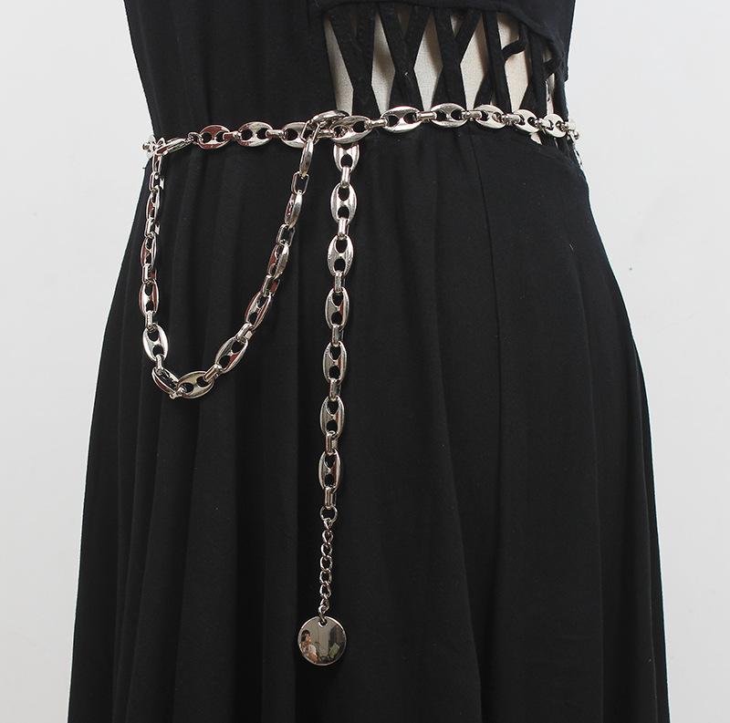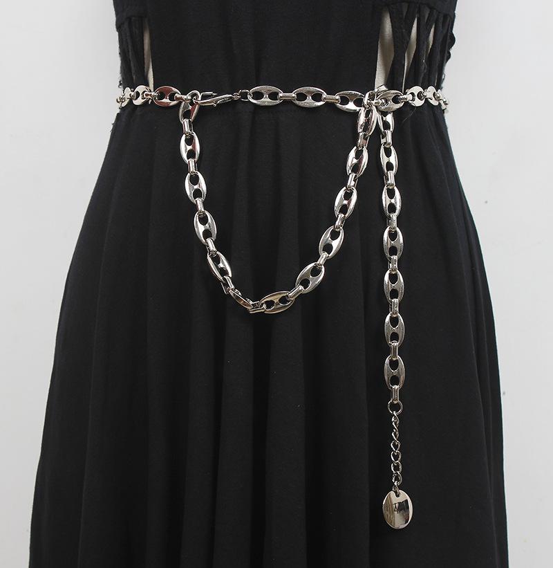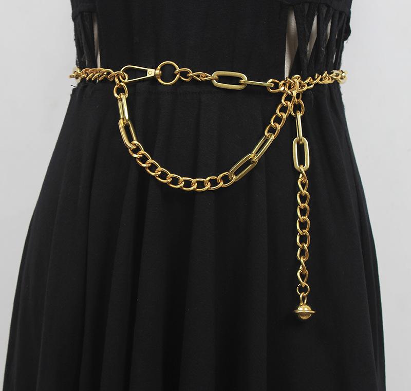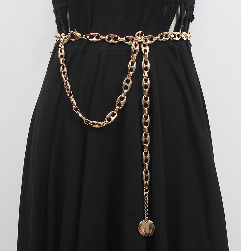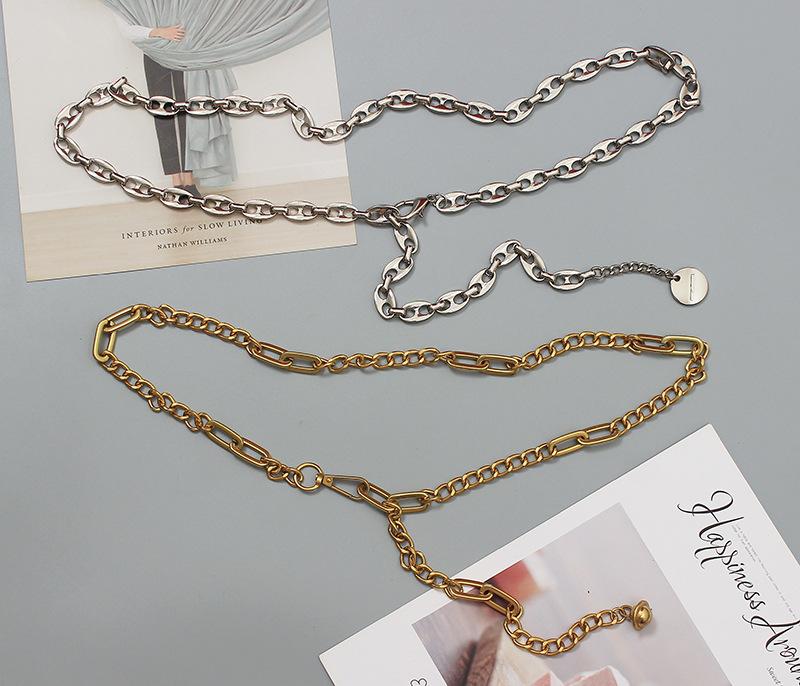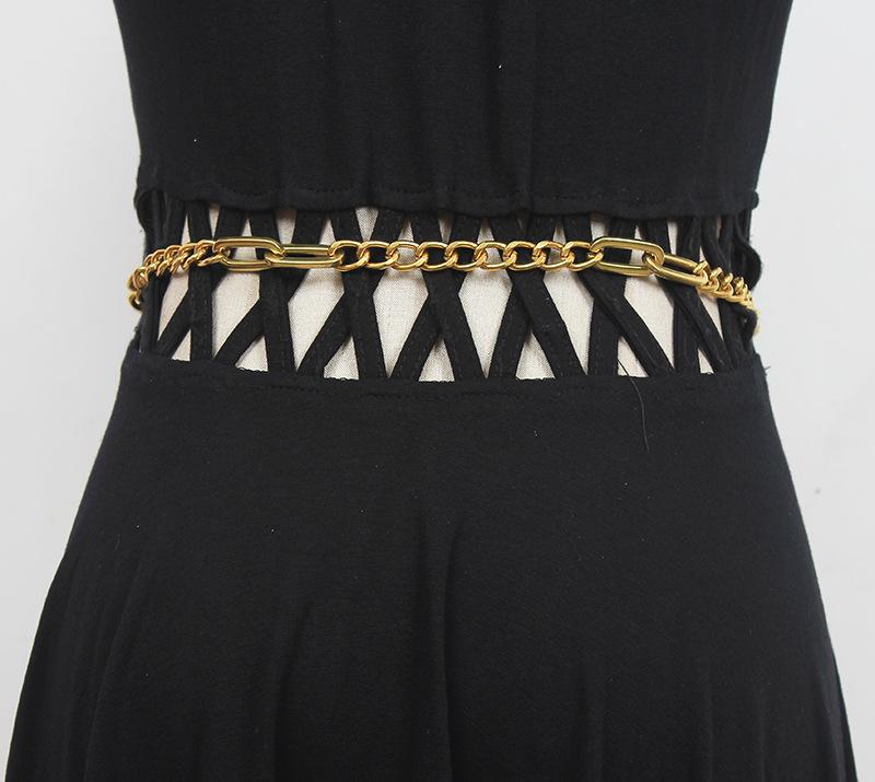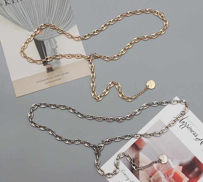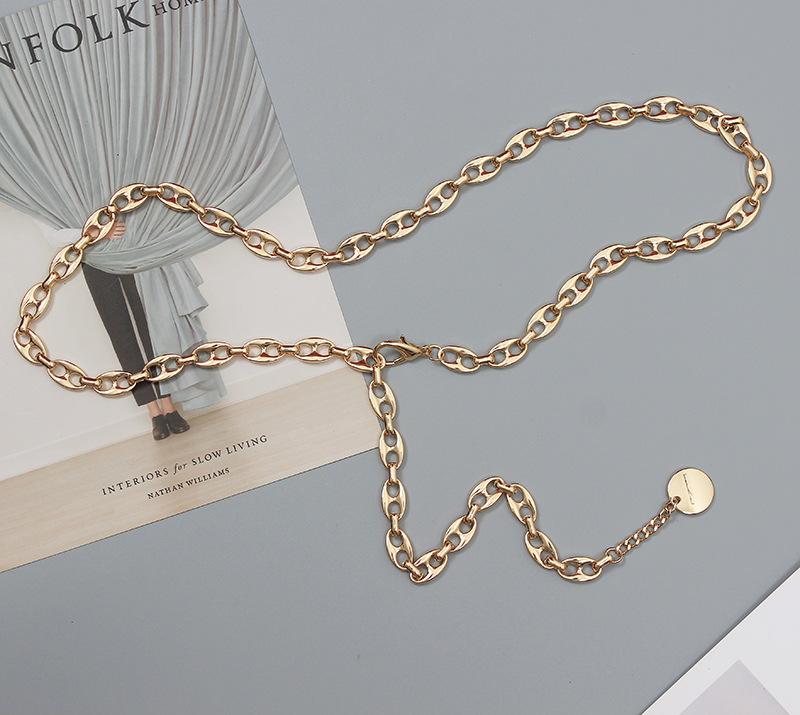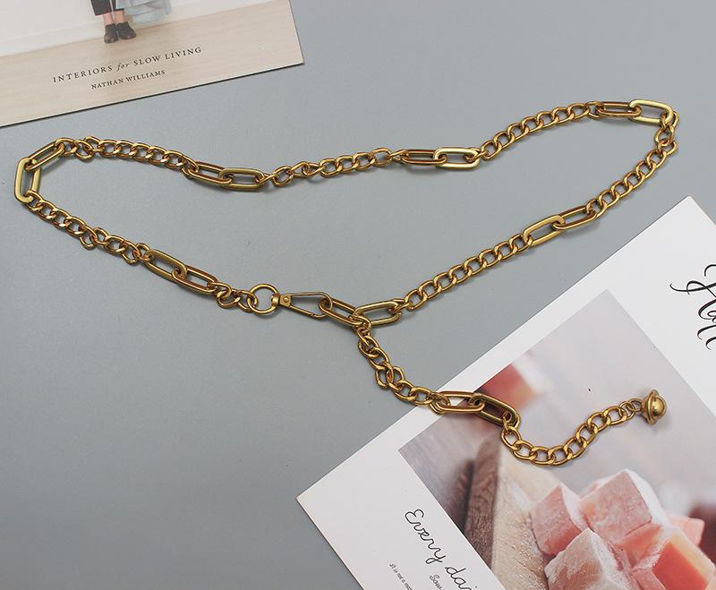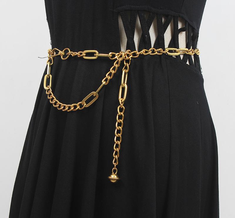 Cadena de cintura para mujer, falda decorativa, jeans, estilo ins, dorado, hebilla de gancho combinable, cinturón de cadena de metal de moda europea y americana.