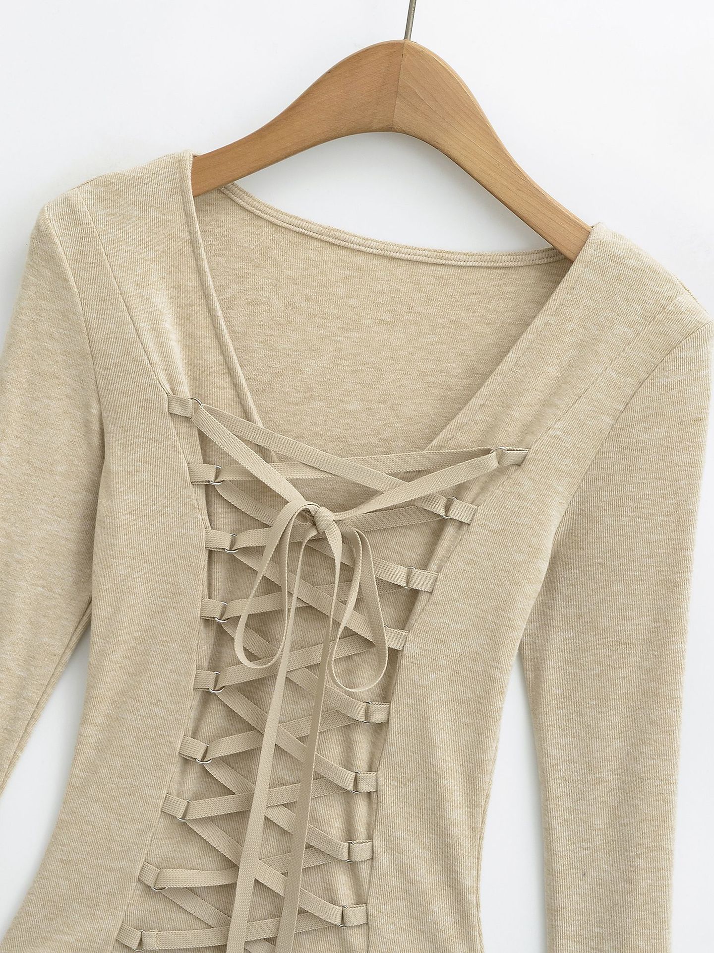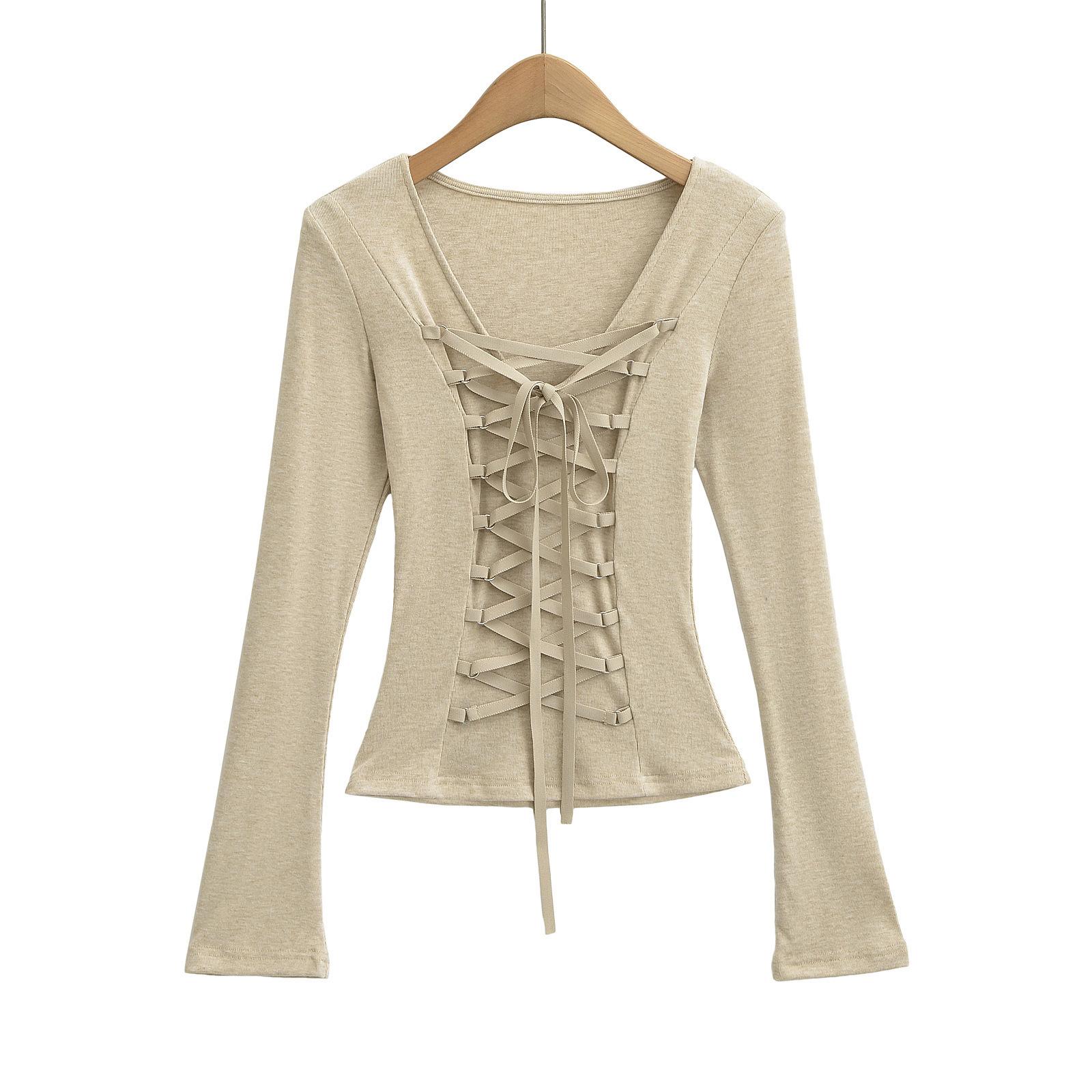 SY9107-25 Camiseta ajustada de estilo europeo y americano, nueva primavera, sexy, con tirantes cruzados y cintura ajustada, Pure Desire