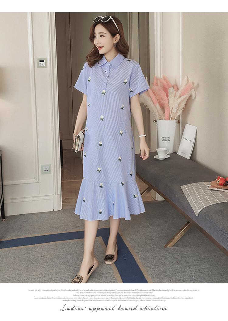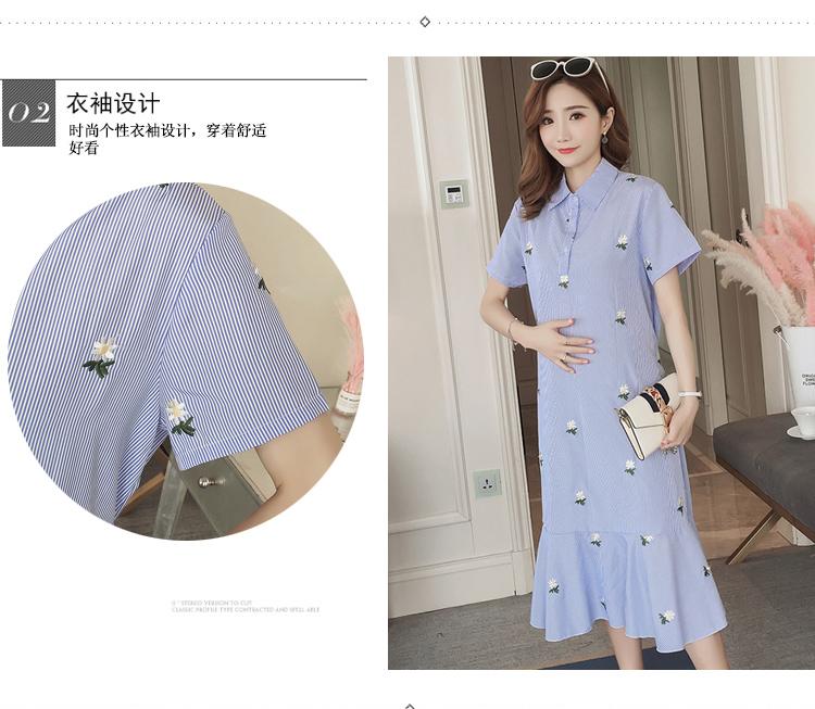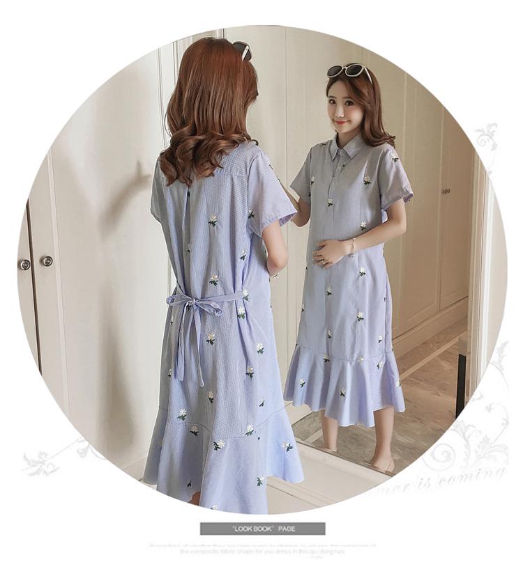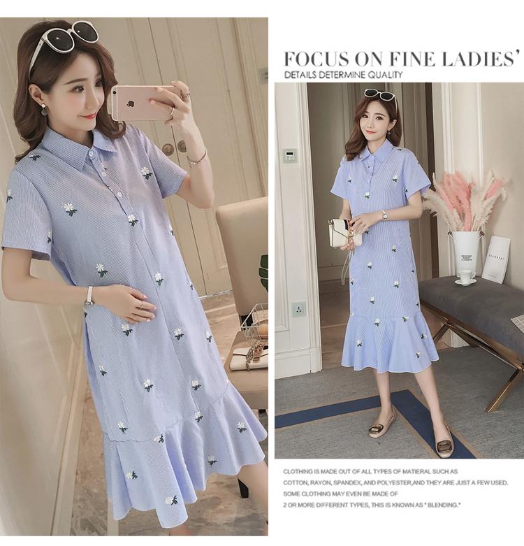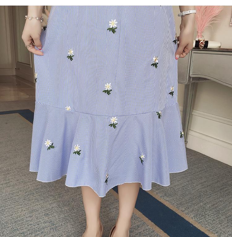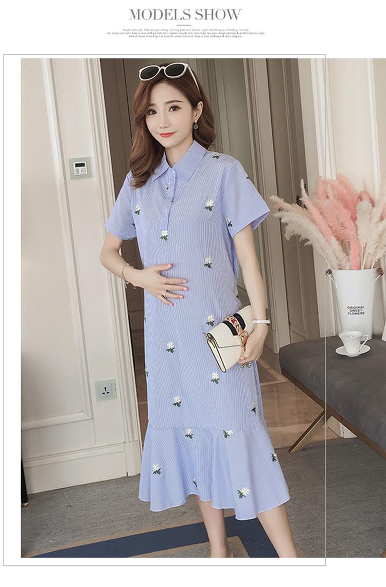 Maternidad 2022 Verano Nuevo Moda Coreana Falda Bordada de Cola de Pescado Largo Medio Vestido para Mujeres Embarazadas