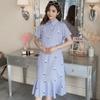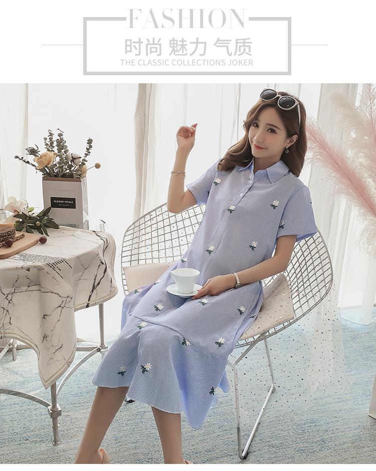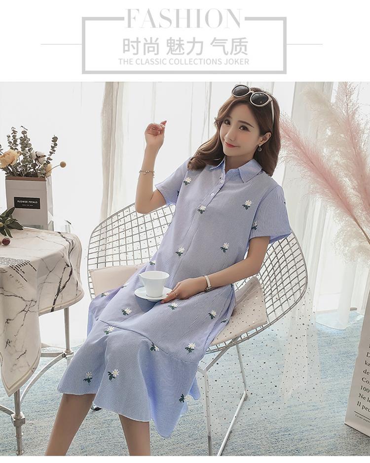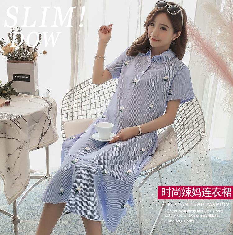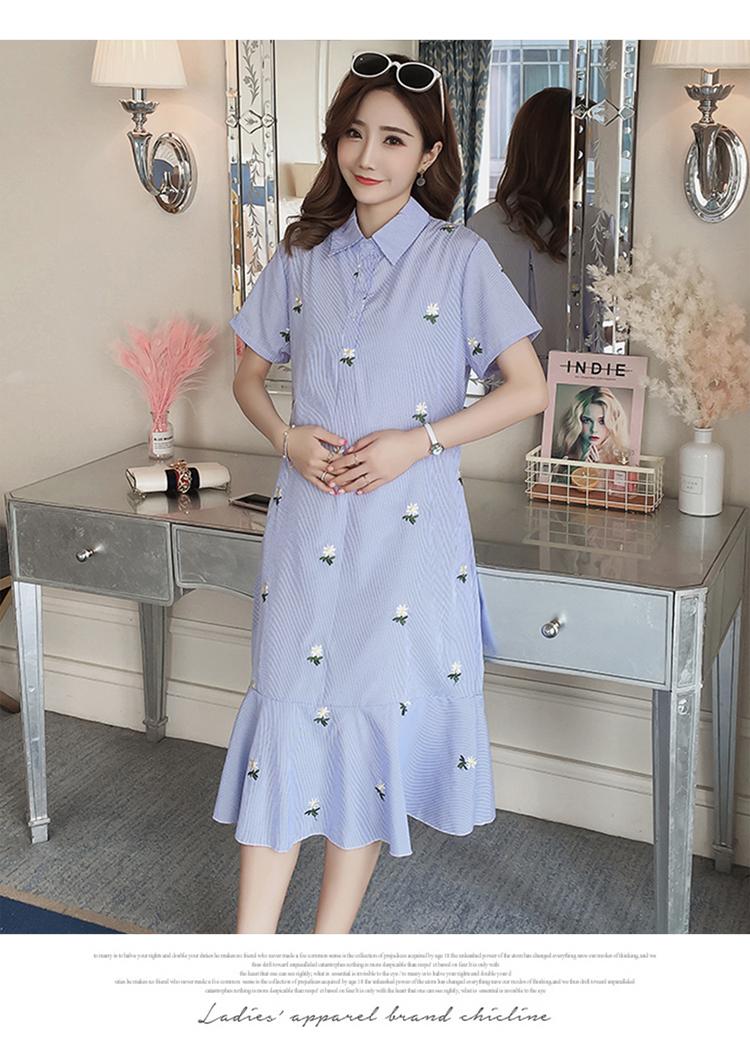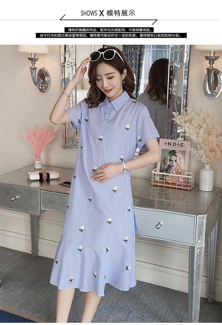 Maternidad 2022 Verano Nuevo Moda Coreana Falda Bordada de Cola de Pescado Largo Medio Vestido para Mujeres Embarazadas